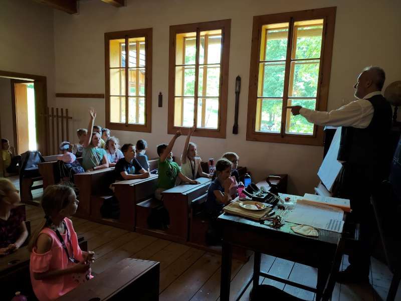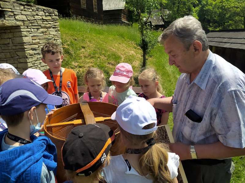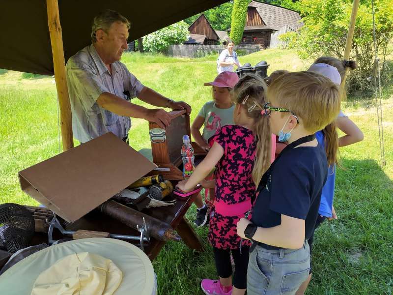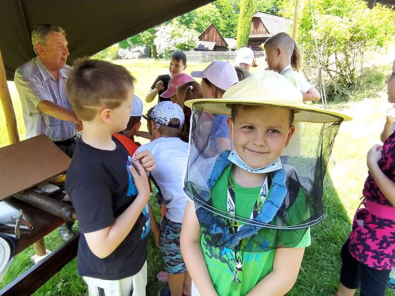 Ve valašské dědině na nás čekal zkušený včelař, který nám vyprávěl o historii včelařství a dětem ukázal všelijaké pomůcky, které při včelařině používali naši předci. Děti na vlastní oči viděly i včelí královnu a jak se rodí včely. Program pokračoval ve staré škole, kde nás přivítal milý pan učitel a vyprávěl dětem o životě včel. Děti dostaly lupu a mohly prozkoumat samičku i samce včely a také měly možnost nahlédnout pod mikroskop. Další zastávka byla v chaloupce, kde se děti dozvěděly o různých druzích medu a jak se využívá v kuchyni a léčitelství. Tato část programu byla i ochutnávková. Závěrečná část programu se odehrávala v Živém domě, kde si děti vyzkoušely, jak se kdysi vyráběl medový perník v dřevěné formě a také si ozdobily svíčky včelím barveným voskem.