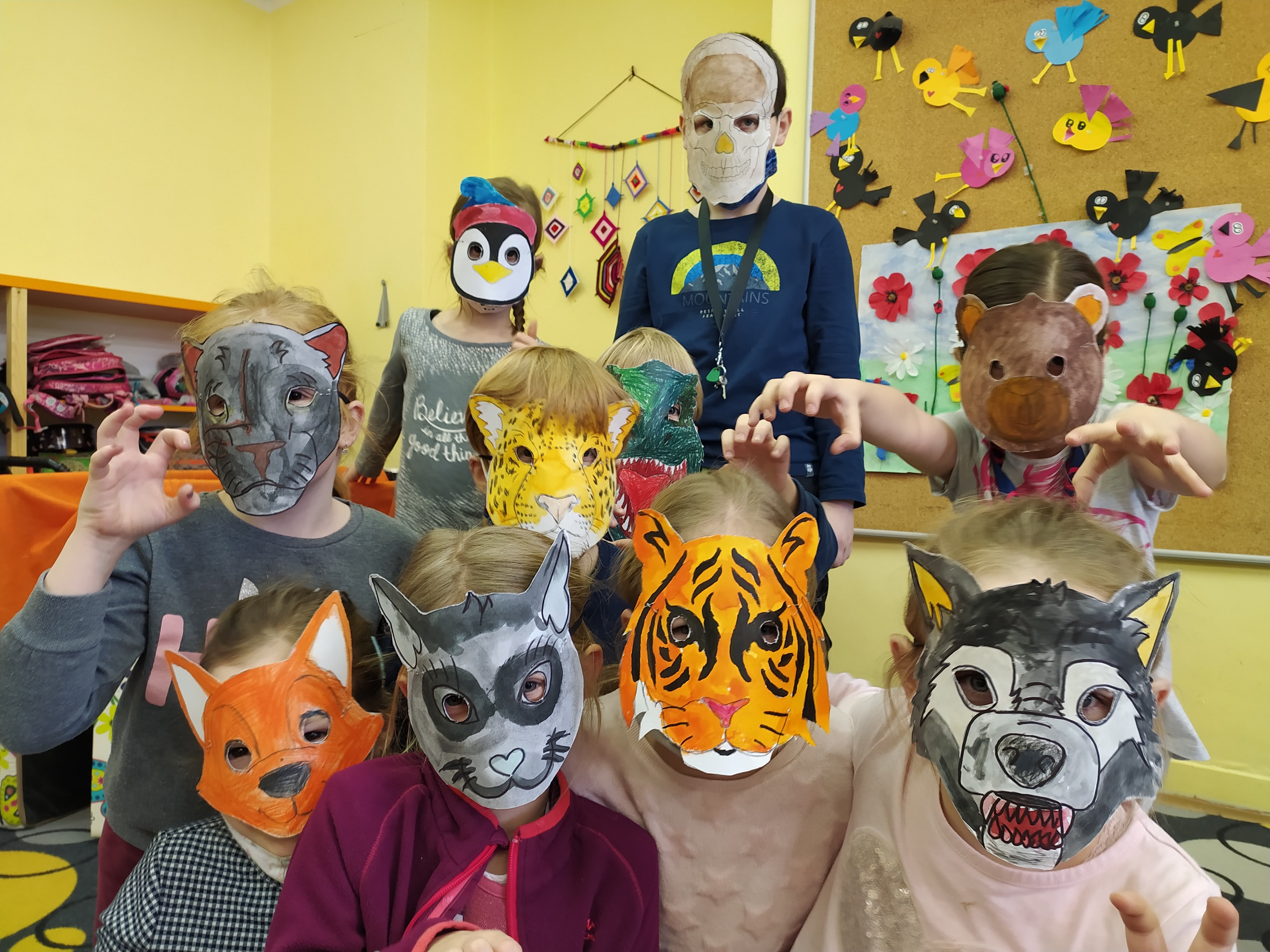 Děti si masky obkreslily přes starodávný kopírák a poté krásně vybarvily. Masky si vybraly podle toho,