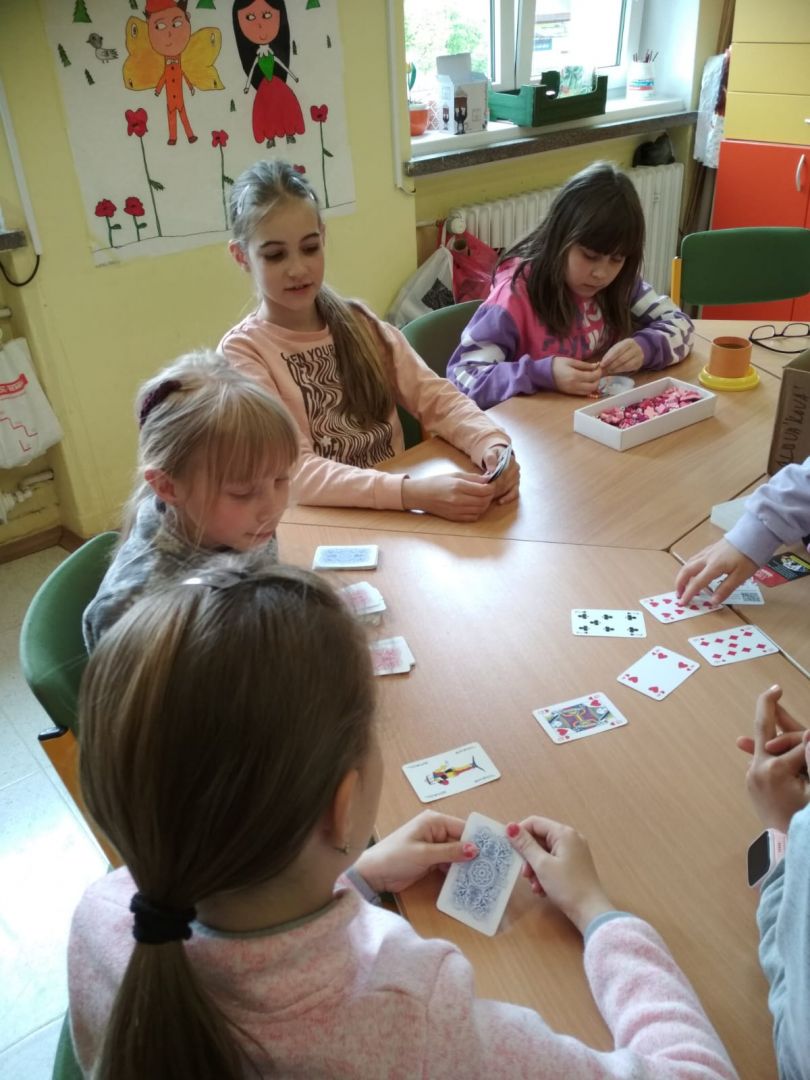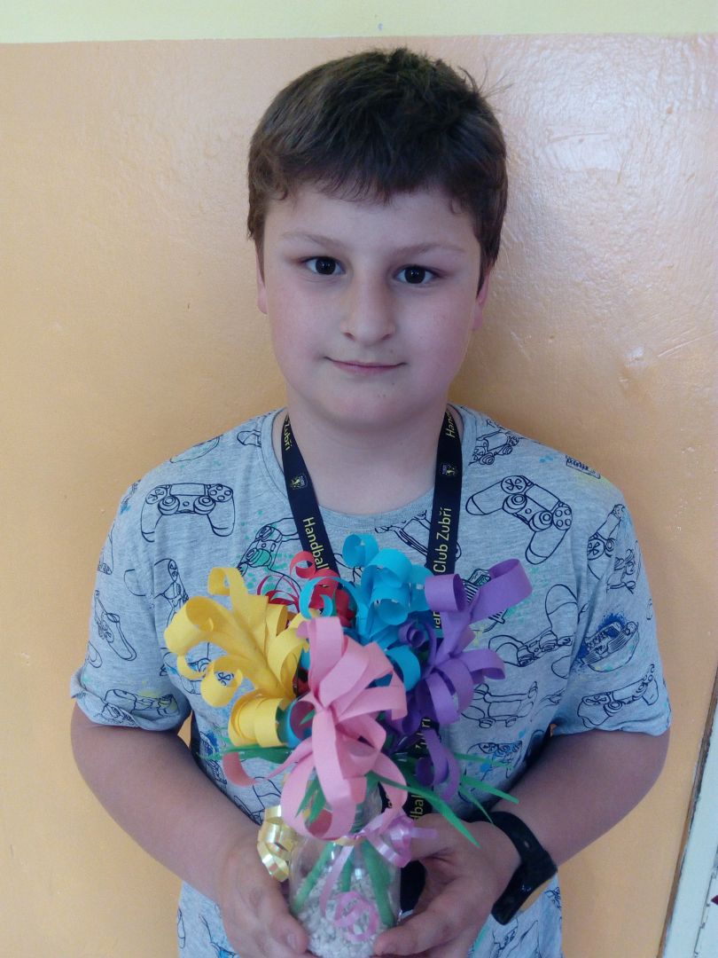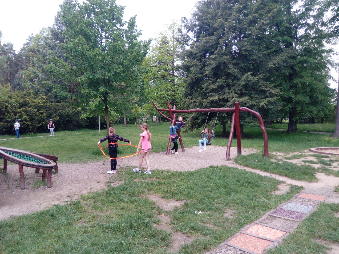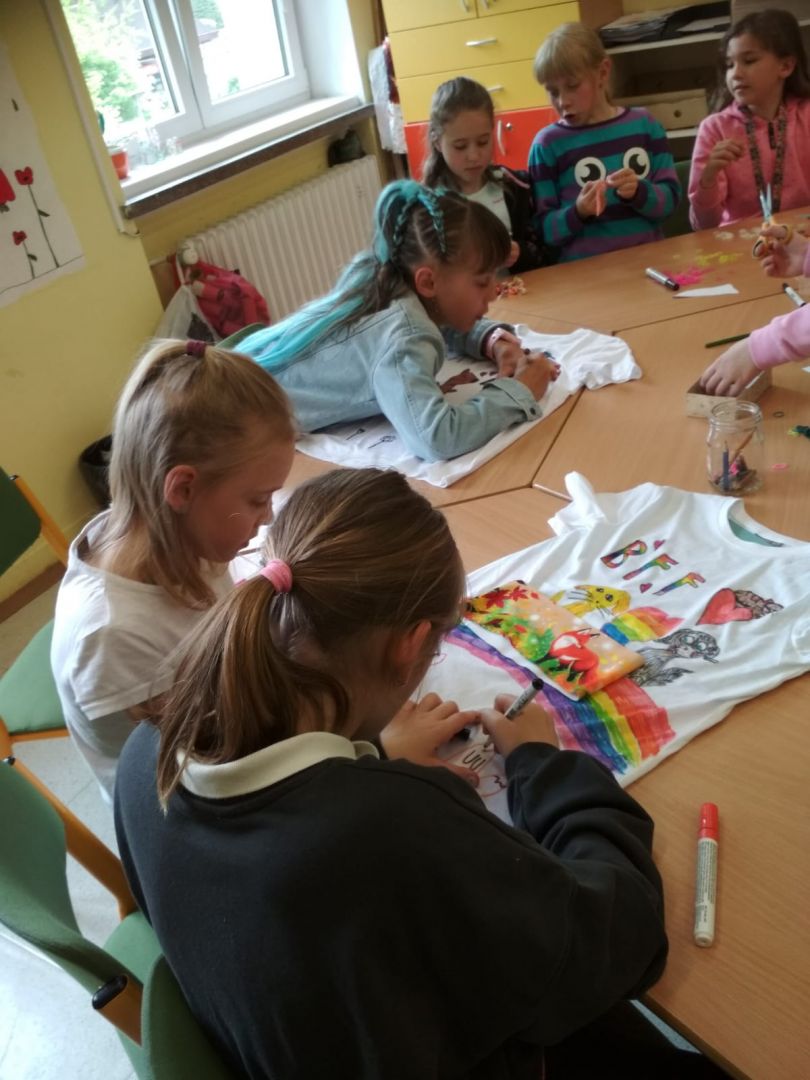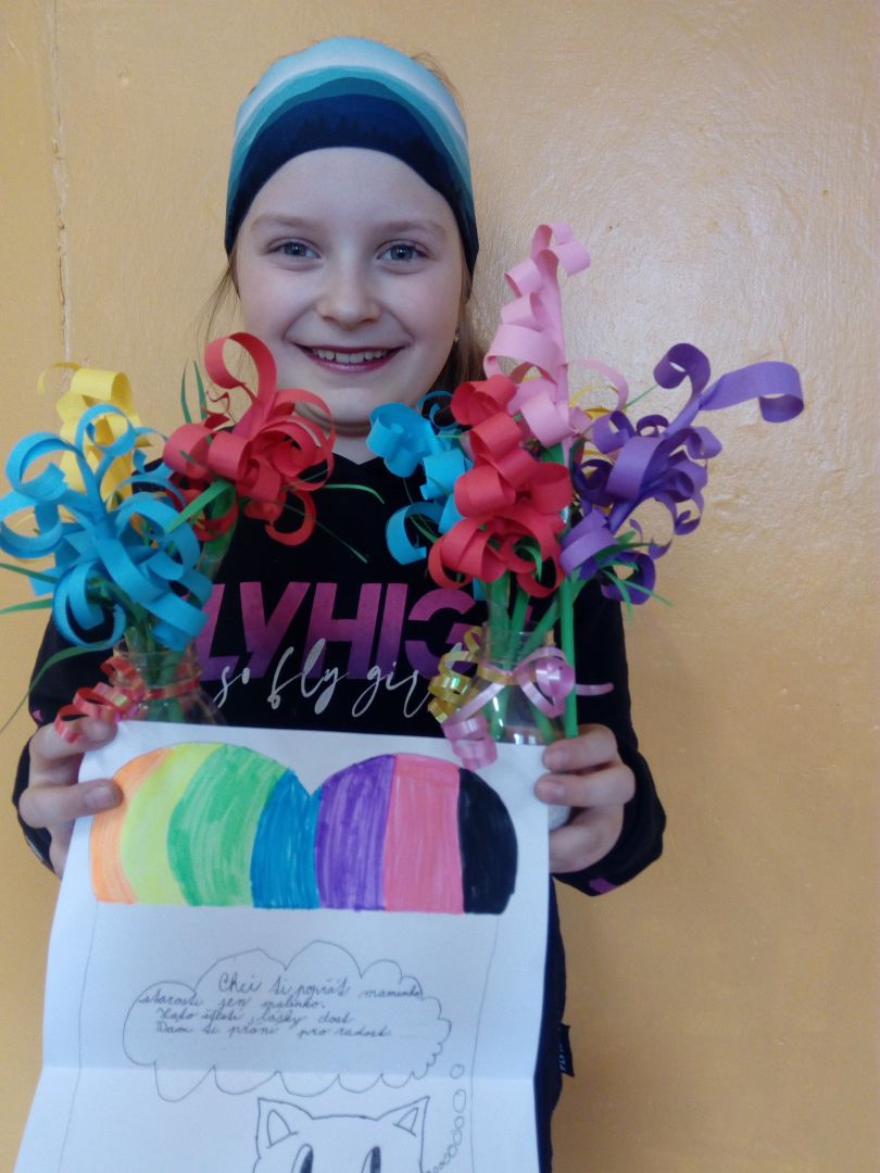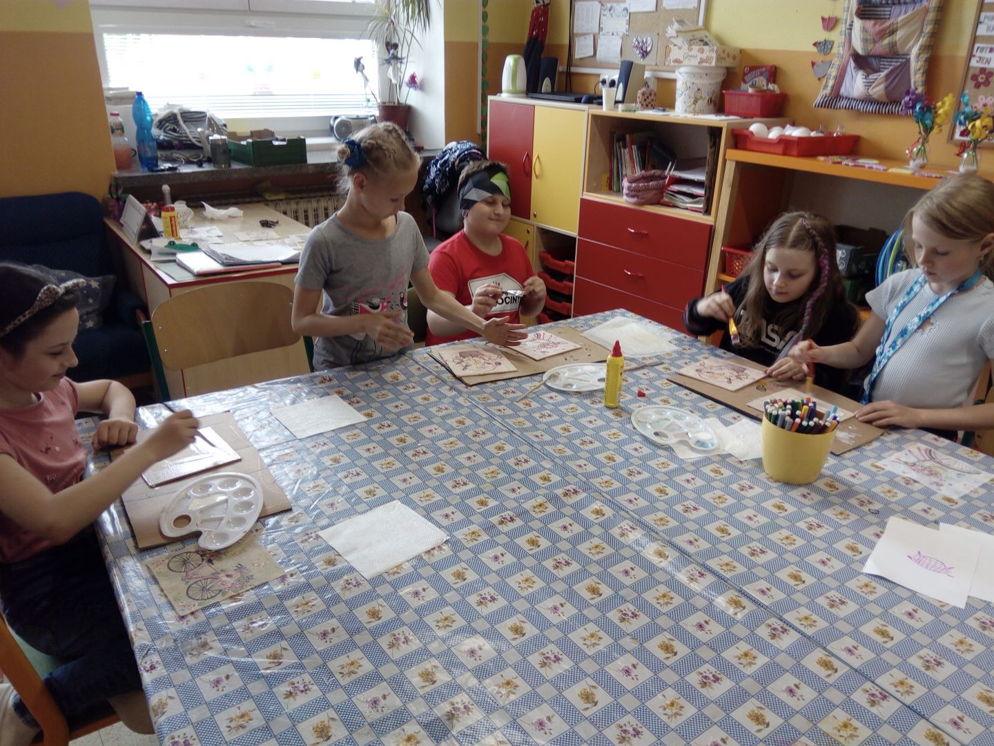 V měsíci květnu všechny děti vyráběly přání a drobné dárky ke Dni matek. Dozvěděly se hodně o bylinkářství. Děti z prvního oddělení vyráběly barevné motýly, děti z druhého oddělení se věnovaly kresbě na trička, na sklo, navlékaly korále a dětem z třetího oddělení se vydařila ubrousková technika na dřevo i vyrábění hry s kelímkem. Za příznivého počasí trávily většinu času všechny děti pohromadě pobytem v parku. Pokud nám počasí nepřálo, zabavily se děti v prostorách družiny např. hraním karet, u stolního fotbalu, tancem, veselým proplétáním zvaným Gordický uzel nebo hrály různé stolní a jiné hry.