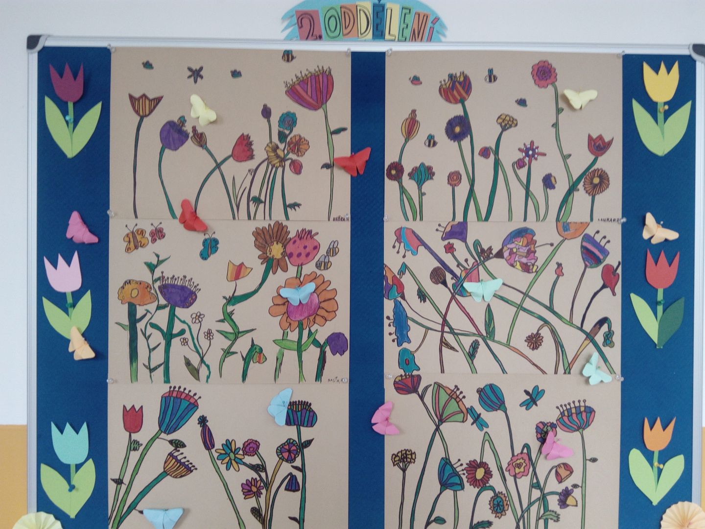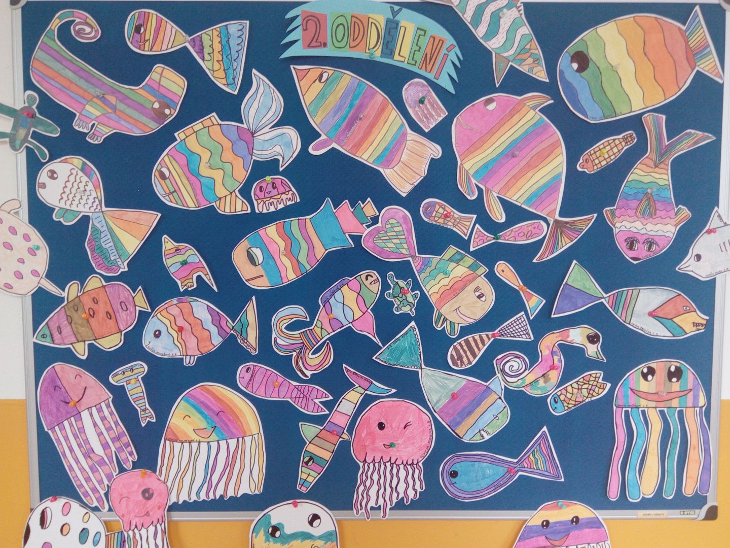 K tvorbě na téma DEN ZEMĚ se přidaly i družiny. Prvňáci vyráběli rozkvetlé stromy, housenky a rybky. Druháci vyrobili pestrobarevný svět v moři a barevné květiny. Třeťáci vytvořili společnou mozaiku zeměkoule z krepového papíru.