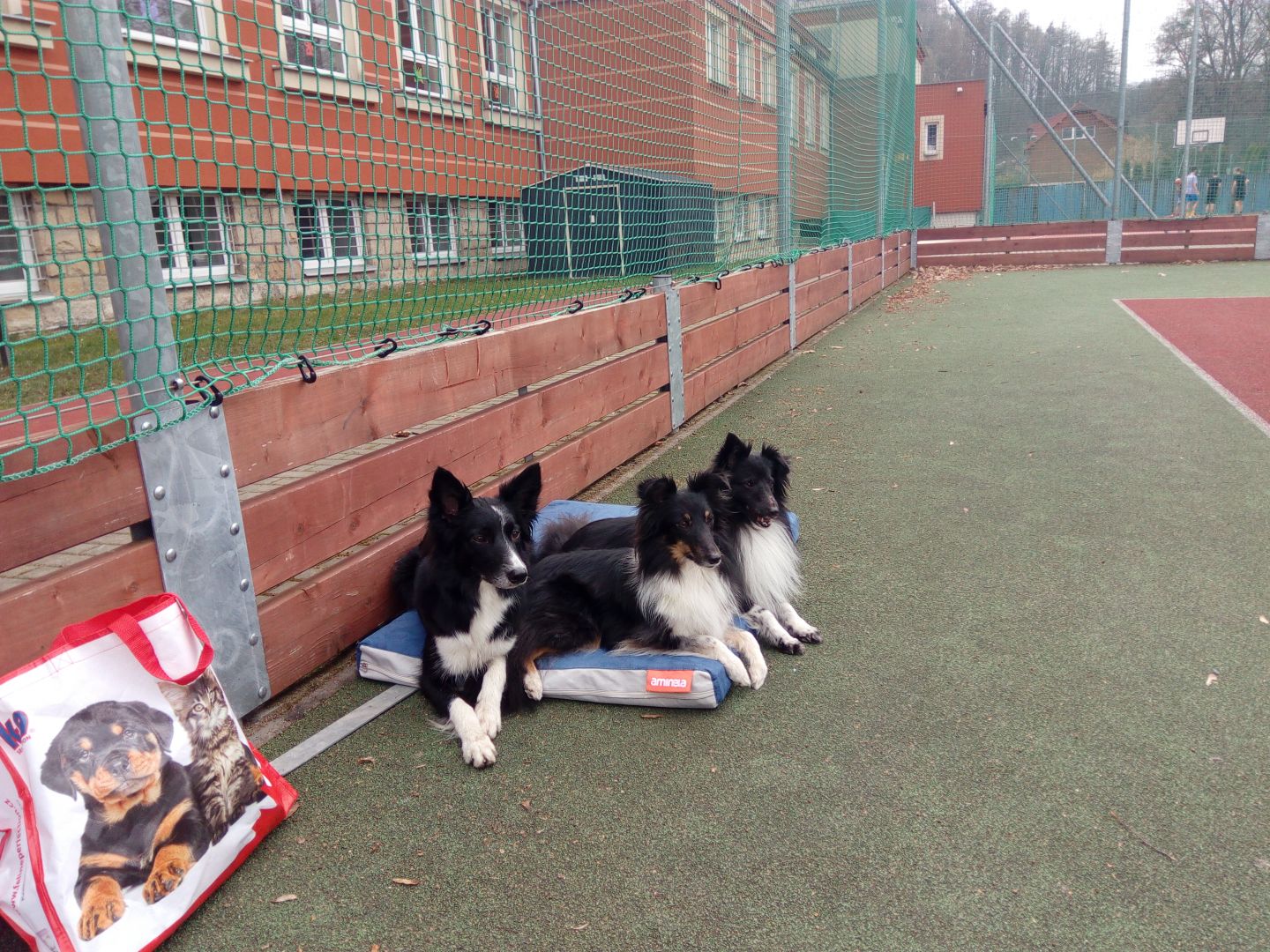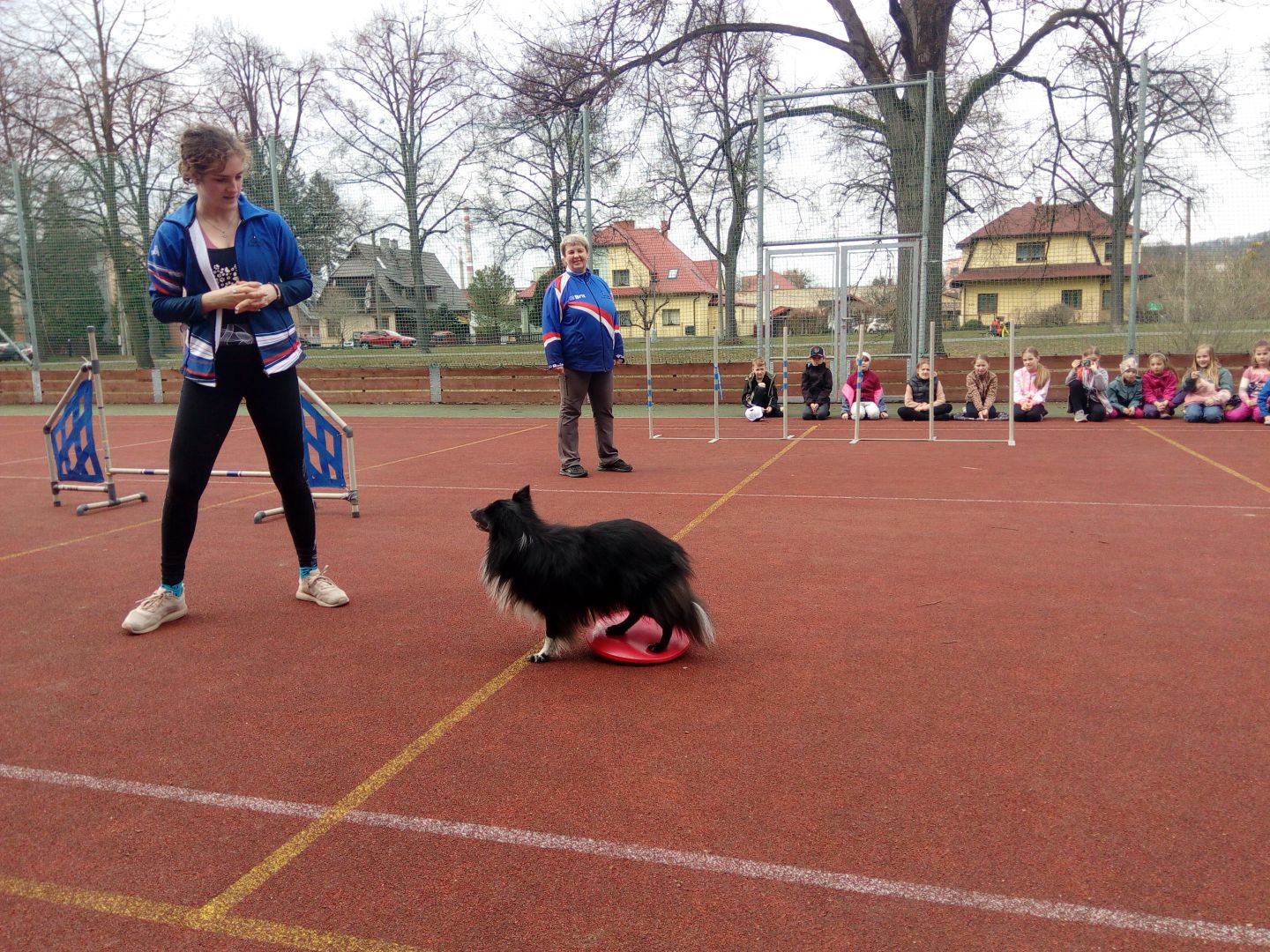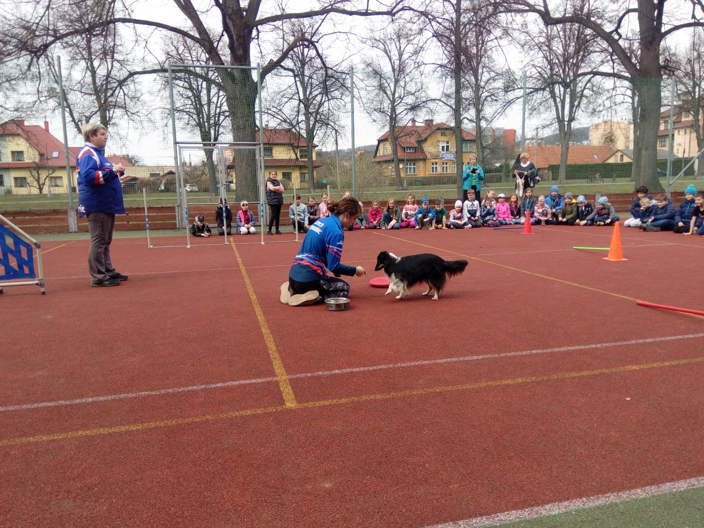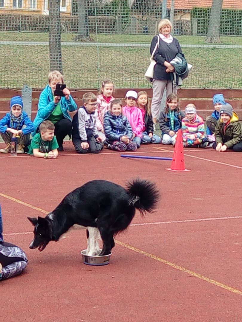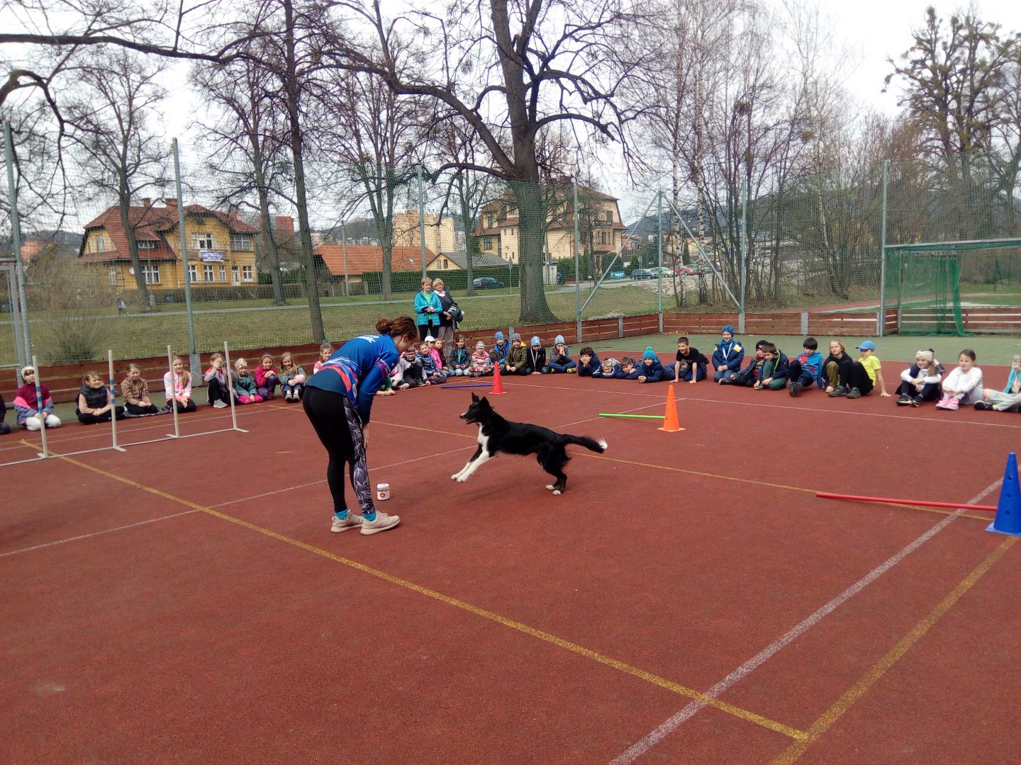 Na hřišti ZŠ Videčská jsme mohli s velkou radostí přivítat Radku Podmolovou s maminkou a jejich tři krásné a poslušné psy. Připravili nám velmi milé vystoupení s ukázkami psích kousků a různých triků. I dětem bylo umožněno si agility vyzkoušet.