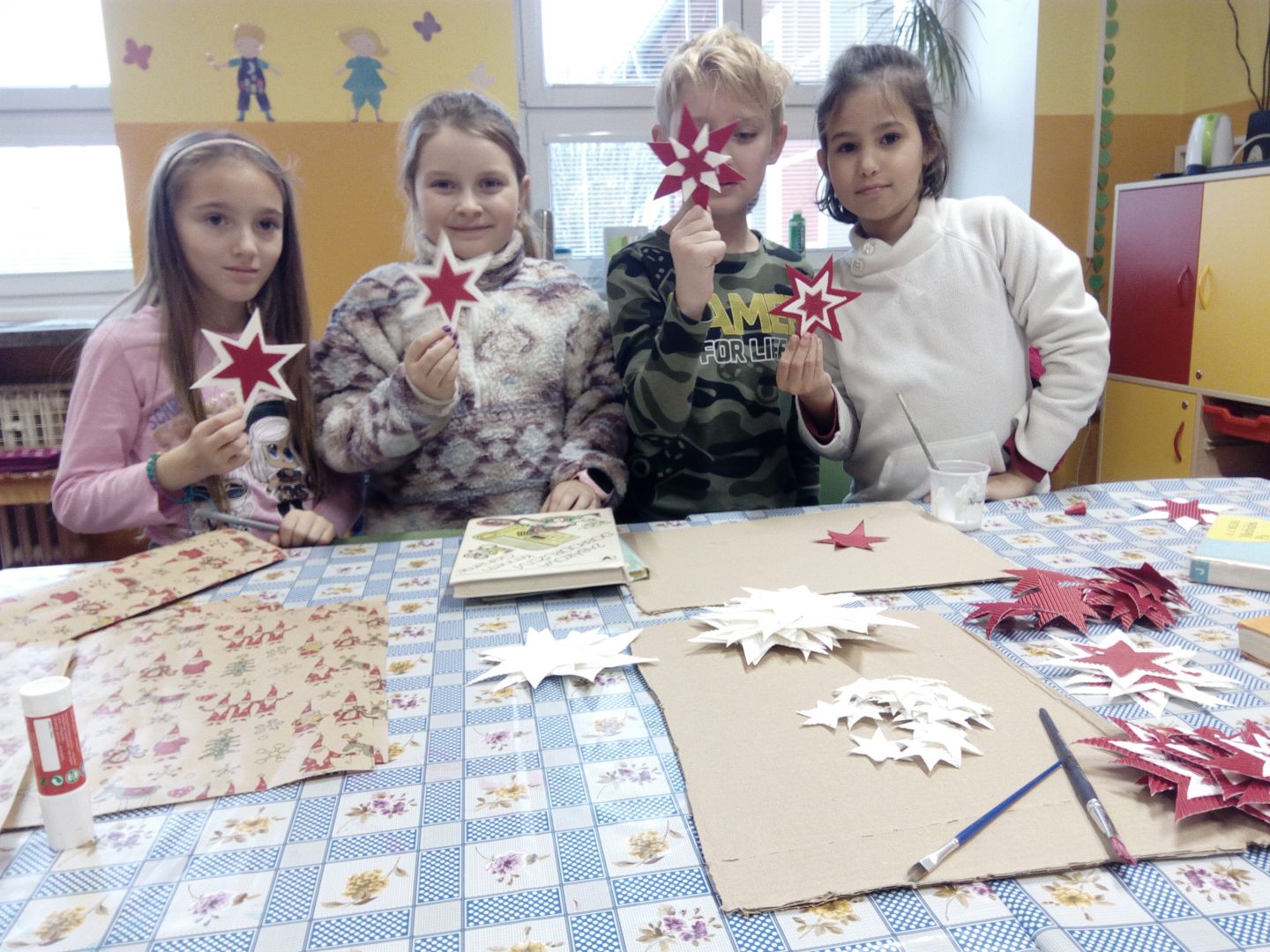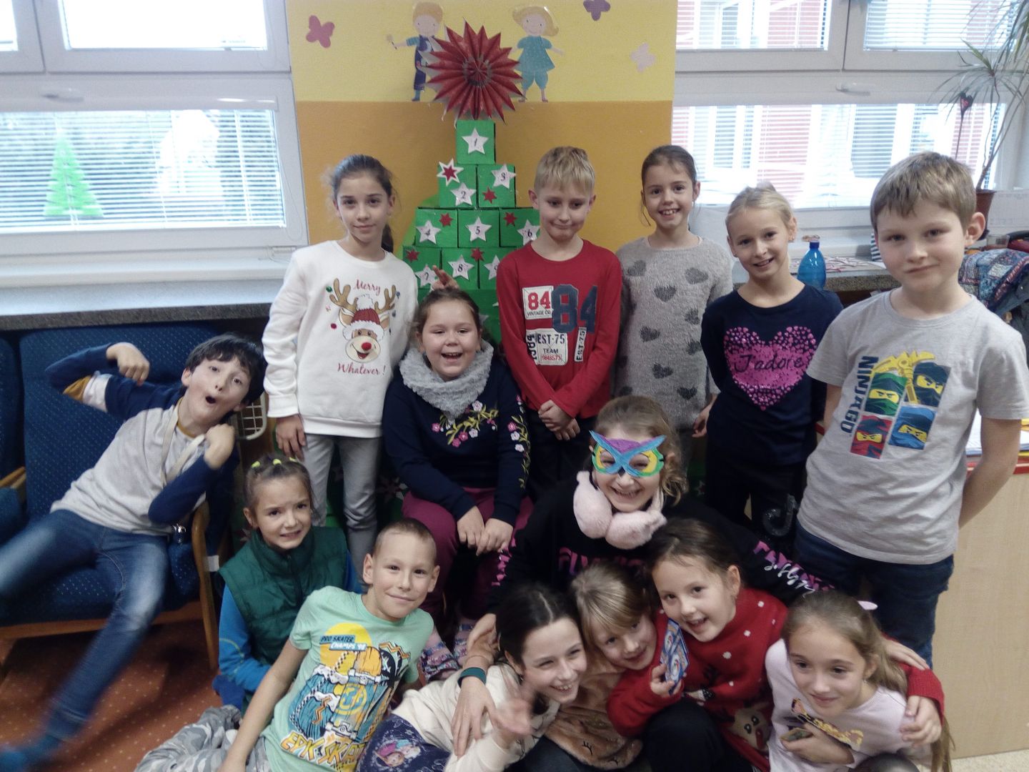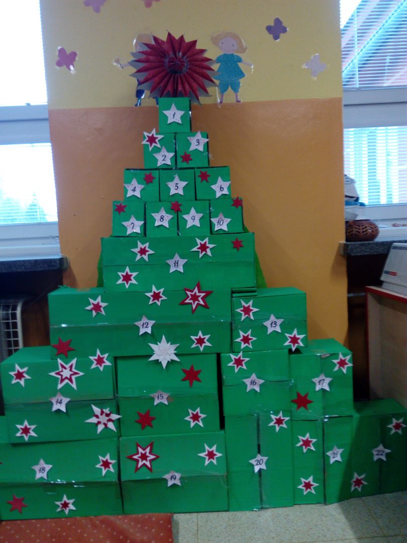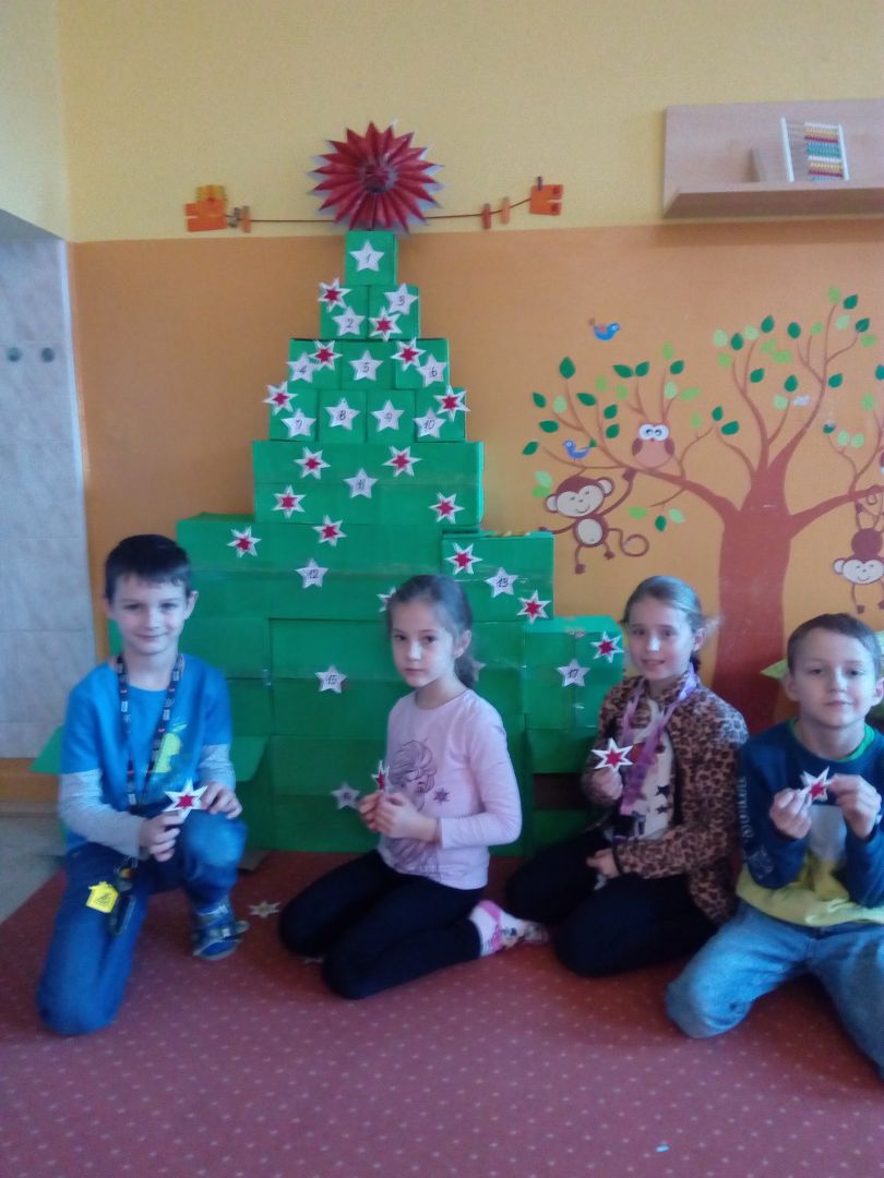 K 1.12.2022 jsme stihli dokončit adventní kalendář ve tvaru vánočního stromečku. Společně jsme natírali krabice, pak jsme je skládali jako puzzle a nakonec jsme stromeček vánočně ozdobili. Nechybí ani malé překvapení na každý adventní den, např. pod číslem 12. skákací guma, která rozhýbala děti v družině.