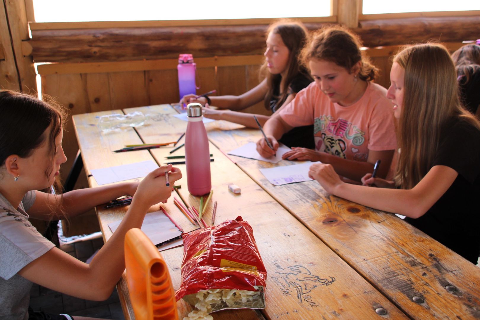 Adaptační kurz plný her a soutěží si užili noví šesťáci i se svými třídními učitelkami 4. a 5. září. V kempu na Bystřičce se vzájemně seznamovali, spolupracovali, tvořili si třídní totem, absolvovali stezku odvahy a na závěr museli dát všechny hlavy dohromady, aby našli cestu k pokladu. To vše pod vedením dvou výborných lektorek Šárky a Lenky.