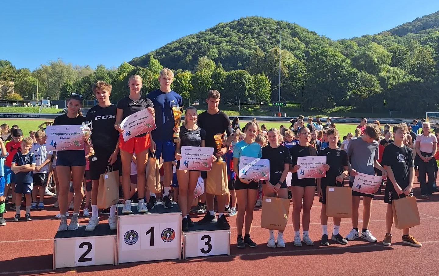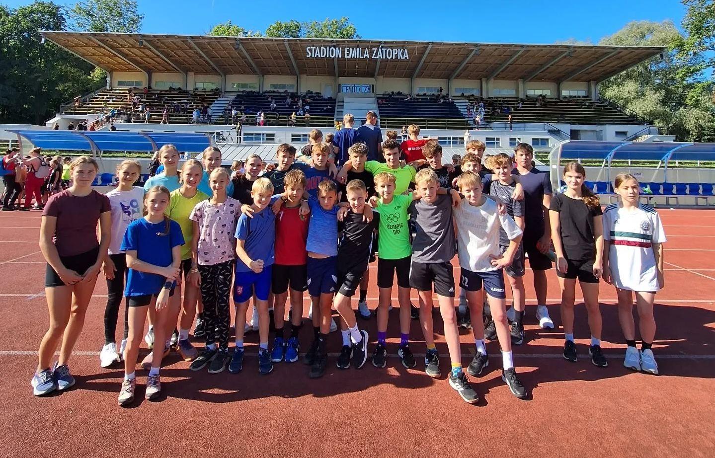 Běh Zátopkova desítka v Kopřivnici na stadionu Emila Zátopka. 25 žáků 2. stupně si formou štafety zaběhlo 10 km. Dne 19. 9. 2025 (v den závodu) uplynulo 103 let od narození tohoto VELIKÁNA nejen sportu. Pan Zátopek běhal 10 km v čase pod 29 minut. Naše štafeta dosáhla na čas 32 minut 6 sekund.