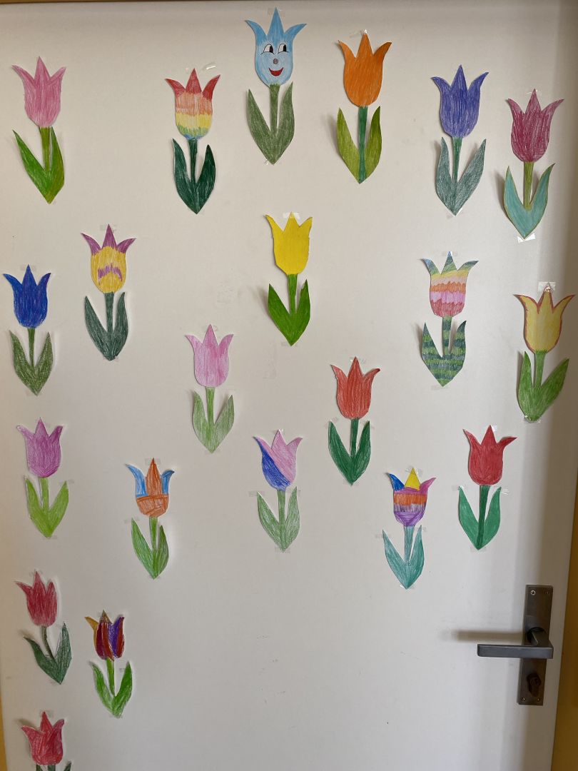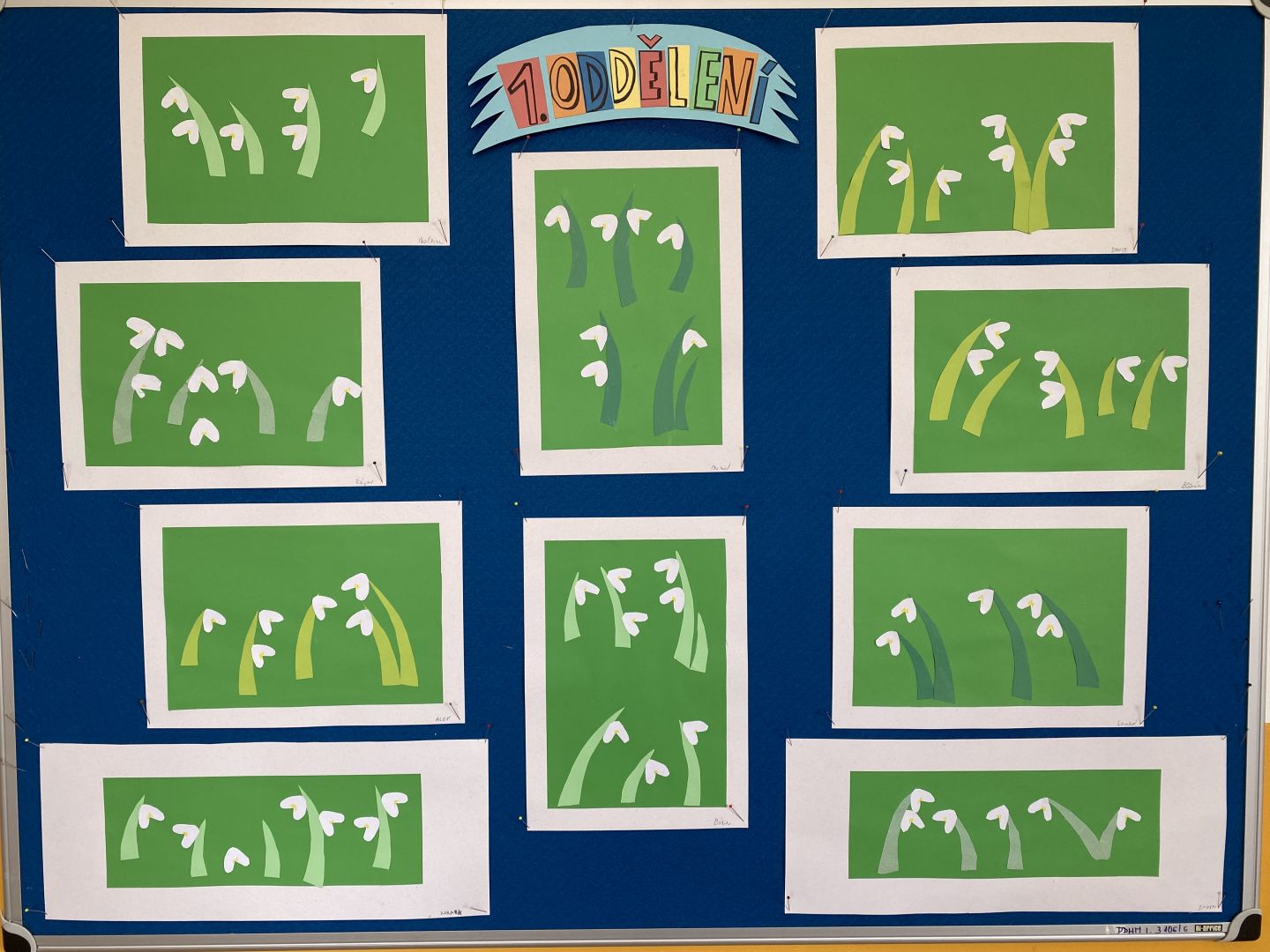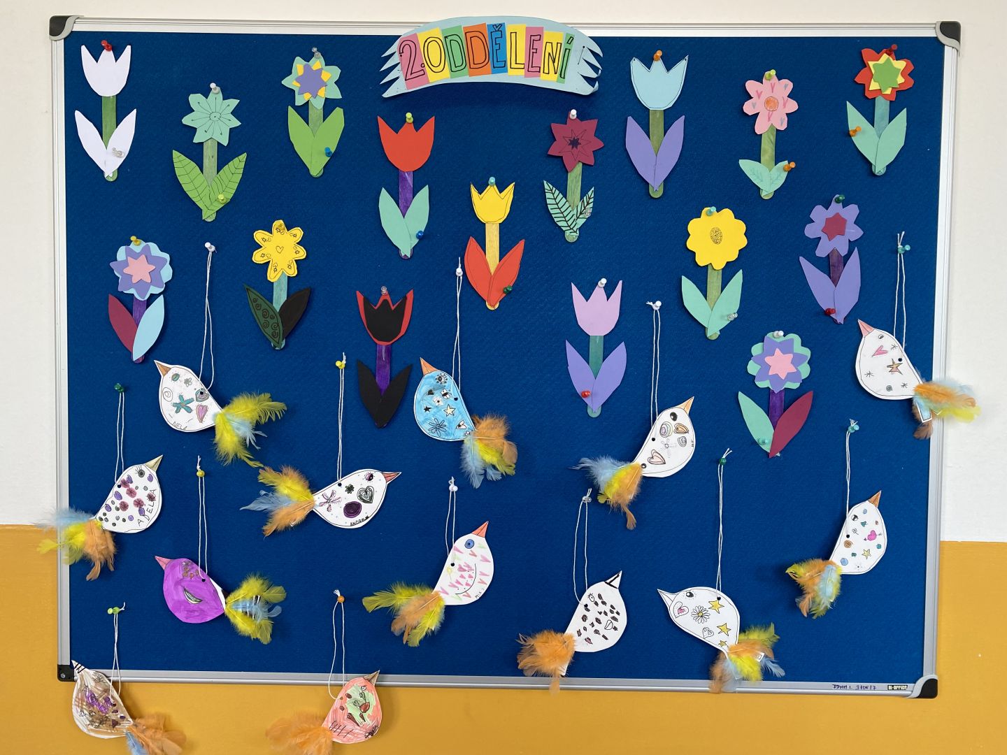 A když sluníčko nesvítilo, prozářili jsme prostory chodby jarními výtvory naších žáků.