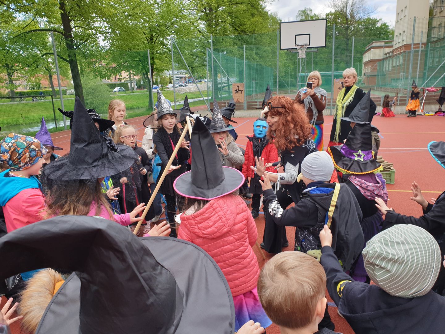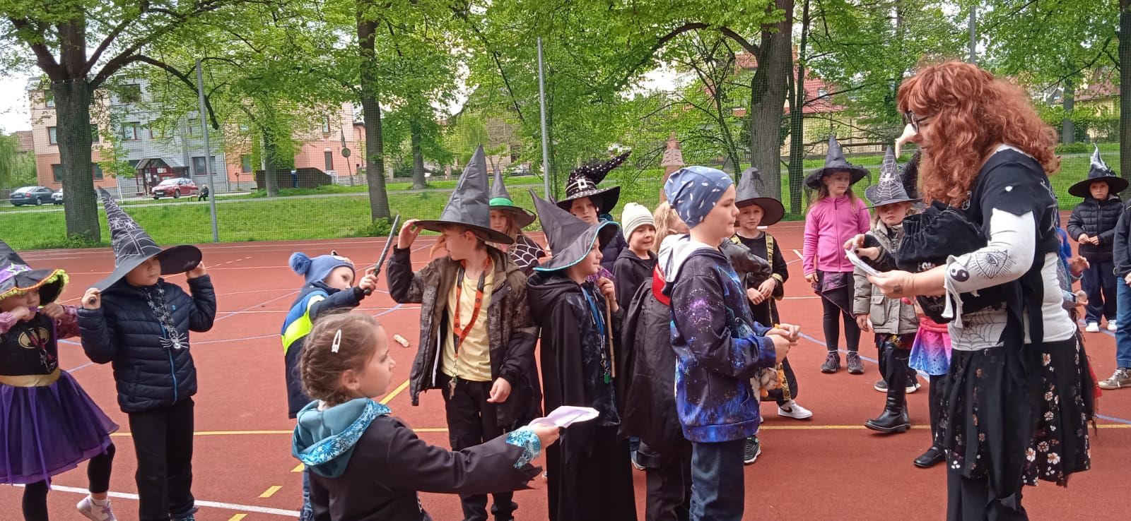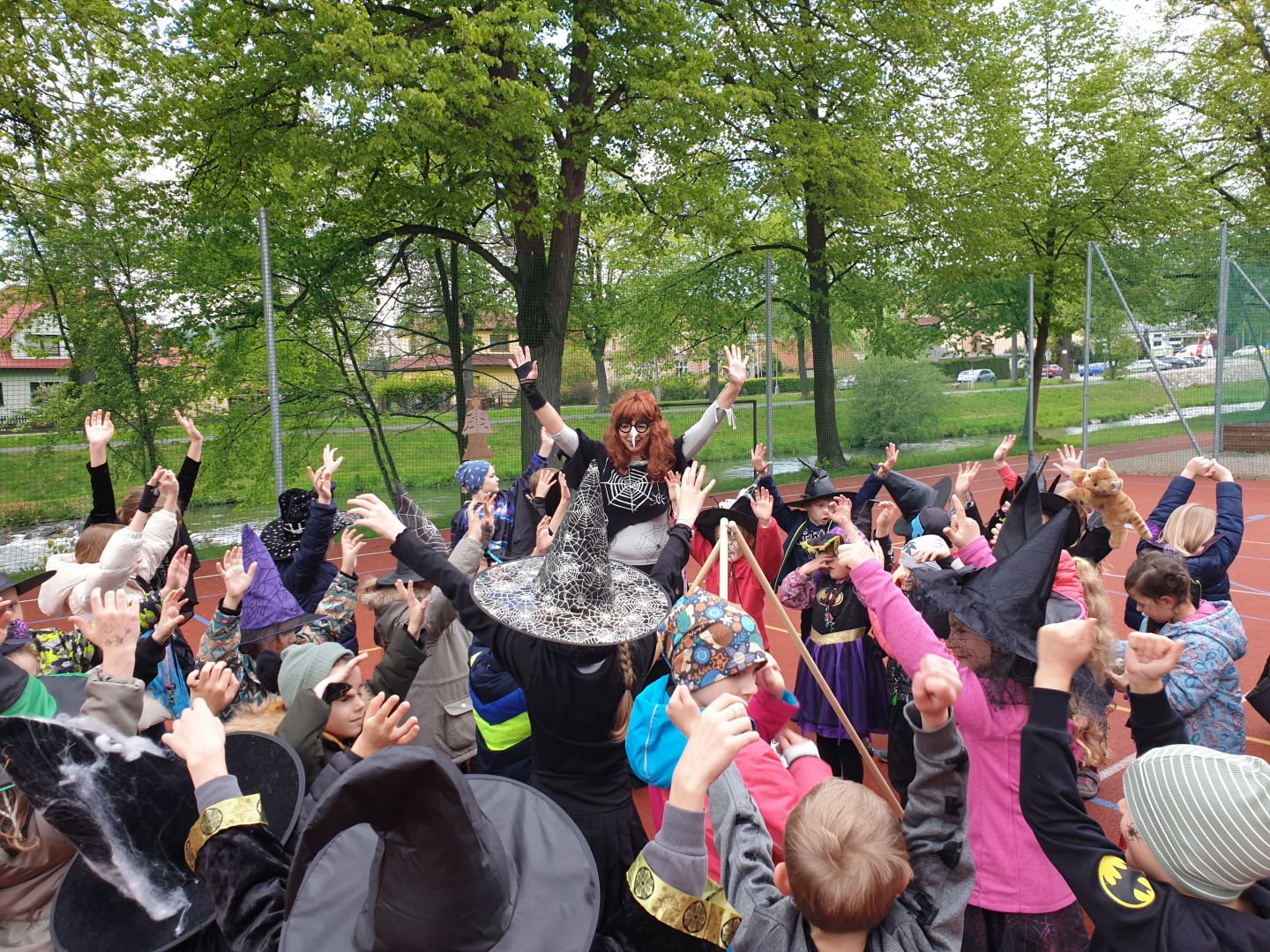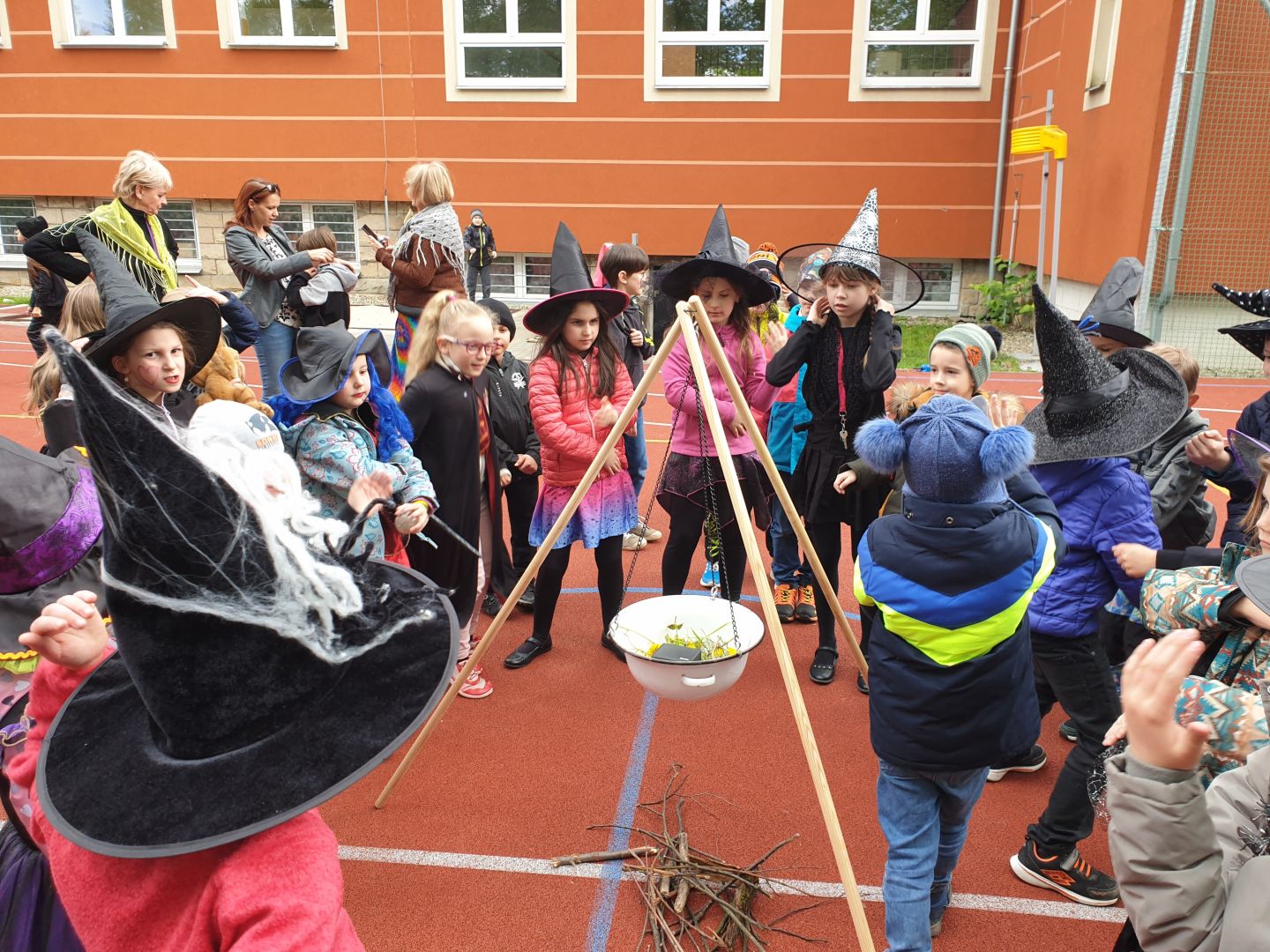 V pátek 26.4. se ve školní družině sletěly čarodějnice a mnoho jiných strašidelných bytostí. Potom na školním hřišti vypukl velký slet čarodějnic. Děti v maskách stavěly vatry, vyráběly čarodějný oheň, soutěžily v běhu s lopatou, v létání na koštěti a připravovaly čarodějný lektvar. Čarodějnické rejdění ukončil rituální tanec. Děti si rejdění užily a za splnění úkolů si odnesly čarodějnické vysvědčení s malou odměnou.