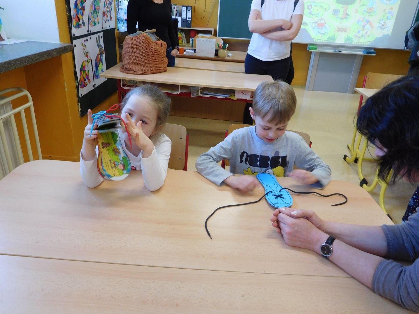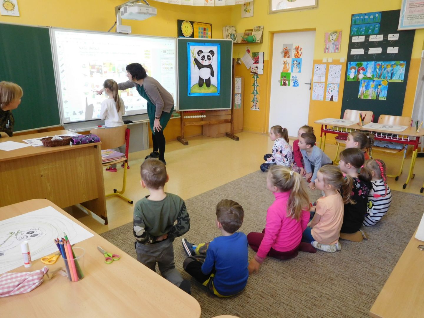 Na našem předposledním setkání, kterým provázela panda, si děti vyzkoušely činnosti zaměřené na sebeobslužnost a manuální zručnost. Například si namalovaly vlastní pandu, zavazovaly tkaničky, zapínaly knoflíčky, pracovaly na interaktivní tabuli a dozvěděly se, co si sbalit do aktovky. I tentokrát je za jejich šikovnost paní učitelky odměnily veselou magnetkou.