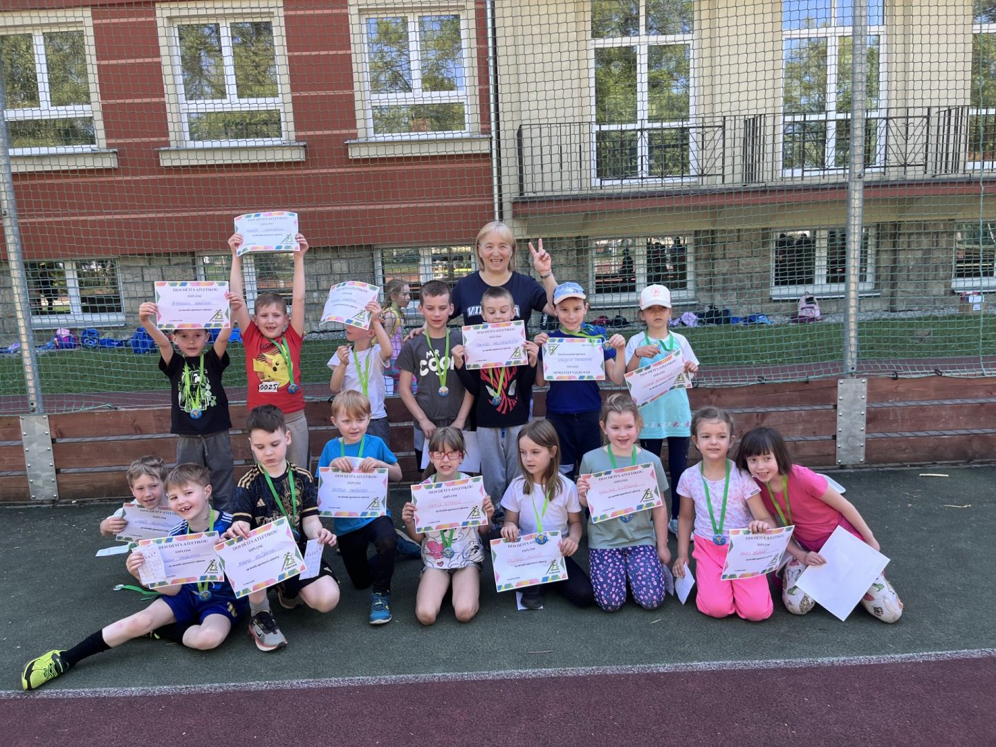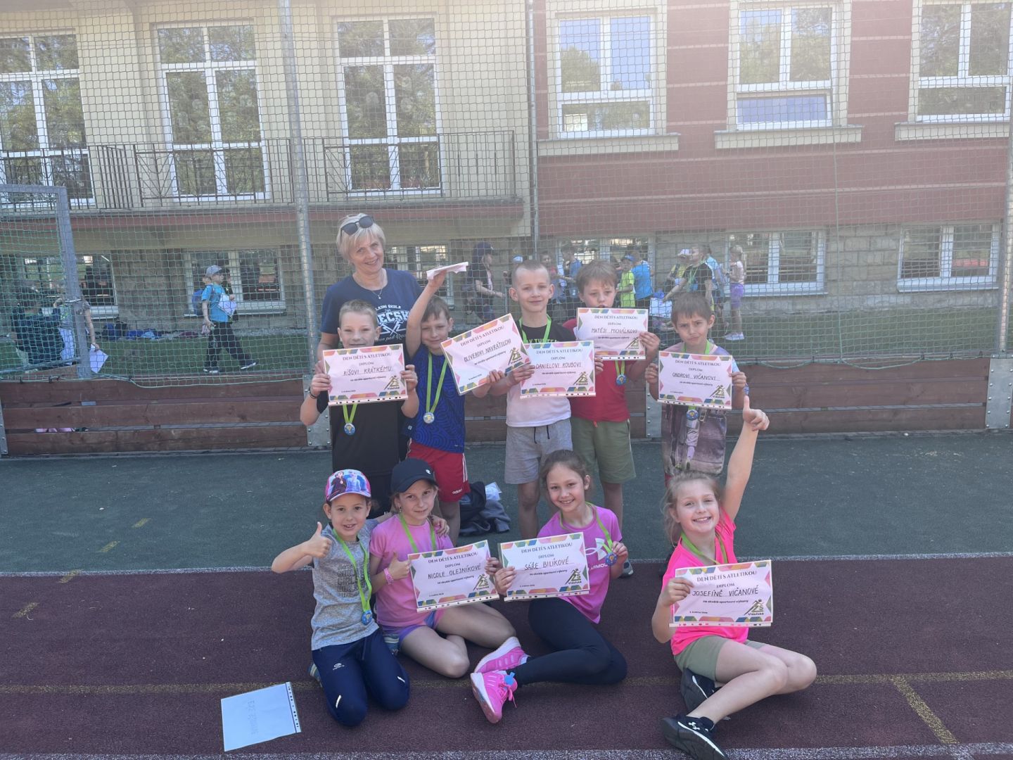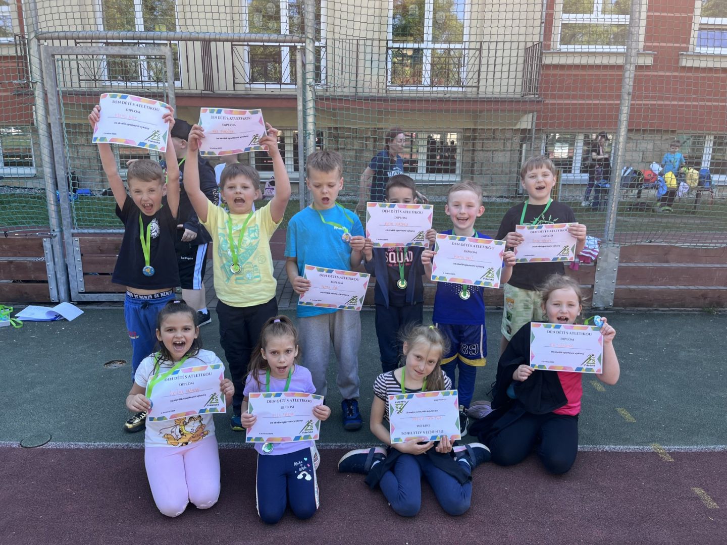 I v rámci tohoto atletického dne pro nejmenší byl vytvořen doprovodný program. Naši deváťáci si před školou pro děti připravili na deseti stanovištích zábavné sportovní, či vědomostní úkoly. Na konci dne pak všichni žáci dostali originální medaili za skvělý sportovní výkon. Věříme, že se všem žákům tento den líbil.