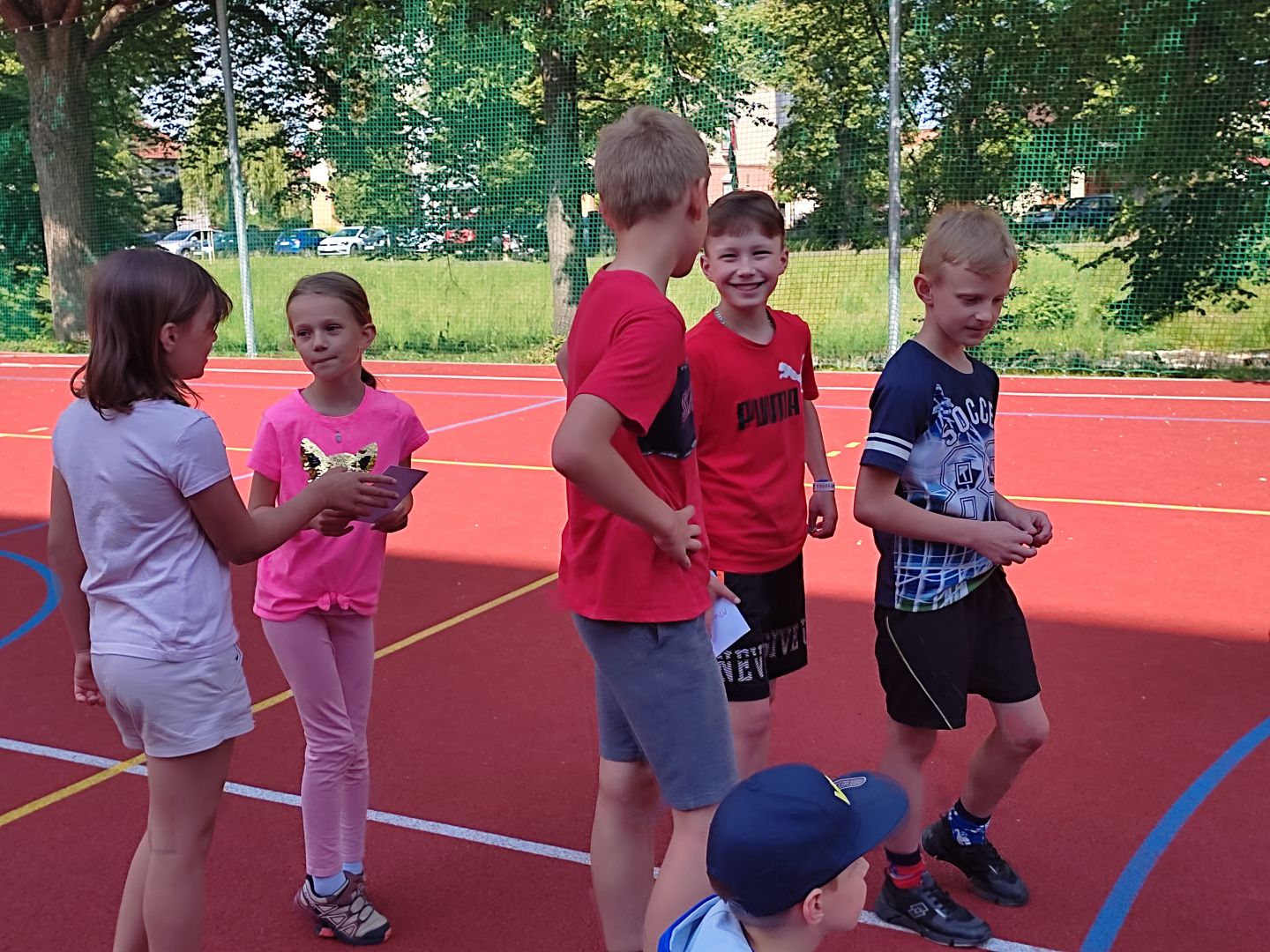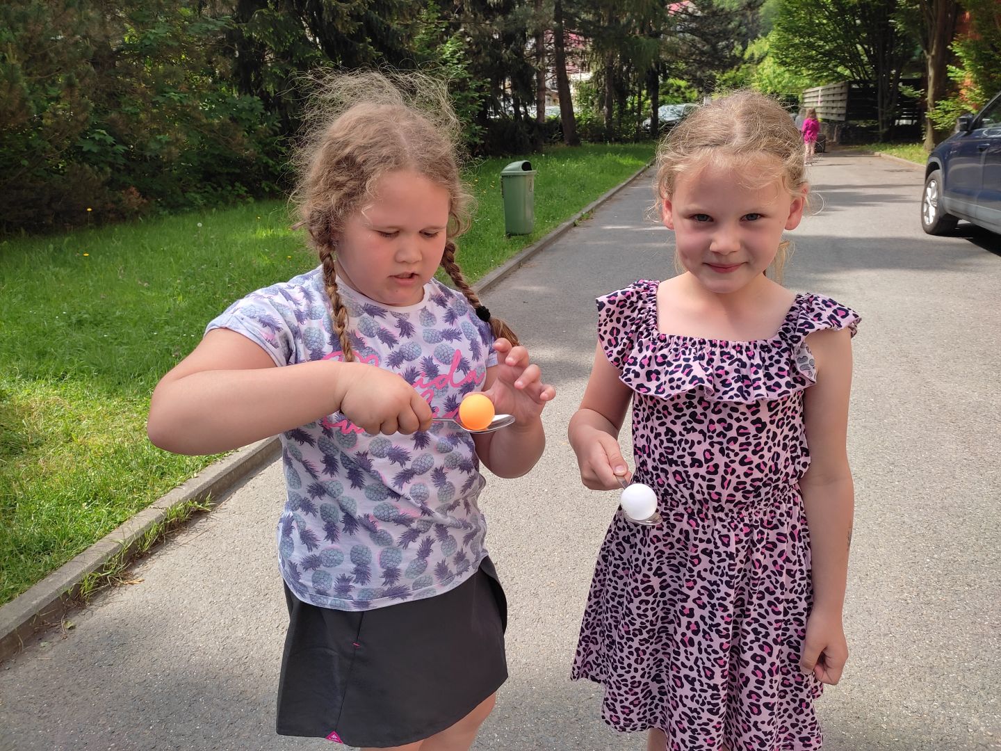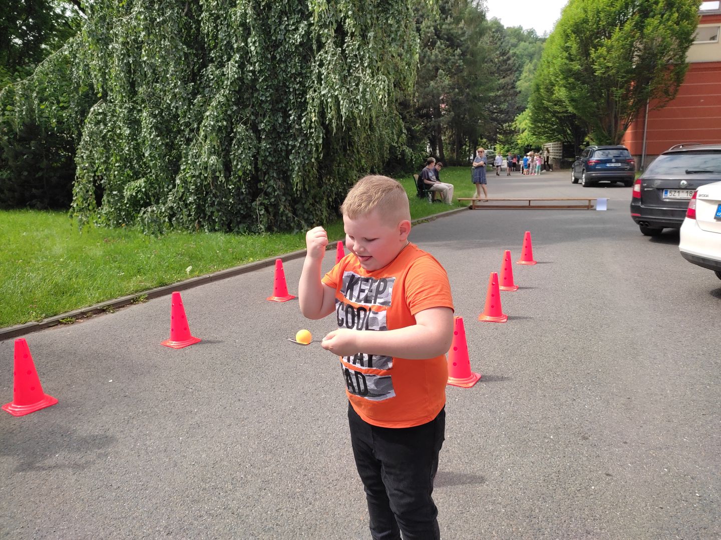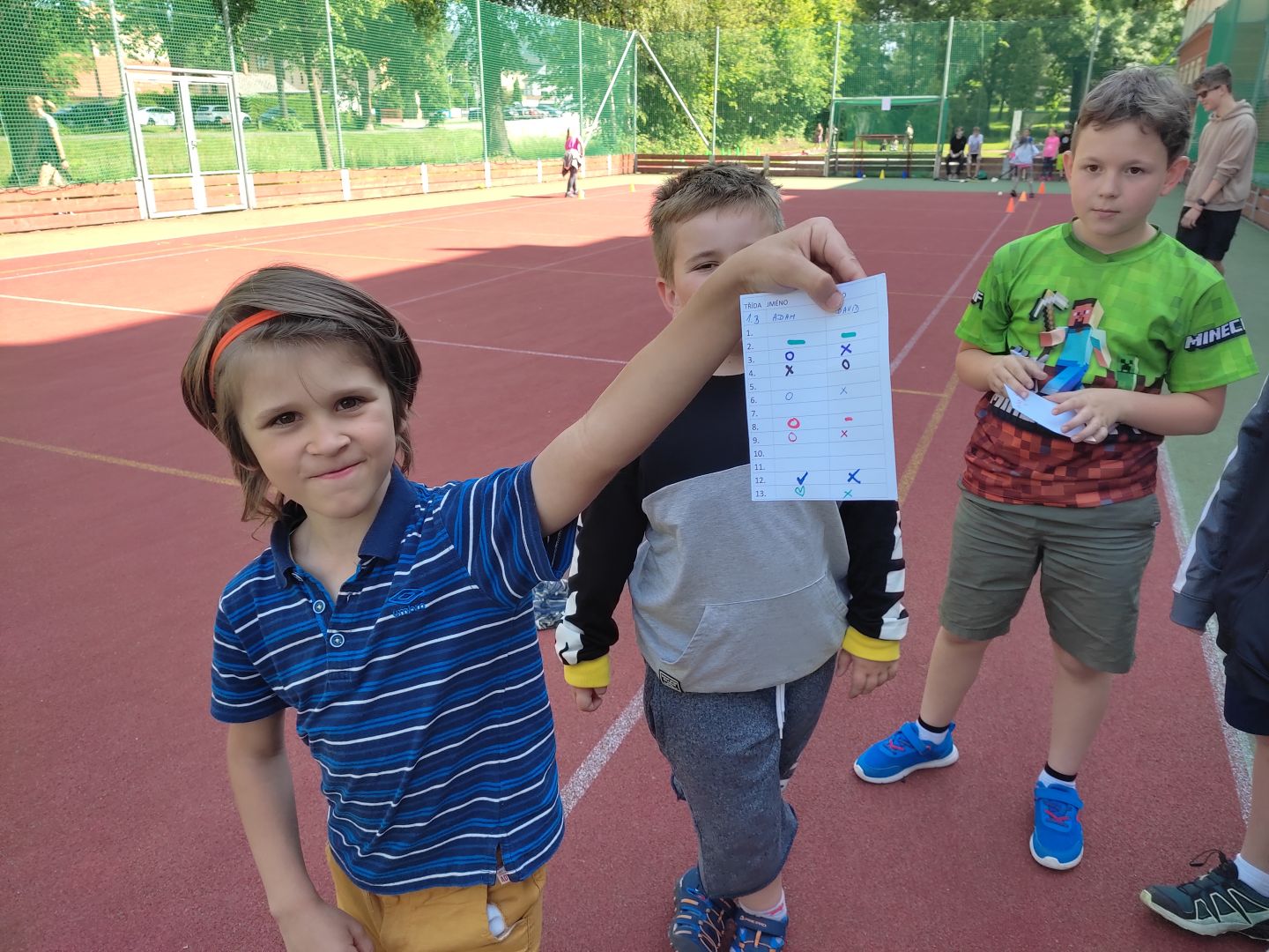 Ke Dni dětí se konal sportovní den, zúčastnily se ho třídy prvního stupně naší školy. Připravili si ho pro nás deváťáci tak, že byla různá stanoviště a my jsme po nich chodili (většinou ve dvojici). Na stanovištích byly různé sportovní a vědomostní aktivity, například jste museli seřadit názvy vlajek, nebo běhat s dresy. A to všechno jako závody se svým kamarádem ve dvojici. Mně se nejvíc líbilo poznávání vlajek, které jsem všechny poznala, takže jsem měla bod, který se zapsal na papírovou kartičku. Tak to bylo u každého stanoviště. Ten, kdo vyhrál dostal bod, nebo když to byla remíza měli jste s kamarádem čárku. Kdo měl na konci nejvíc bodů ten vyhrál. U mě ve dvojici jsem vyhrála já. Mojí kamarádce to bylo líto, ale přece to byla jenom hra. Mým kamarádům se asi nejvíc líbilo stanoviště s vodou, protože se tam všichni hned na začátku nahrnuli. Mně se to taky líbilo. Tento den byl super. Děkujeme deváťákům, že si pro nás připravili takový úžasný den.