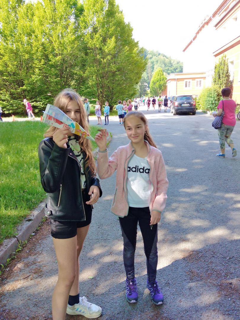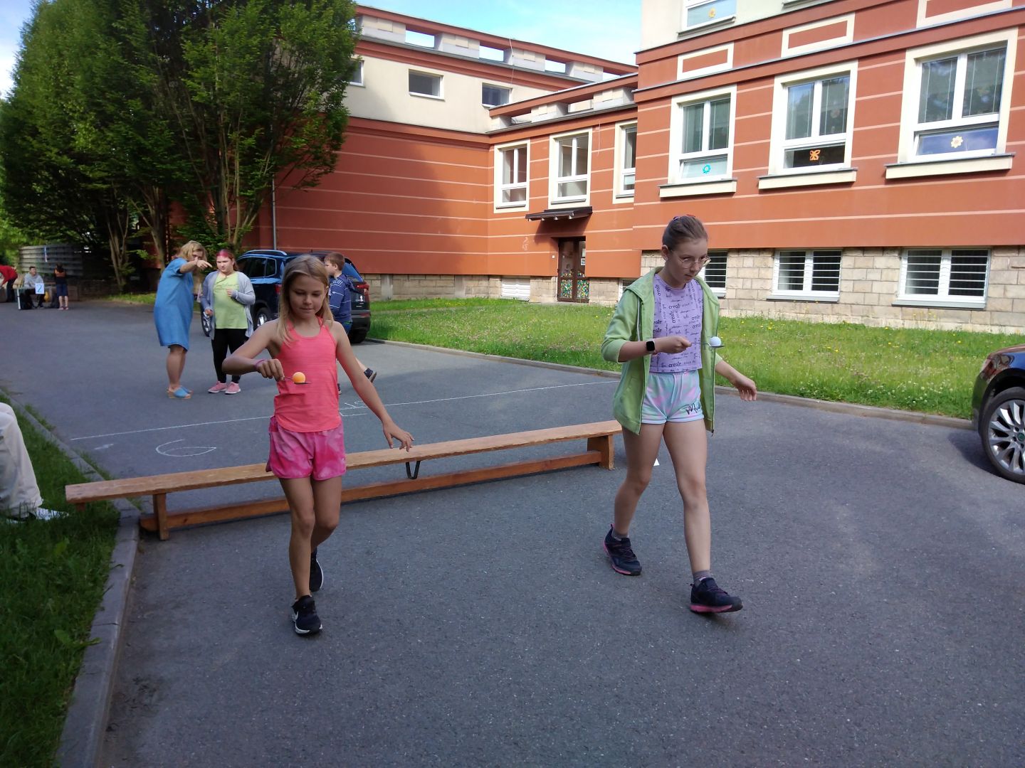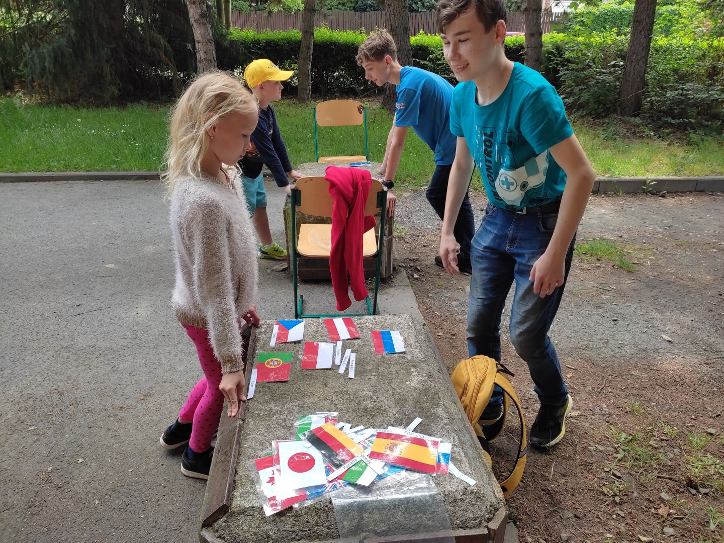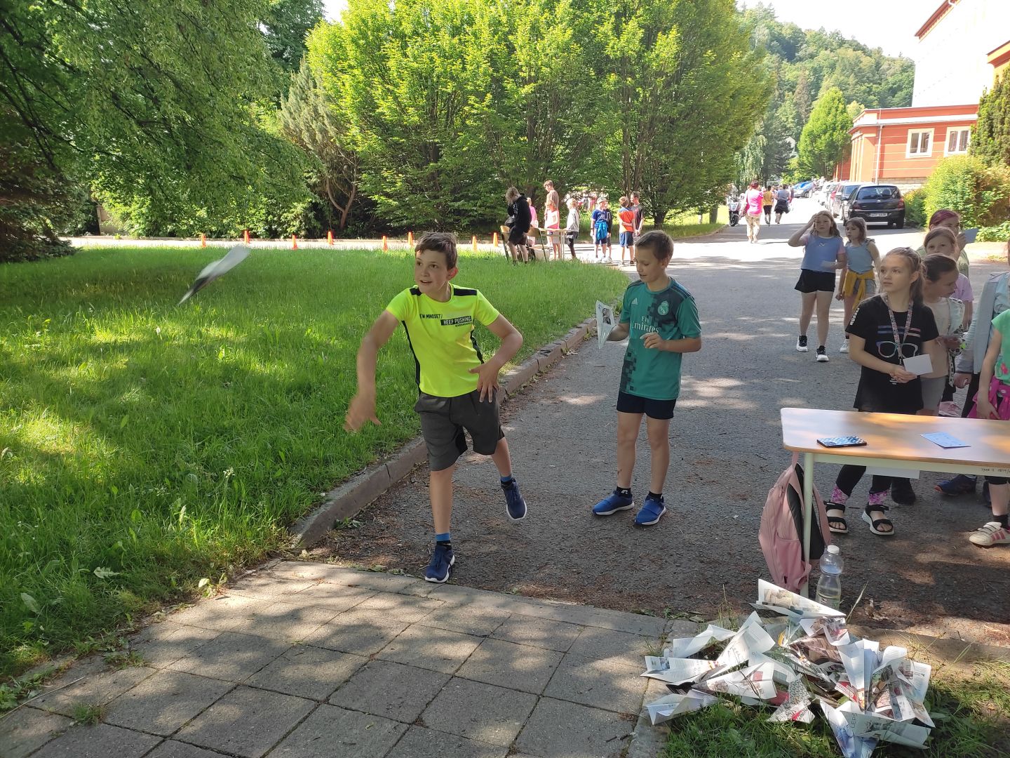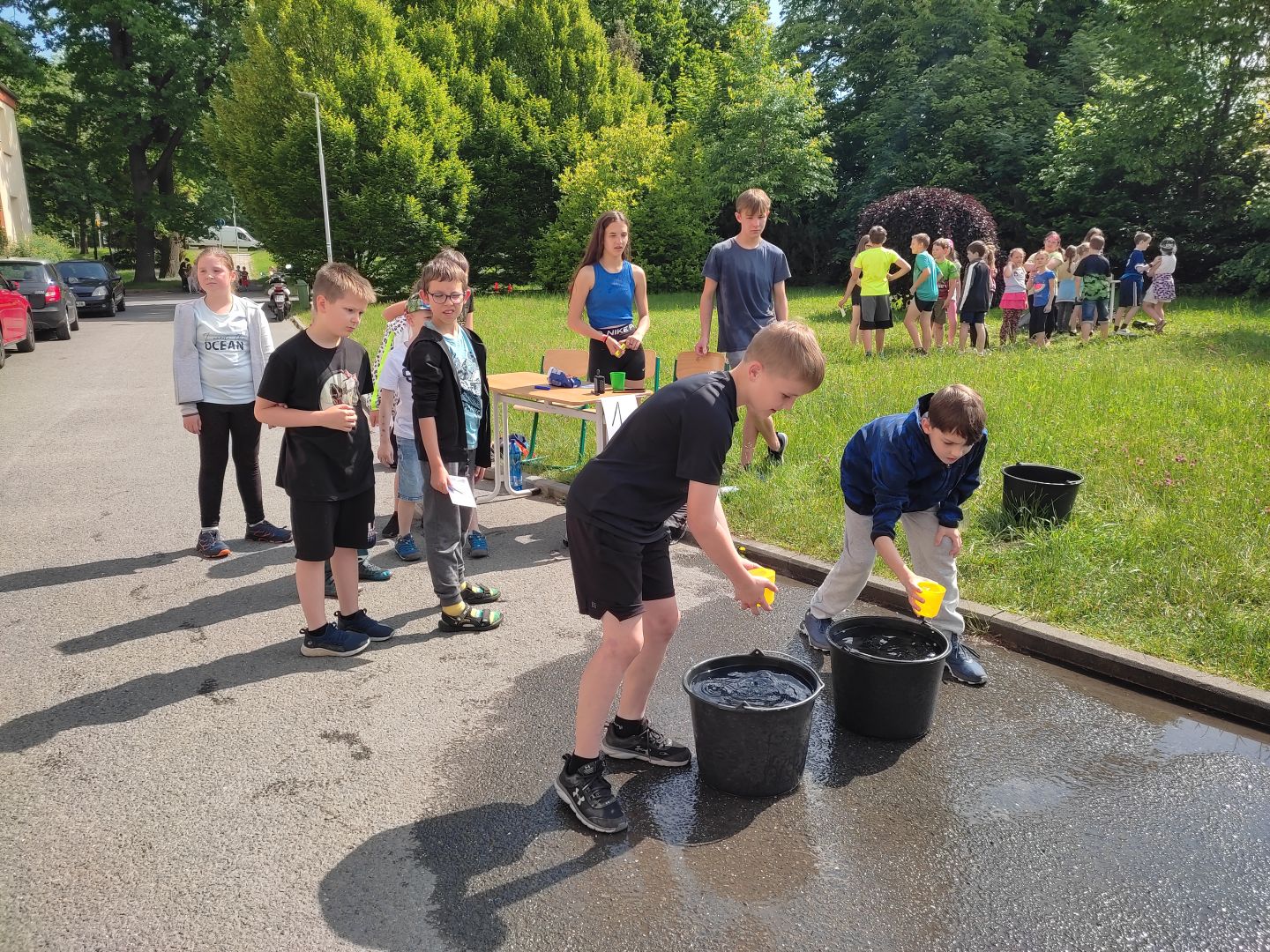 Ke Dni dětí se konal sportovní den, zúčastnily se ho třídy prvního stupně naší školy. Připravili si ho pro nás deváťáci tak, že byla různá stanoviště a my jsme po nich chodili (většinou ve dvojici). Na stanovištích byly různé sportovní a vědomostní aktivity, například jste museli seřadit názvy vlajek, nebo běhat s dresy. A to všechno jako závody se svým kamarádem ve dvojici. Mně se nejvíc líbilo poznávání vlajek, které jsem všechny poznala, takže jsem měla bod, který se zapsal na papírovou kartičku. Tak to bylo u každého stanoviště. Ten, kdo vyhrál dostal bod, nebo když to byla remíza měli jste s kamarádem čárku. Kdo měl na konci nejvíc bodů ten vyhrál. U mě ve dvojici jsem vyhrála já. Mojí kamarádce to bylo líto, ale přece to byla jenom hra. Mým kamarádům se asi nejvíc líbilo stanoviště s vodou, protože se tam všichni hned na začátku nahrnuli. Mně se to taky líbilo. Tento den byl super. Děkujeme deváťákům, že si pro nás připravili takový úžasný den.