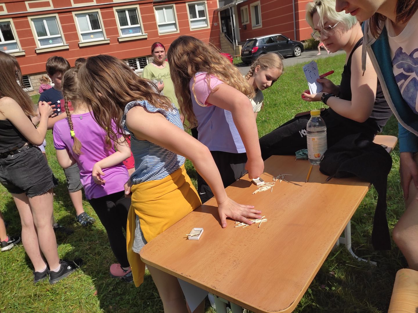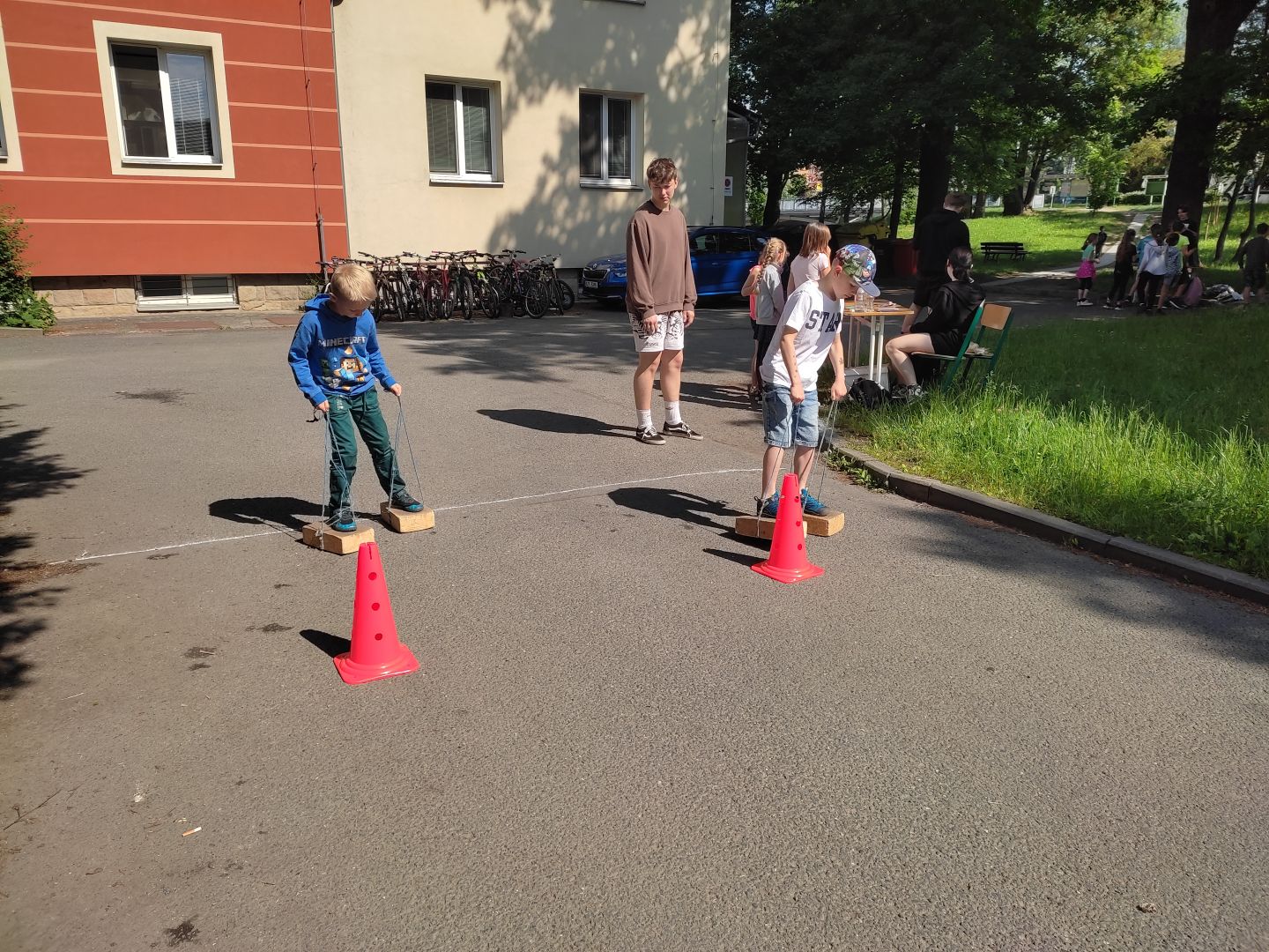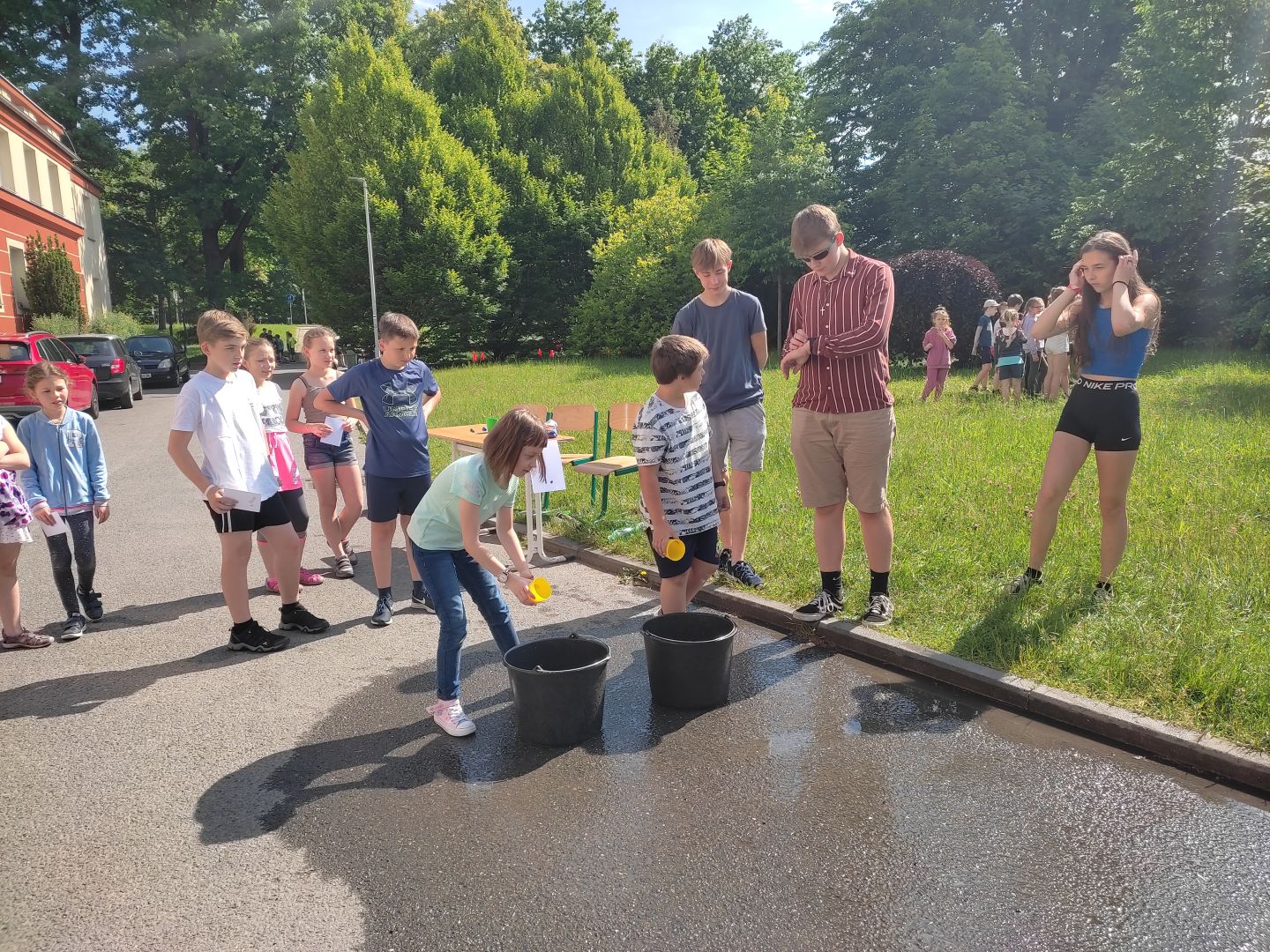 Dne 3.6. se na naší škole konal sportovní den uspořádaný žáky devátých ročníků. Bylo přichystáno celkem 13 stanovišť kolem školy, mezi ně patřila stanoviště zaměřená na sport, mozek a celkové dovednosti. Za nás dva bylo nejtěžší skládání sirek do krabičky a nejsnadnější skládání puzzle. Většině naší třídy se akce moc líbila. Je prima mít občas změnu od učení a byli bychom rádi, kdyby se s konáním takových akcí pokračovalo.