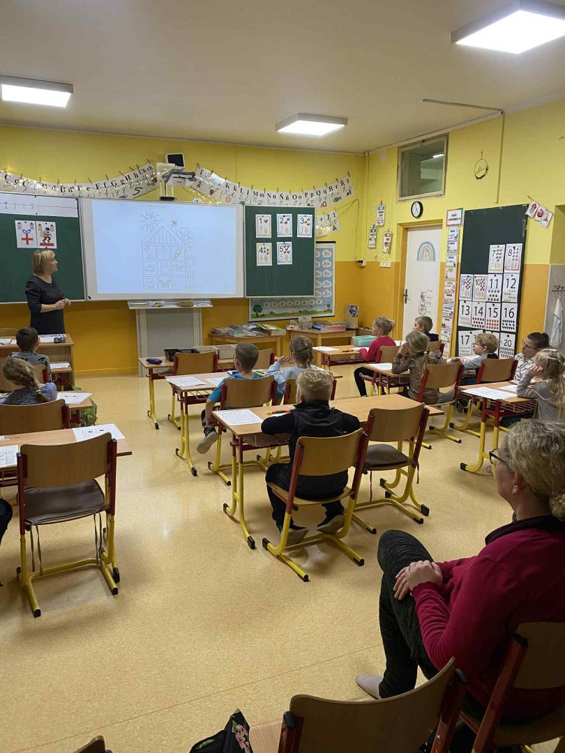 Druhé setkání budoucích prvňáčků proběhlo ve středu 3.12. Hodina byla zaměřená na rozvoj grafomotoriky, zrakového rozlišování a prostorové orientace. V dílničce se sovičkou si děti vyzkoušely správné držení tužky i své první tahy na papír ve školní lavici. Společně také počítaly a třídily barevná víčka, díky nimž trénovaly paměť, orientaci i počítání. Děti si rovněž vyzkoušely práci s interaktivní tabulí. Za pilnou práci si odnesly domů magnetku se sovičkou.