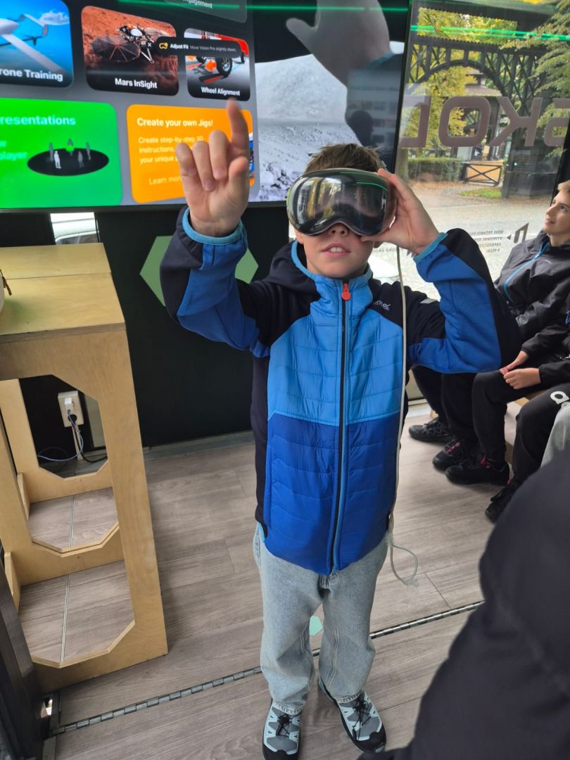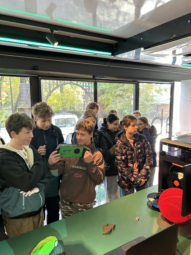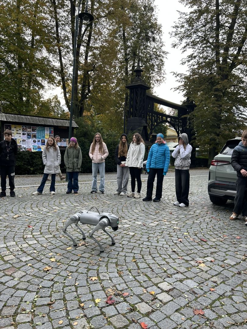V pondělí 13.10. a úterý 14. 10. navštívili sedmáci a osmáci kamion EDU.Lab, kde viděli spoustu moderní technologie. Dozvěděli se, proč nemít účet na TikToku, nahlédli do elektrické Škodovky, kabiny kamionu, viděli 3D tisk, malujícího robota, virtuální realitu, adaptivní světlomety, infrakameru, virtuální realitu a hlavně robotického pejska Edu.