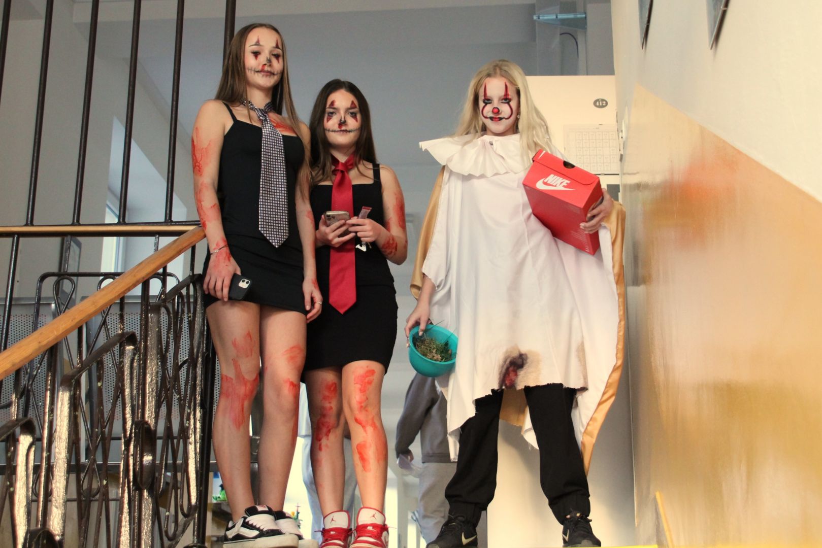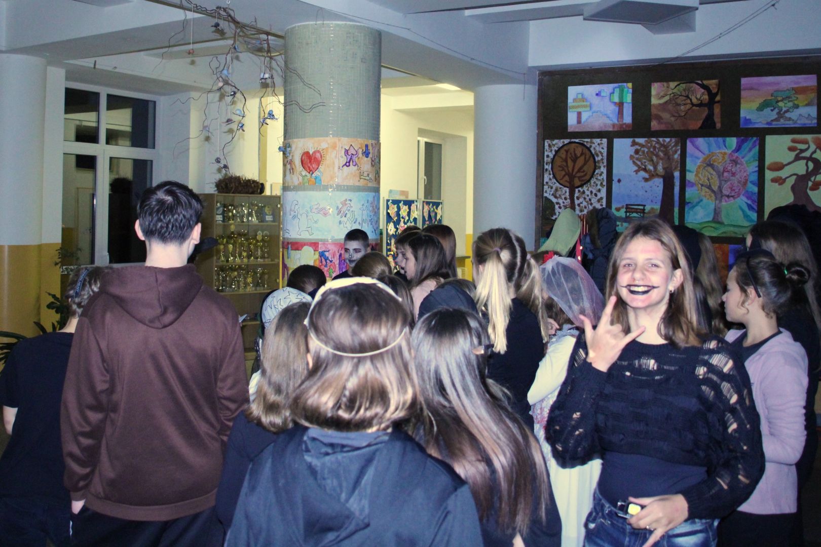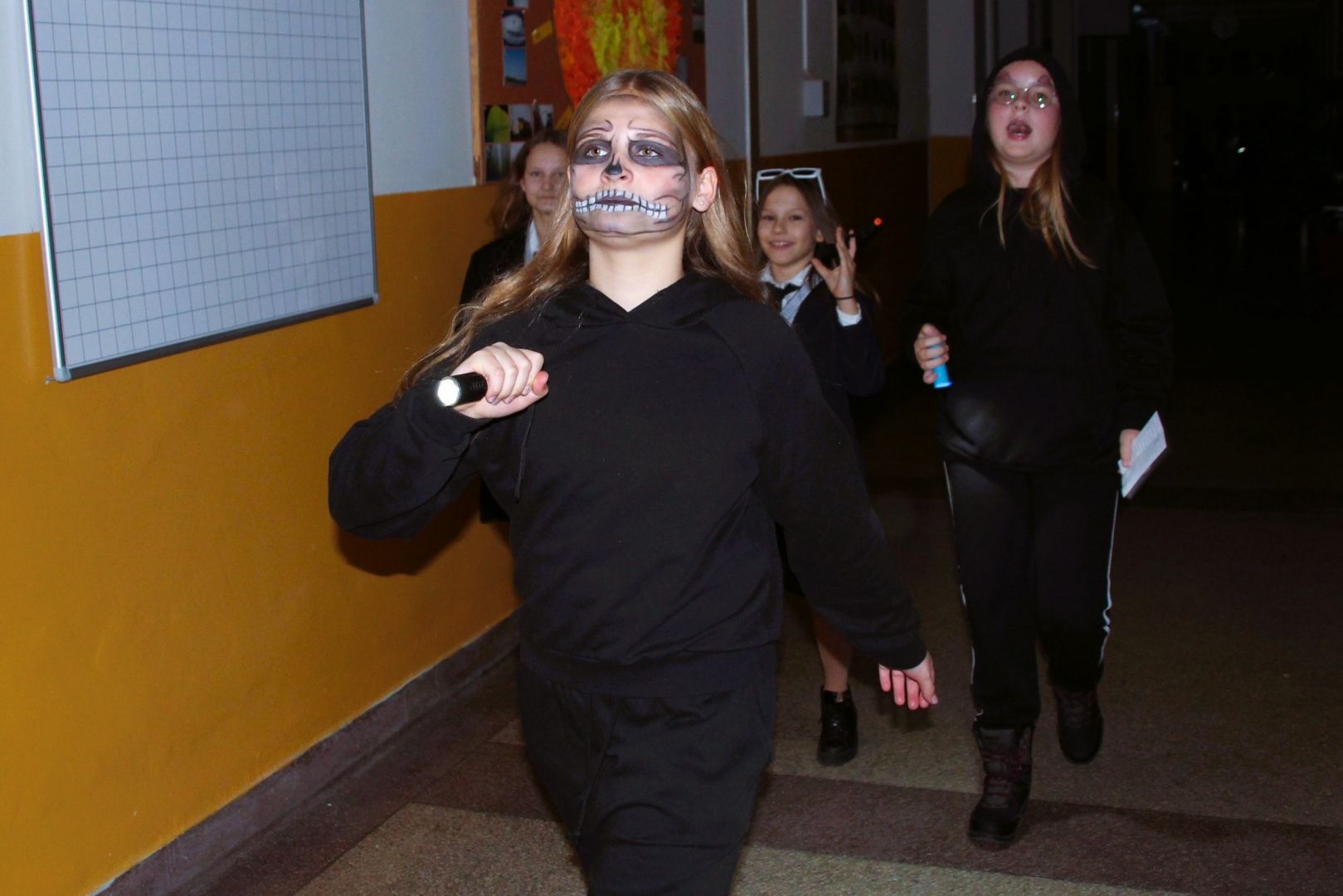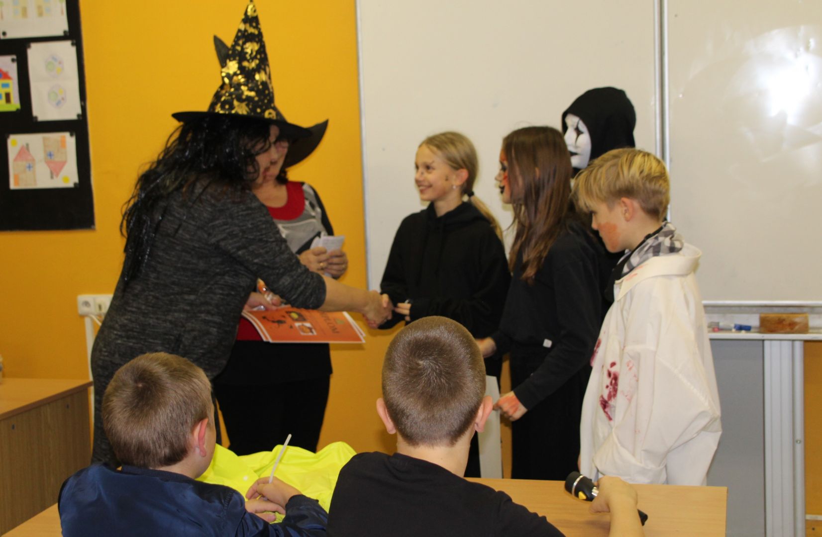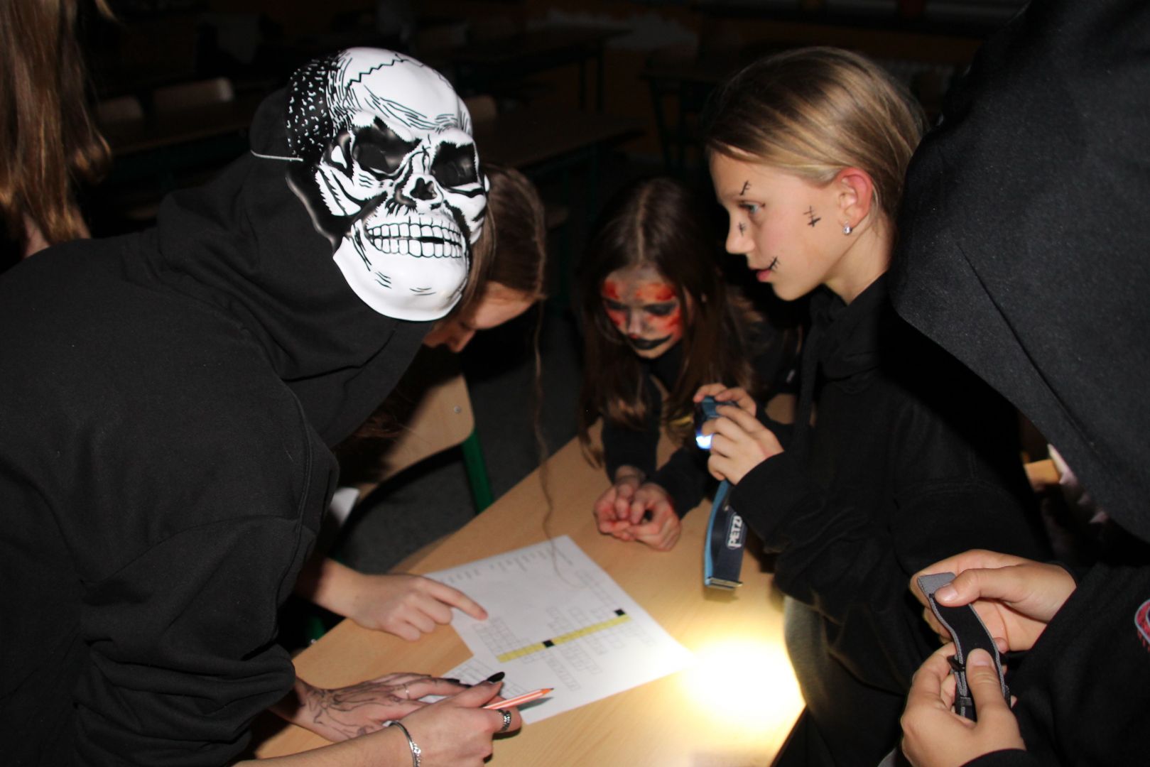Ve čtvrtek 7. listopadu probíhala v naší škole Halloweenská party, kterou pořádali pro žáky 6. tříd deváťáci a učitelé AJ. Vše se odehrálo potmě, začínali jsme v 17 hodin. Nejprve učitelé připomněli pravidla a rozdali nám soutěžní kartičky, byli jsme v týmech po čtyřech. Pak jsme začali chodit po stanovištích. Většina z nich byla v učebnách, dvě byla v podsvětí (v šatně) a jedno v relax timu. Nejvíce se mi líbila 3 stanoviště: řeznictví, kde jsme hledali prasátko, které řezníkům uteklo, vyšetřování vraždy jako policajti a také hádání hororových filmů. Za splněné úkoly jsme dostali body. Když všechny týmy obešly všechna stanoviště, nastalo vyhlášení. Náš tým zvítězil. Dostali jsme diplom a velké halloweenské lízátko. Muffinem a bonbóny byli odměněni všichni. Akce se mi strašně moc líbila a cením práci deváťáků.