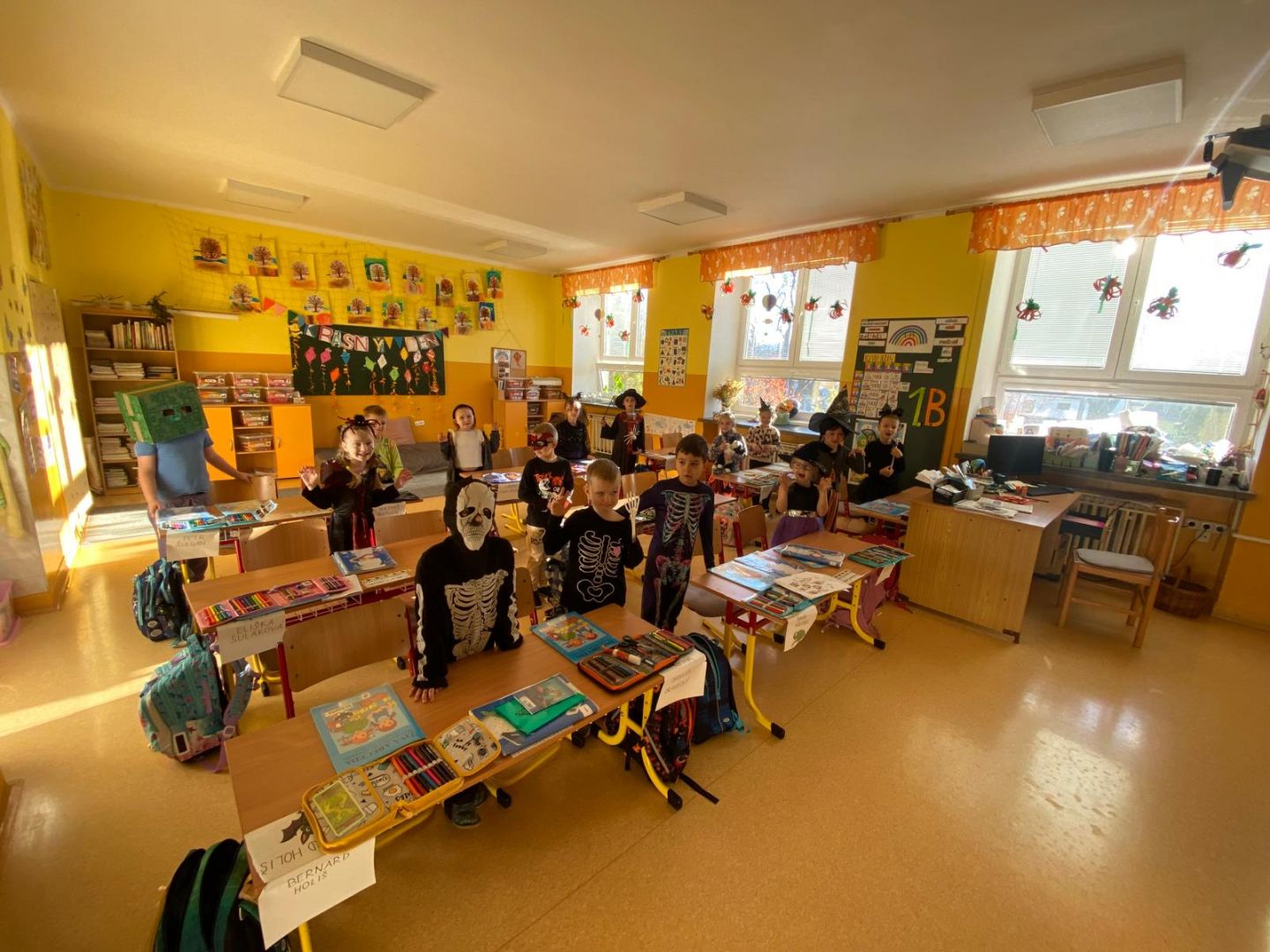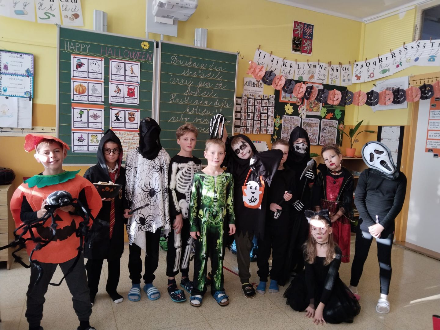 V pátek 31. října se na 1. stupni naší školy konalo Halloweenské dopoledne. Žáci se převlékli do strašidelných masek a řádili po škole. Každá vyučující si připravila tematickou výuku v duchu tohoto svátku. O velké přestávce se pak všechna strašidla seběhla v tělocvičně, kde ve svých kostýmech zapózovala. Děkujeme rodičům za spolupráci v rámci přípravy kostýmu i občerstvení do třídy.