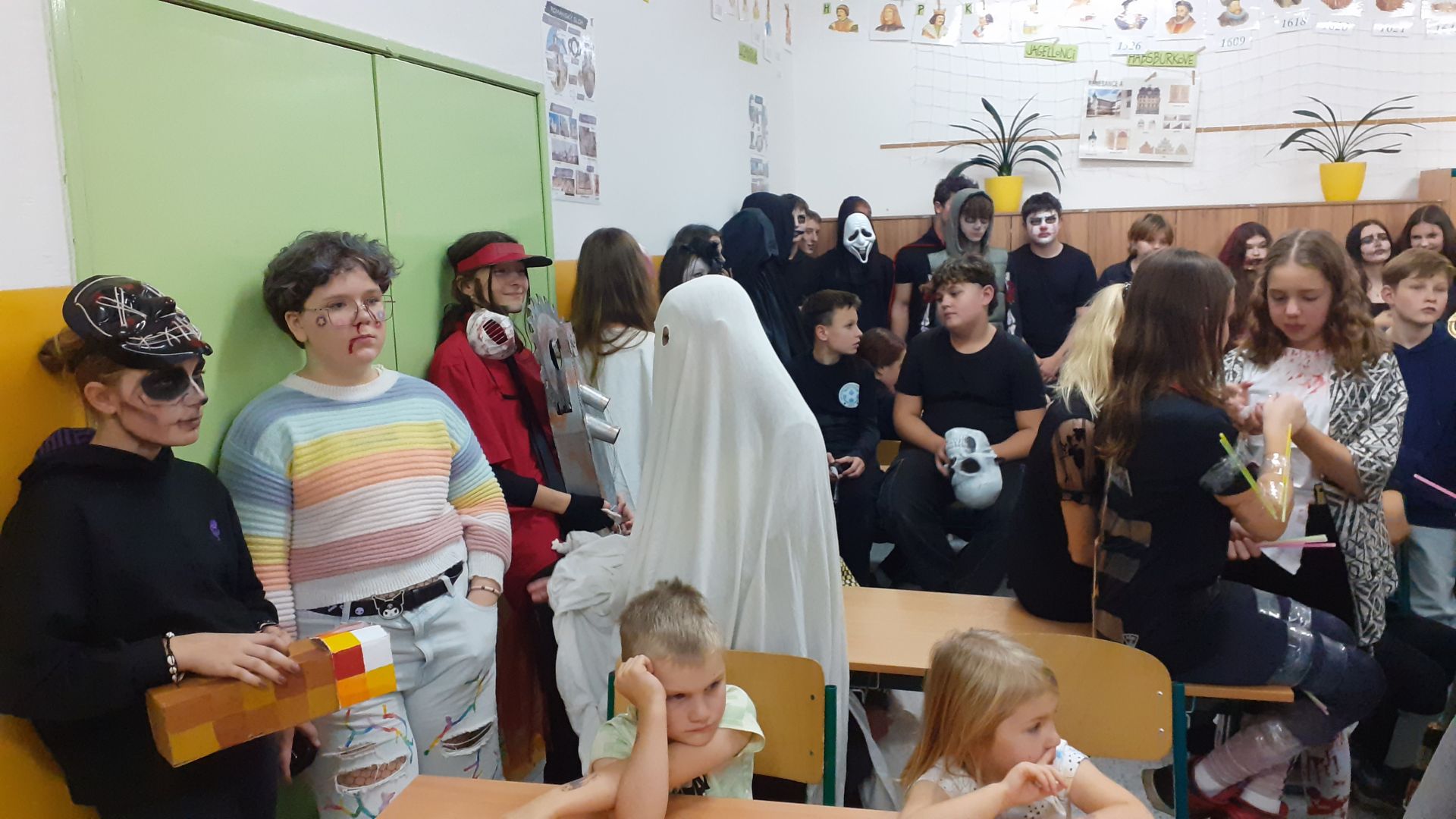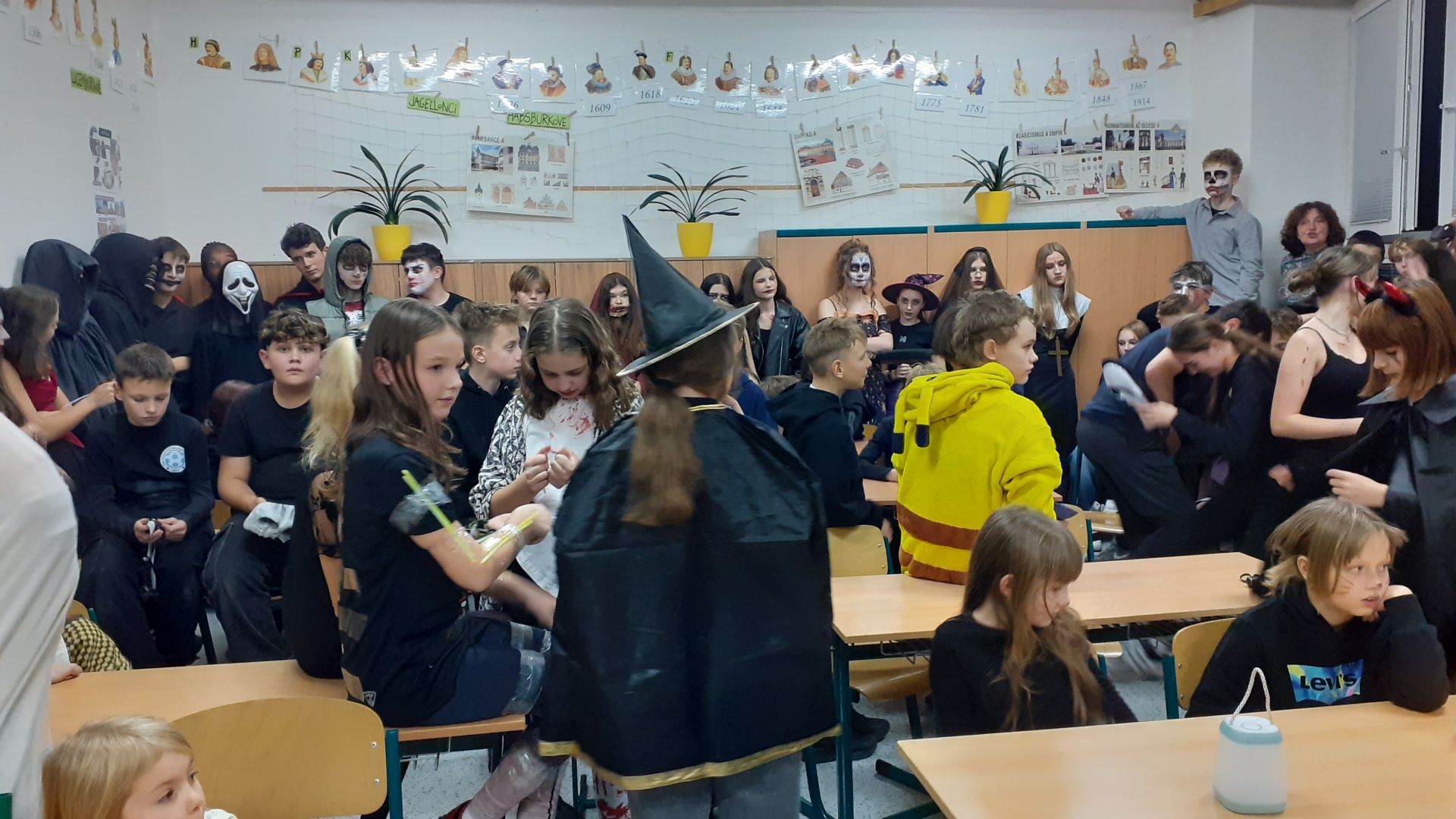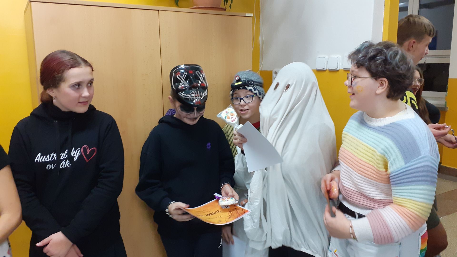 Ve čtvrtek 6. listopadu se naše škola proměnila v místo, kam by se po setmění odvážil jen opravdový hrdina. Z chodeb se ozývalo temné hučení, zpoza dveří se linul děsivý smích a z každého kouta číhalo něco, nebo někdo, kdo rozhodně nepatřil mezi běžné žáky. Kostlivci, čarodějnice, upíři, děsiví klauni i další bytosti ze záhrobí obsadili naši školu a proměnili ji v strašidelný palác plný pavučin, blikajících luceren a tajemného podzemí. Do této halloweenské výpravy se s odvahou pustili naši šesťáci. Čekala je strašidelná stezka, na které museli překonávat různé nástrahy a plnit úkoly, které pro ně připravili zkušení „strašidelnicí“ z devátého ročníku. Kdo vše zvládl, mohl si na konci oddechnout, pyšně převzít památeční odznak a samozřejmě si pochutnat na zasloužených sladkostech. Atmosféra byla dokonalá, strašidelná tak akorát a přitom plná smíchu, nadšení i odvahy. Na Videčské se zkrátka Halloween povedl na jedničku.