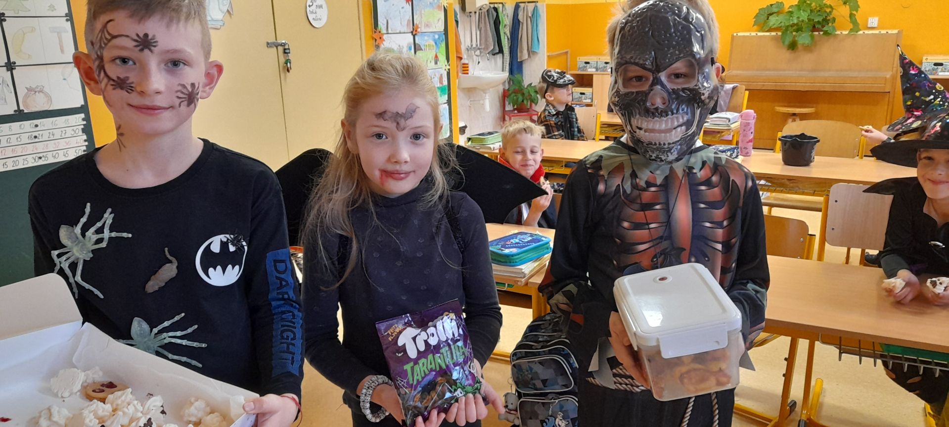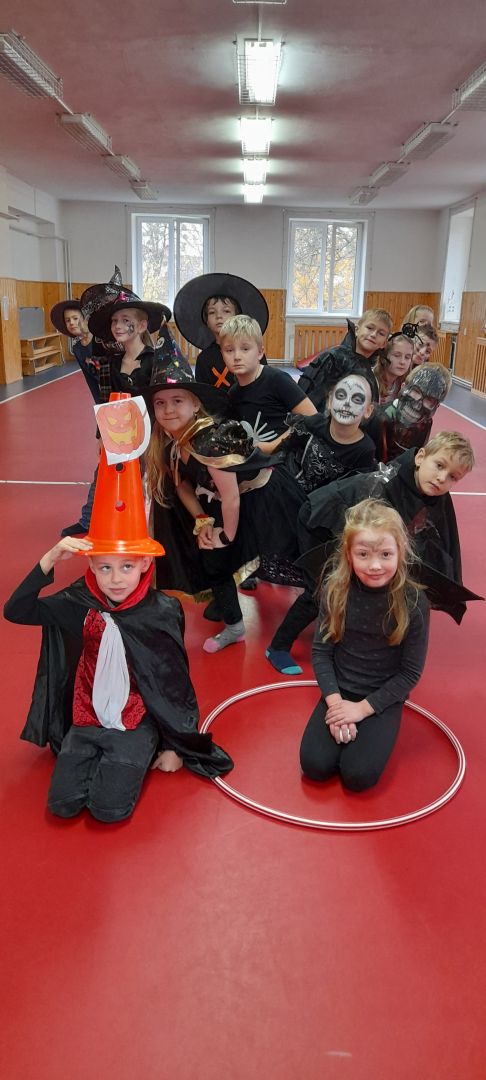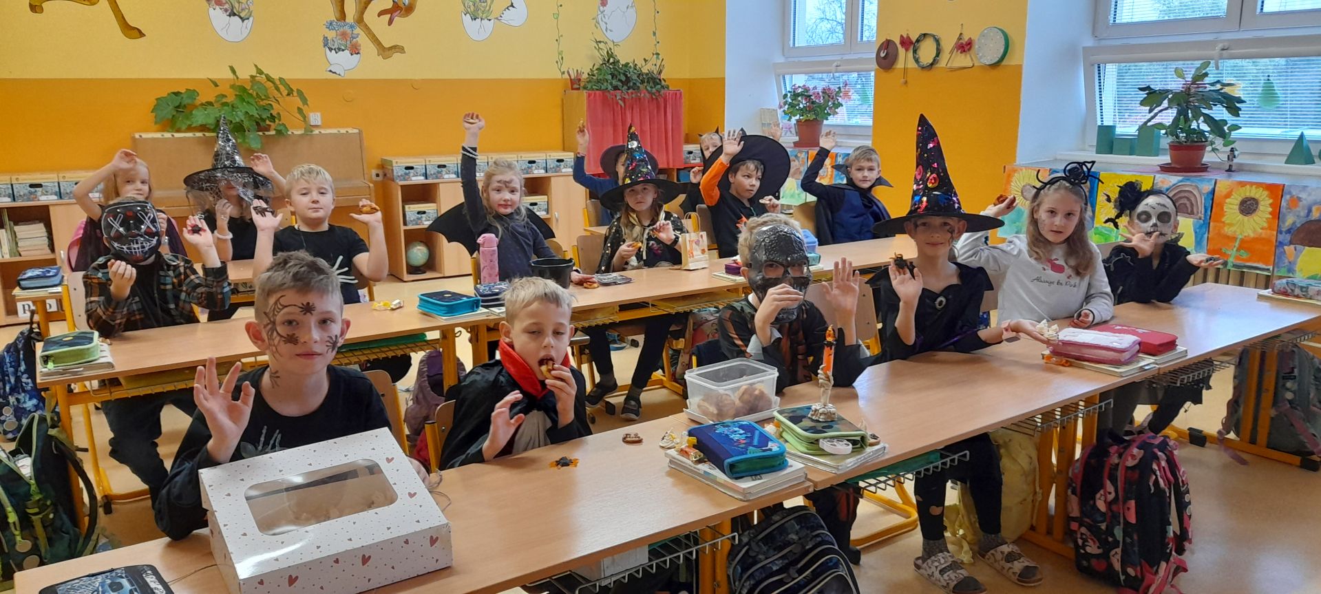 Ve čtvrtek 31.10.2024 měly děti z 2.B netradiční vyučování. Všechny byly oblečeny v halloweenských kostýmech a celé vyučování se neslo v tomto duchu. V českém jazyce se ve větách objevovala strašidla a kostlivci, v matematických úlohách se zase počítaly kapky krve nebo netopýři. Dokonce ani tělocvik nevybočil z tématu. Létalo se na koštěti, trefovalo do dýně či do klobouku, hrála se metaná s upíří hlavou.