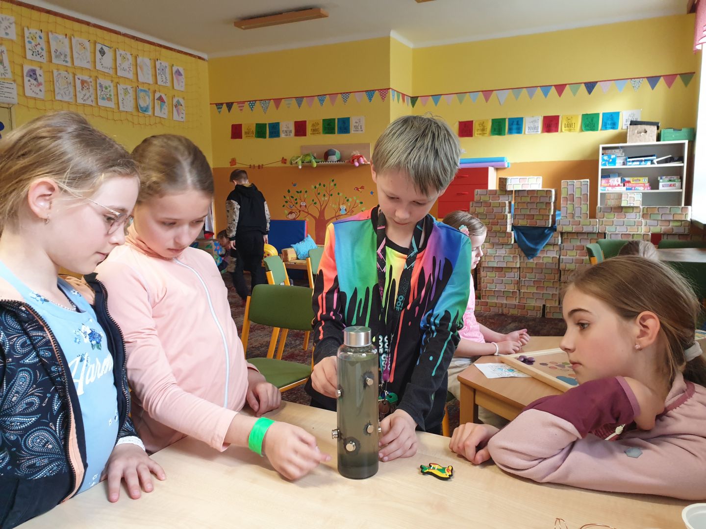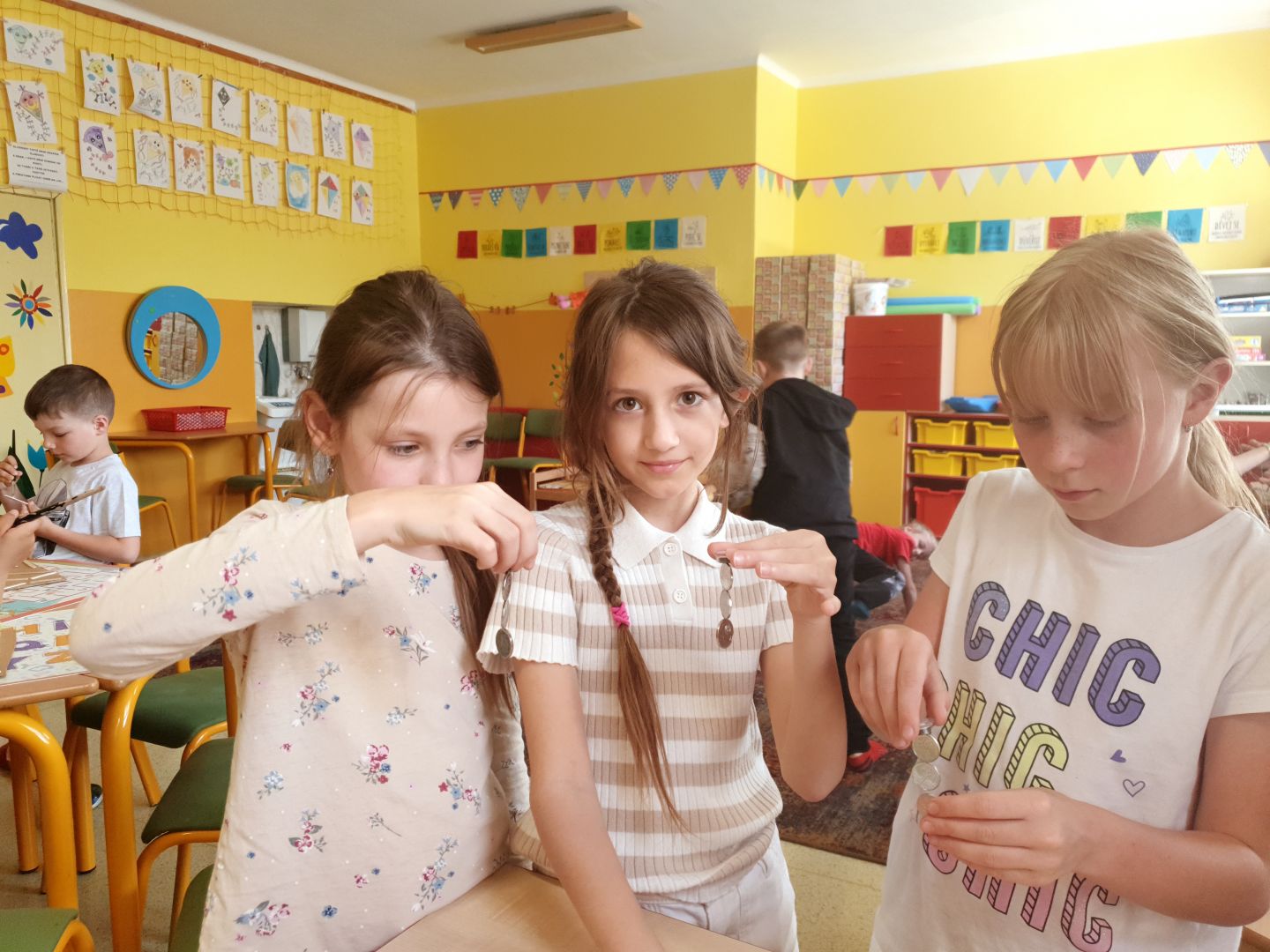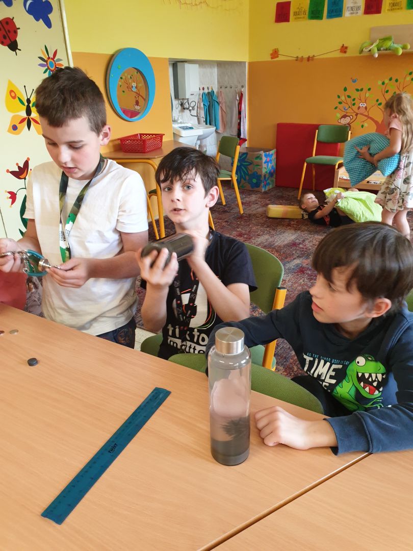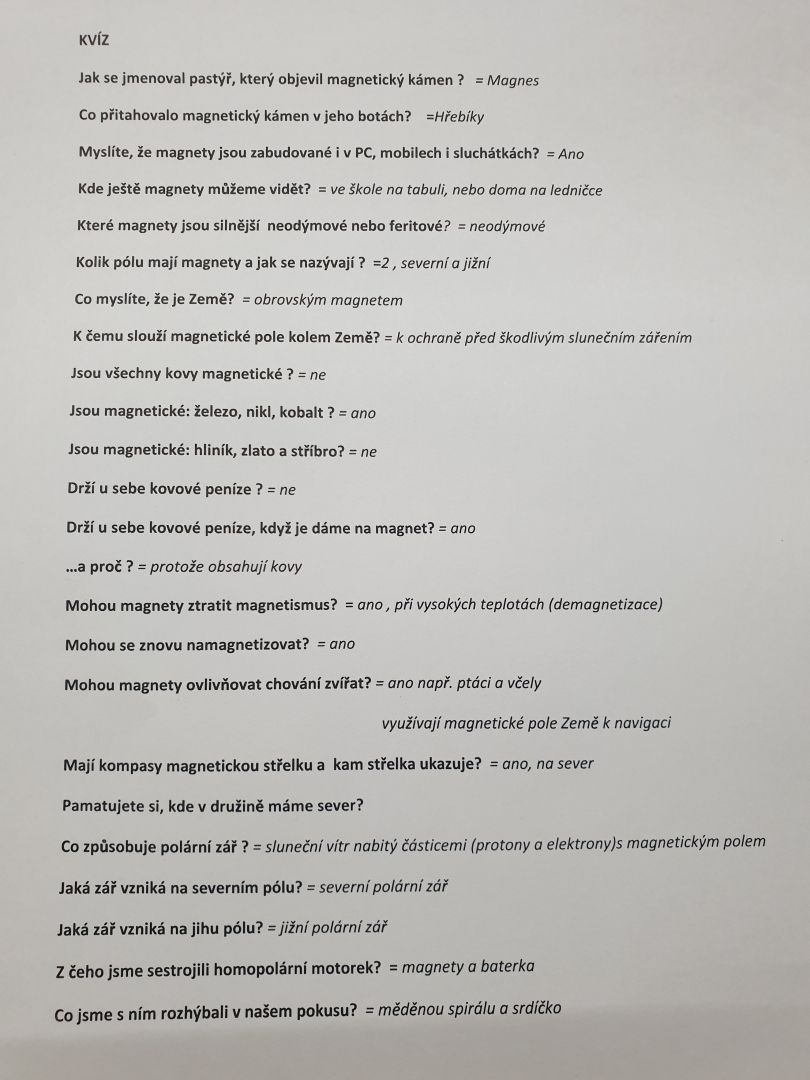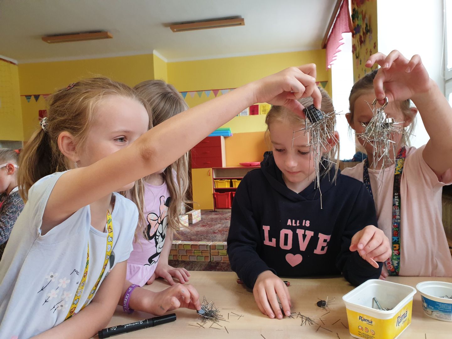Celý týden jsme si ve školní družině povídali o magnetech. Děti si vyslechly zajímavý příběh o objevení magnetu a dozvěděly se mnoho zajímavostí. Zjistily, jaký rozdíl je mezi neodýmovými a feritovými magnety, jak vzniká polární záře nebo na jakém principu funguje kompas, před čím nás chrání magnetické pole a že naše planeta Země je jeden obrovský magnet. Děti si vyrobily magnetické bludiště. Nechyběly ani zábavné pokusy s magnety a kontrolní kvíz na závěr programu. Z výsledků testu bylo vidět, že děti téma zaujalo a bylo pro ně přínosné.