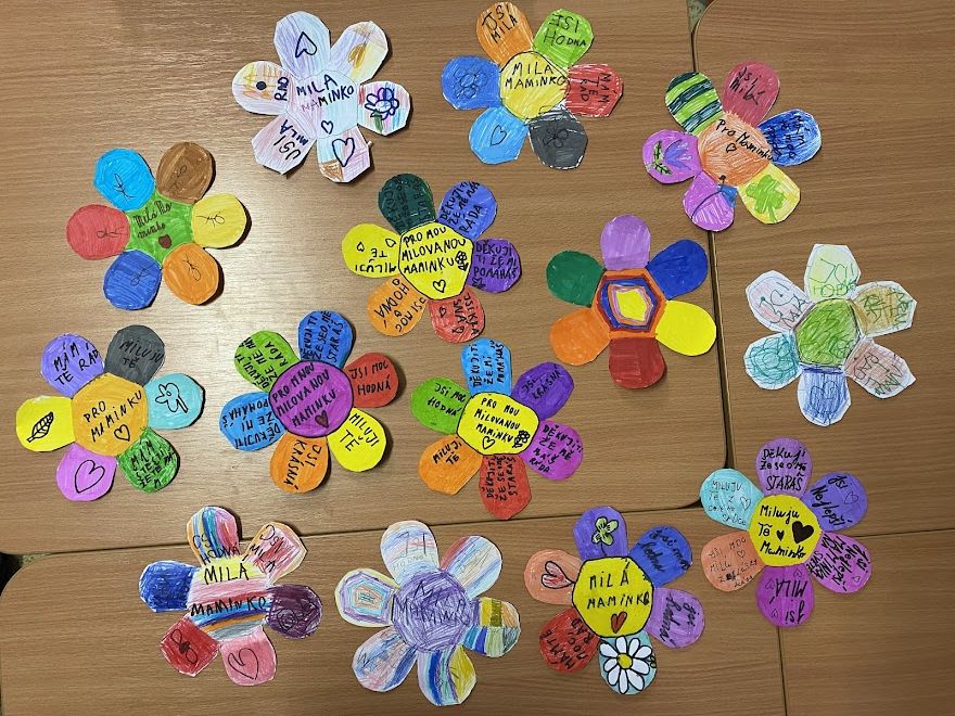 V květnu jsme se věnovali Mezinárodnímu dni matek. Děti pro maminky vyráběly přánička, kytičky a vázičky. Také si užily poznávací stezku "Maminky zvířátek".