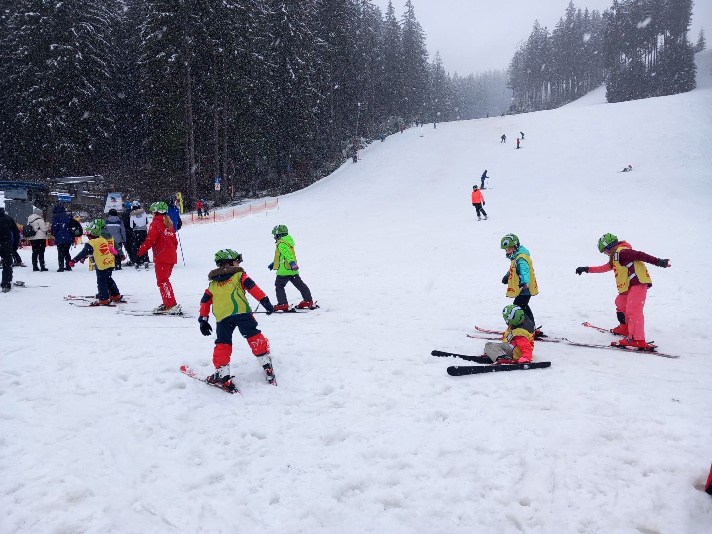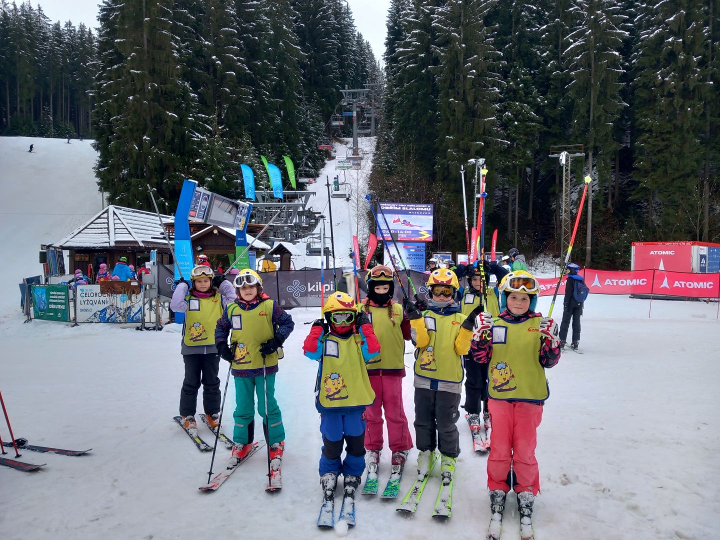 V pondělí 16. ledna po obědě vyrazily děti z 1.A, 2.A, 2.B, 3.A, 4.A a 4.B na lyžařský kurz na Bílou. Nejdříve instruktoři rozdělili děti do čtyř skupin na Holoubky, Včelky, Piraně a SpongeBoby. Pak následovala rozcvička a po ní už mohli všichni vyrazit na svah. Děti byly moc šikovné a dařilo se jim. Své pokroky předvedly v pátek na závodech za podpory a potlesku svých rodičů. Na závěrečném ceremoniálu se s dětmi rozloučili instruktoři a Sluníčko s Brumíkem. Za rok AHOJ!!!
