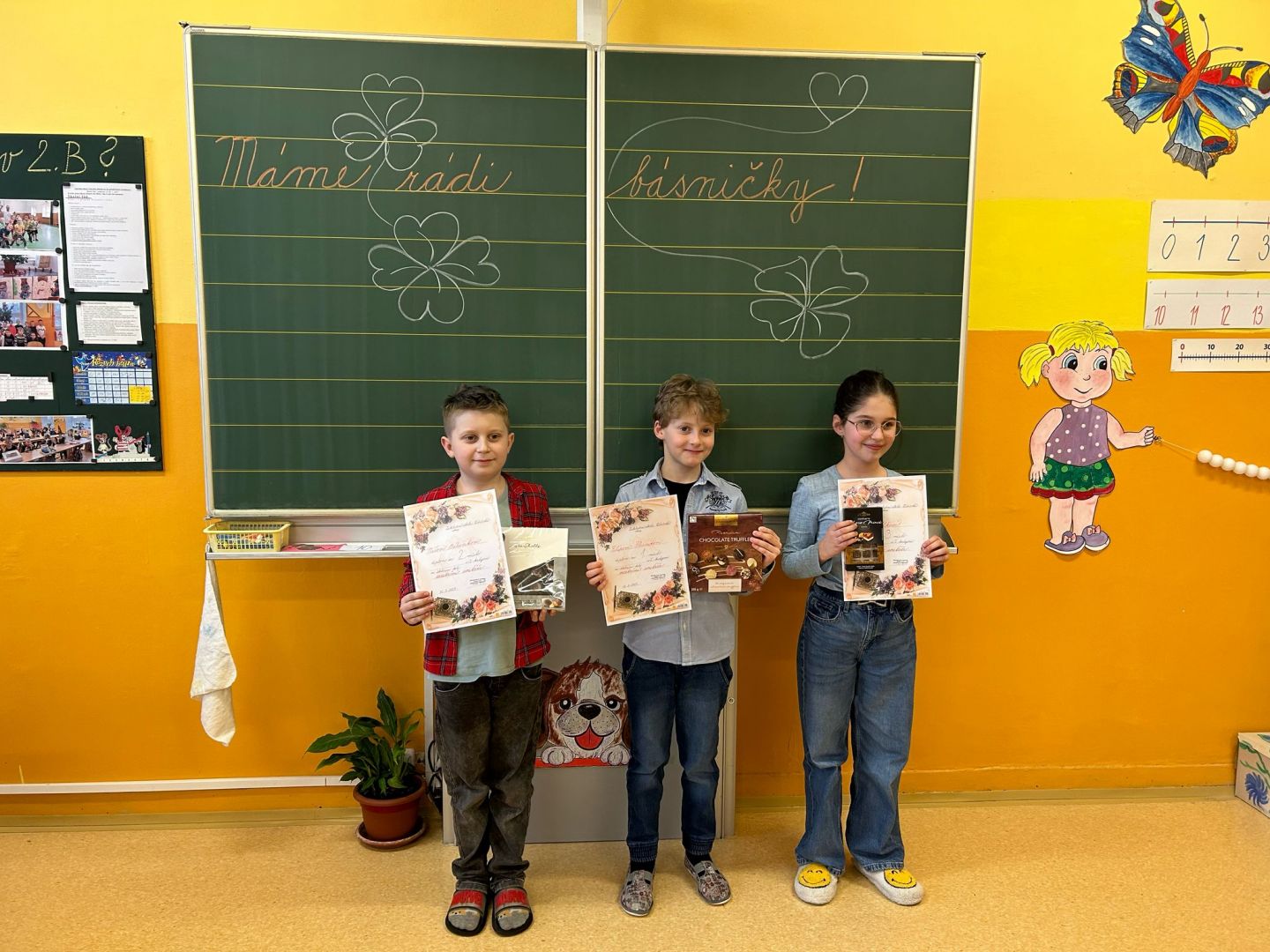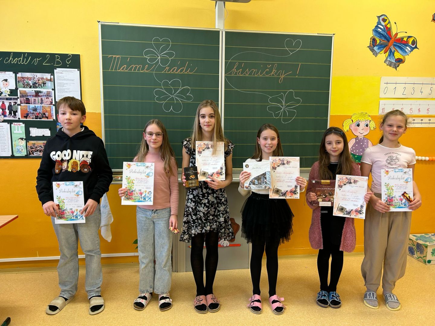 Ve středu 12.2.2025 se na 1.stupni uskutečnilo školní kolo recitační soutěže. Děti soutěžily ve třech věkových kategoriích a přes vysokou nemocnost ve třídách se jich zúčastnilo téměř třicet!