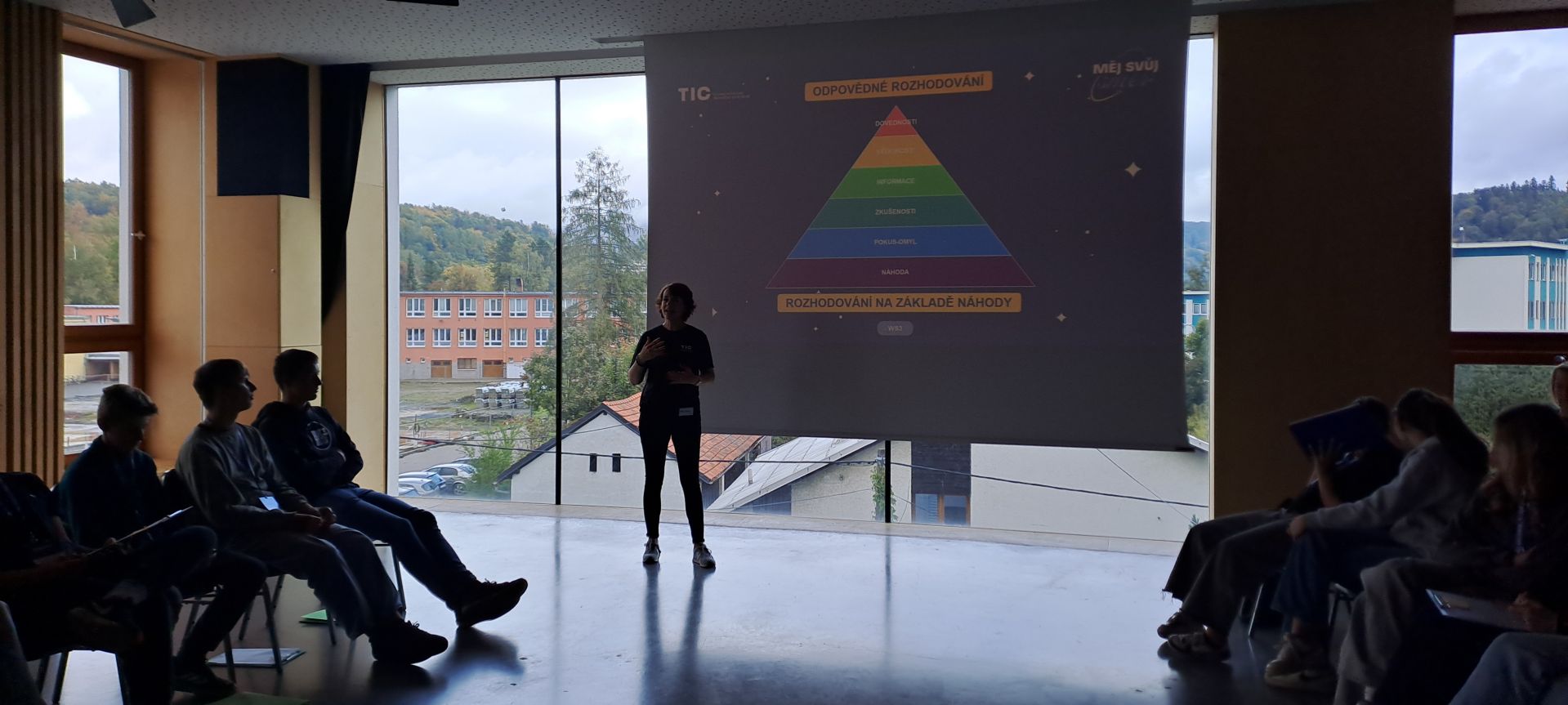 V pátek 10. října se třída 9. A zúčastnila projektového dne Měj svůj směr, zaměřeného na kariérové směřování žáků. Tímto komplexním kurzem žáky provázeli zkušení lektoři z Technologického inovačního centra, což je společná organizace Zlínského kraje a Univerzity Tomáše Bati.