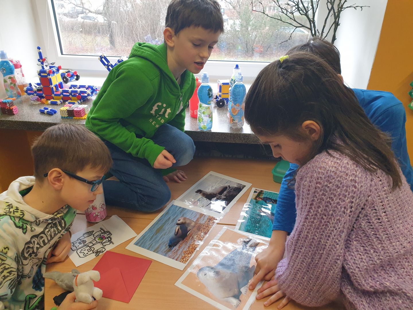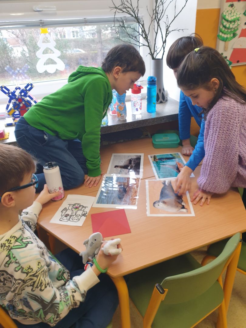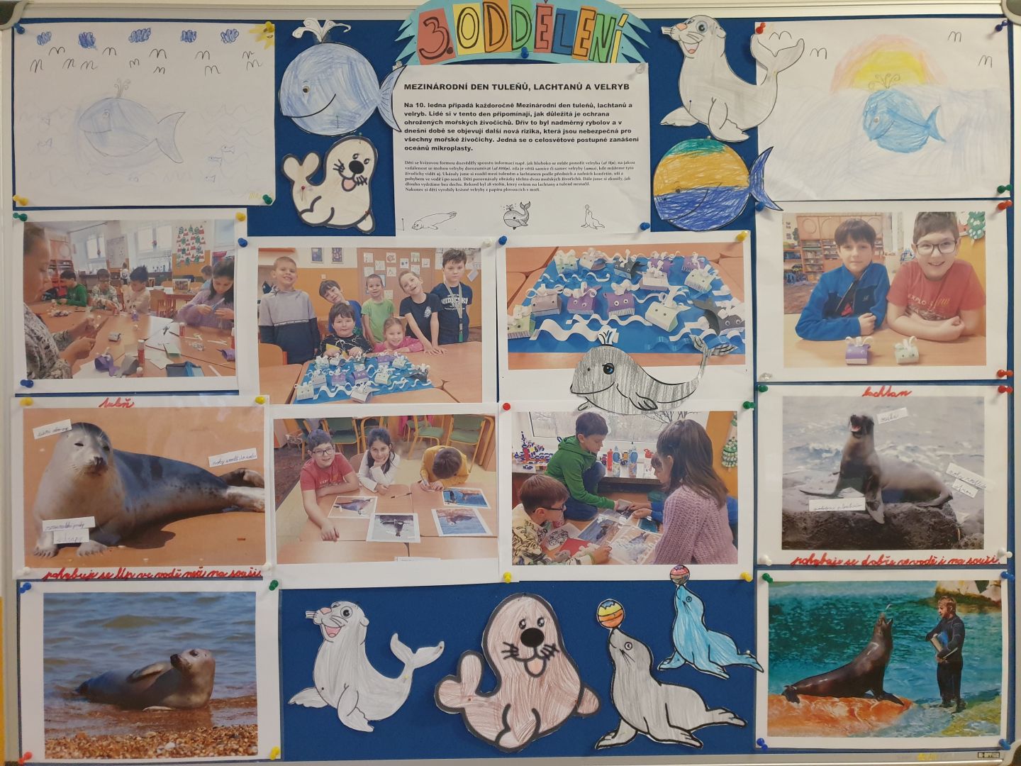 Na 10.ledna připadá každoročně Mezinárodní den tuleňů, lachtanů a velryb. Děti se dozvěděly pomocí kvízu plno zajímavostí ze života těchto tvorů, např. jak hluboko se může ponořit velryba, na jakou vzdálenost se mohou velryby dorozumívat, kde můžeme tyto mořské živočichy vidět aj. Děti porovnávaly obrázky a rozpoznávaly rozdíl mezi tuleněm a lachtanem podle končetin a uší. Zkusily si jak dlouho by vydržely bez dechu pod vodou. Rekord byl 28 vteřin, který ovšem na lachtany a tuleně nestačil. Nakonec si děti vytvořily krásné velryby z papíru.