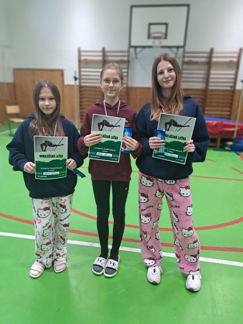V pátek 5. 12. 2025 se uskutečnil první ročník Mikulášské laťky – závodu ve skoku vysokém pro žáky 2. stupně. Soutěžilo se ve čtyřech kategoriích: mladší žákyně, mladší žáci, starší žákyně a starší žáci.
