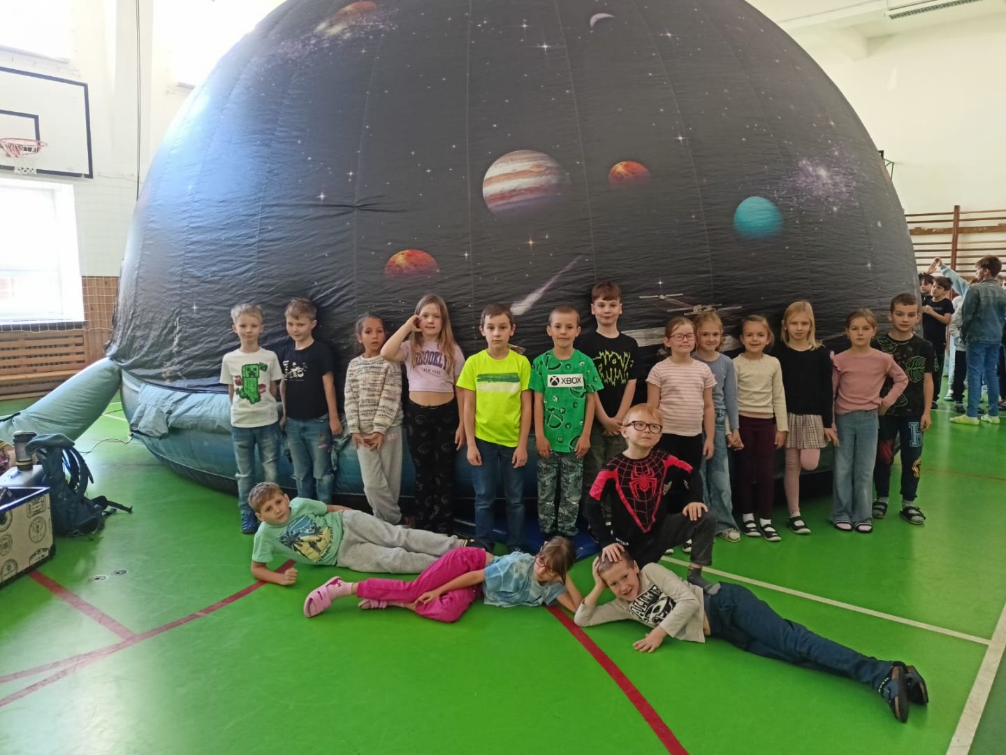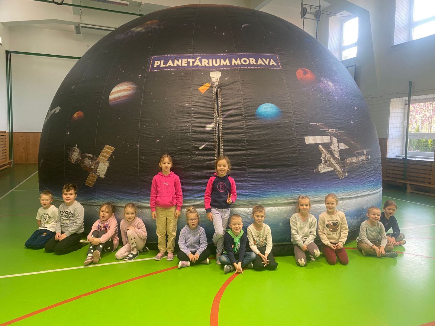 Ve středu 5.11. a ve čtvrtek 6.11. se naše škola na chvíli ocitla ve vesmíru díky mobilnímu Planetáriu Morava, které ve velké promítací kopuli poskytlo dětem z 1.stupně unikátní zážitek z poutavého promítání naučných filmů a pohádek o vesmíru.