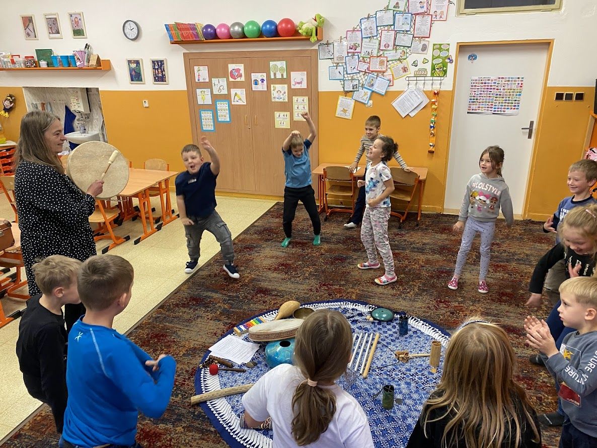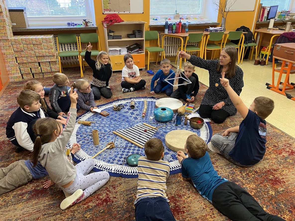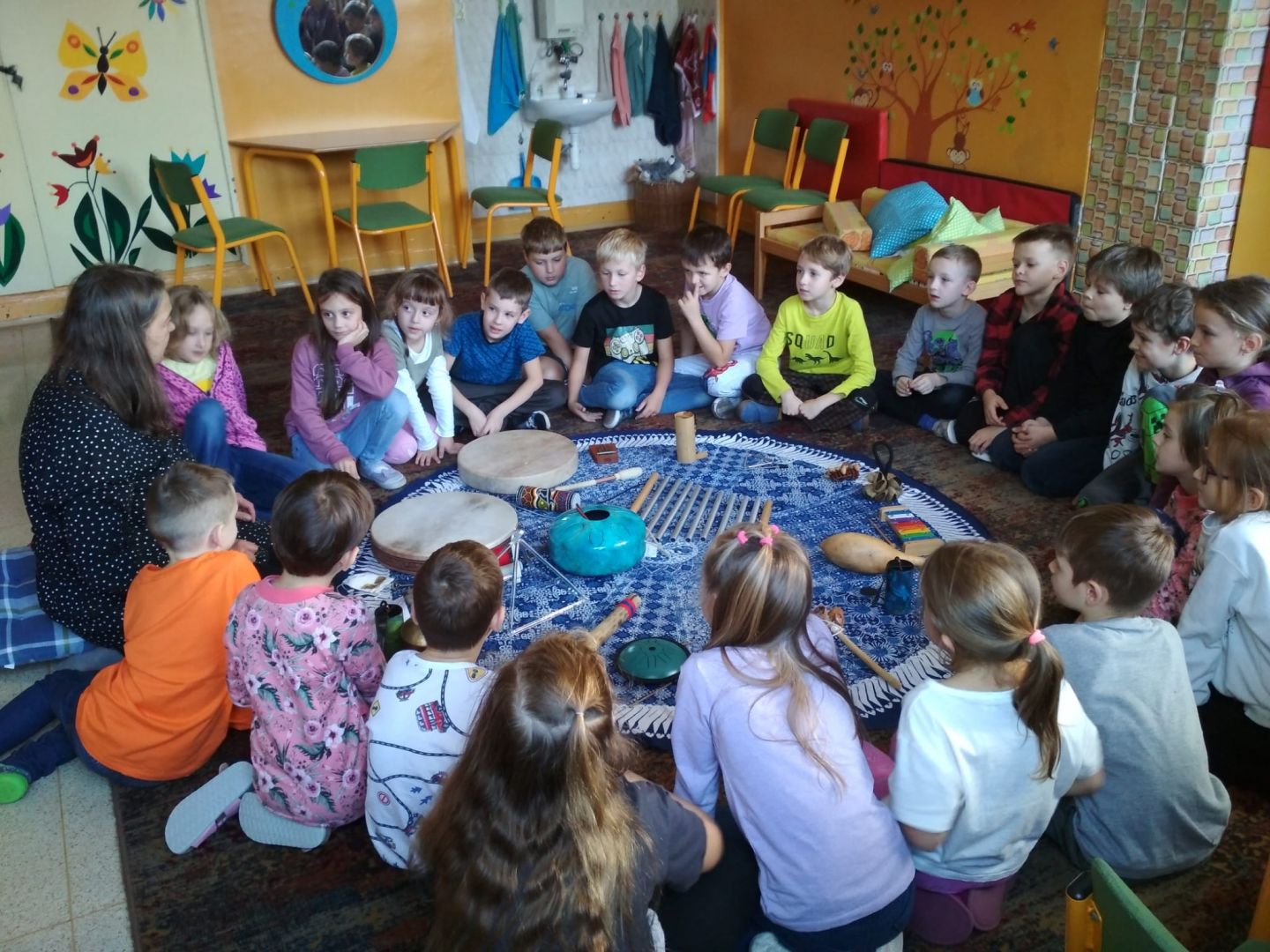 Děti se s nimi seznámily a aktivně si na ně zahrály. Vyzkoušely si například různé druhy bubnů (šamanský, mořský, hromový a různé kovové), dešťovou hůl, rozmanitá chrastítka z přírodnin, kalimbu nebo zvonkohry.