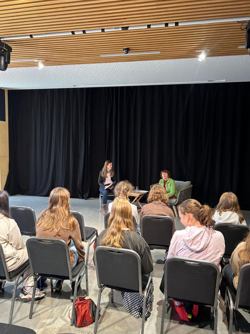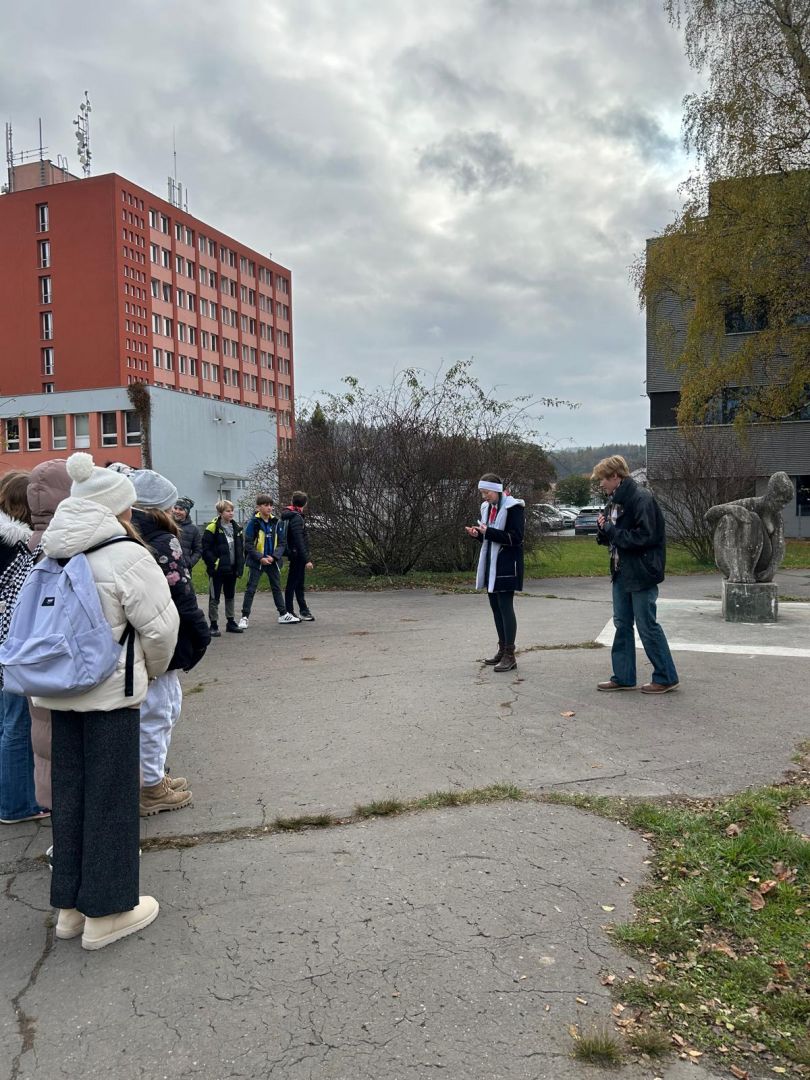 Ve čtvrtek 14. 11. se 7.B zúčastnila Sametové revoluce. Agentura ANKS ve spolupráci s Městskou knihovnou a Téčkem připravila pro školy prožitkový program, který nás přenesl do událostí před 35 lety. Co jsme viděli a zažili? Dramatické čtení Daniela Stibora v knihovně, film „Chceme dýchat“ na Vrátnici, vyprávění paní Mikuláškové, aktivní revolucionářky z roku 1989. S paní Langerovou, která nás provázela jsme se zastavili u plakátů s dobovými hesly a byli jsme svědky zatčení veksláka, který prodával studentce tuzexové bony. Díky programu si dokážeme trochu lépe představit tehdejší atmosféru.