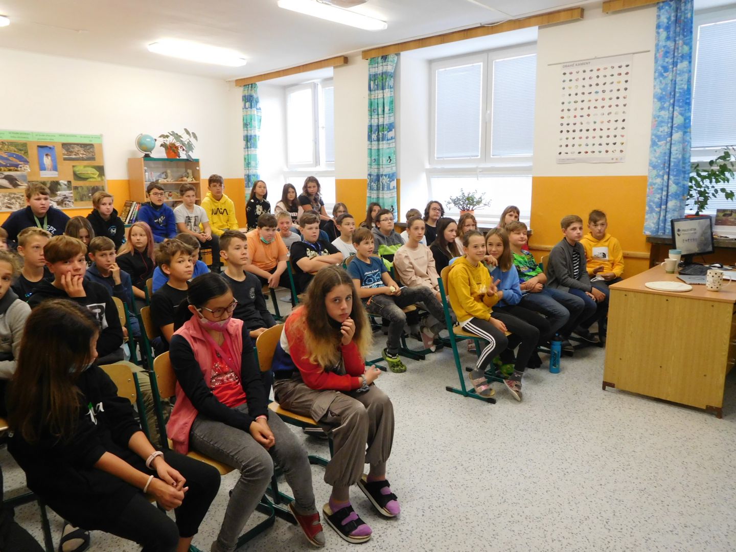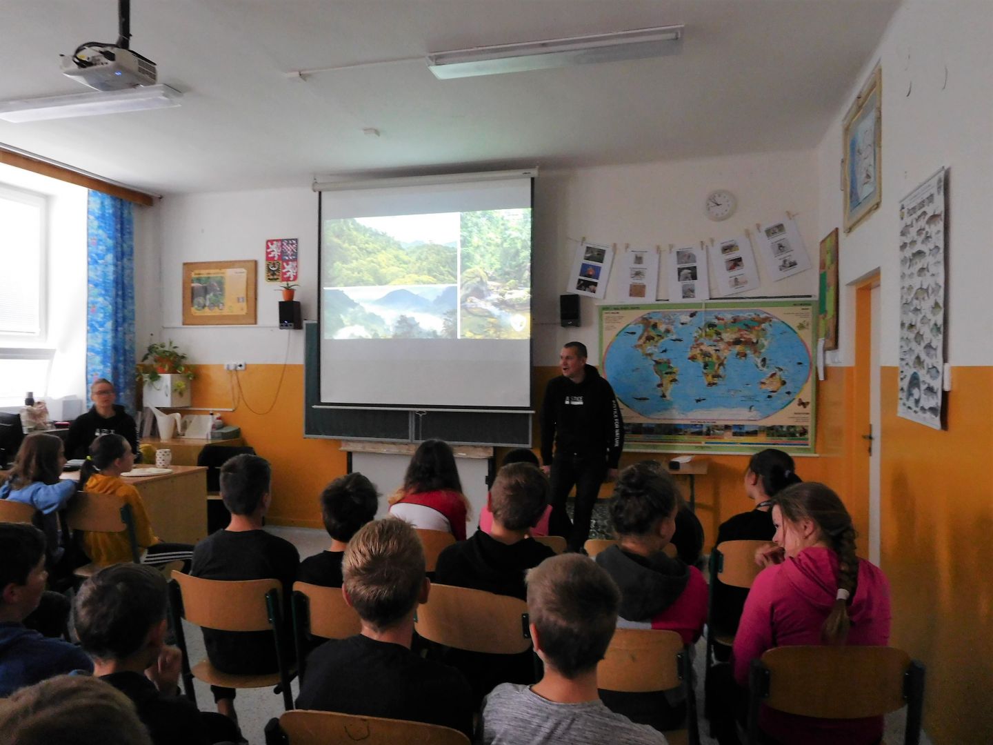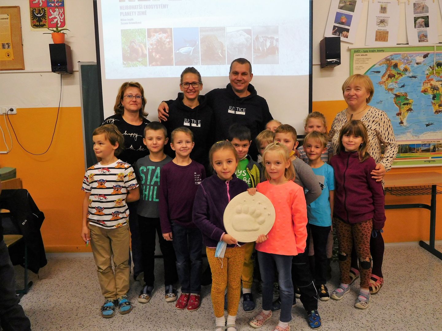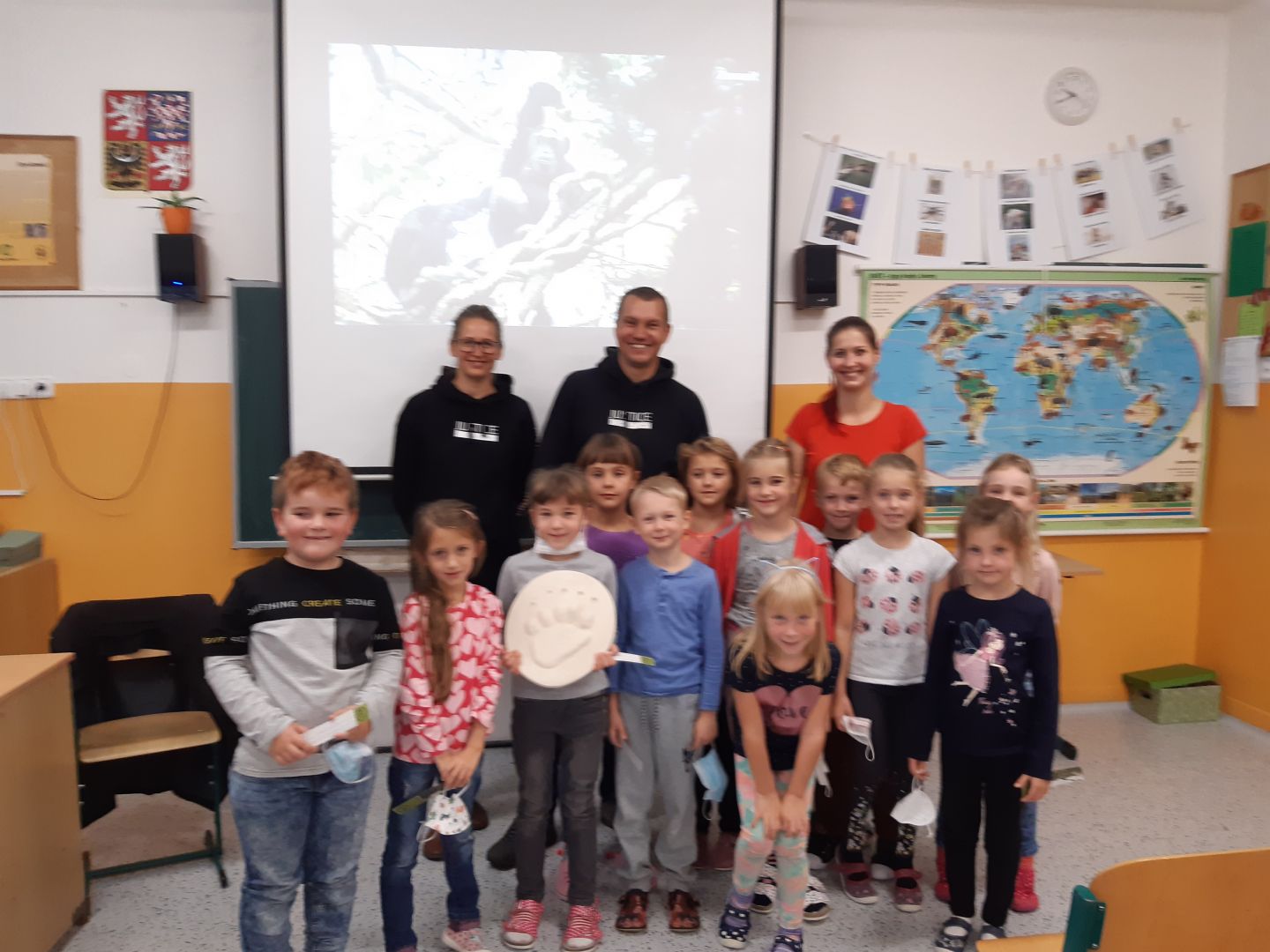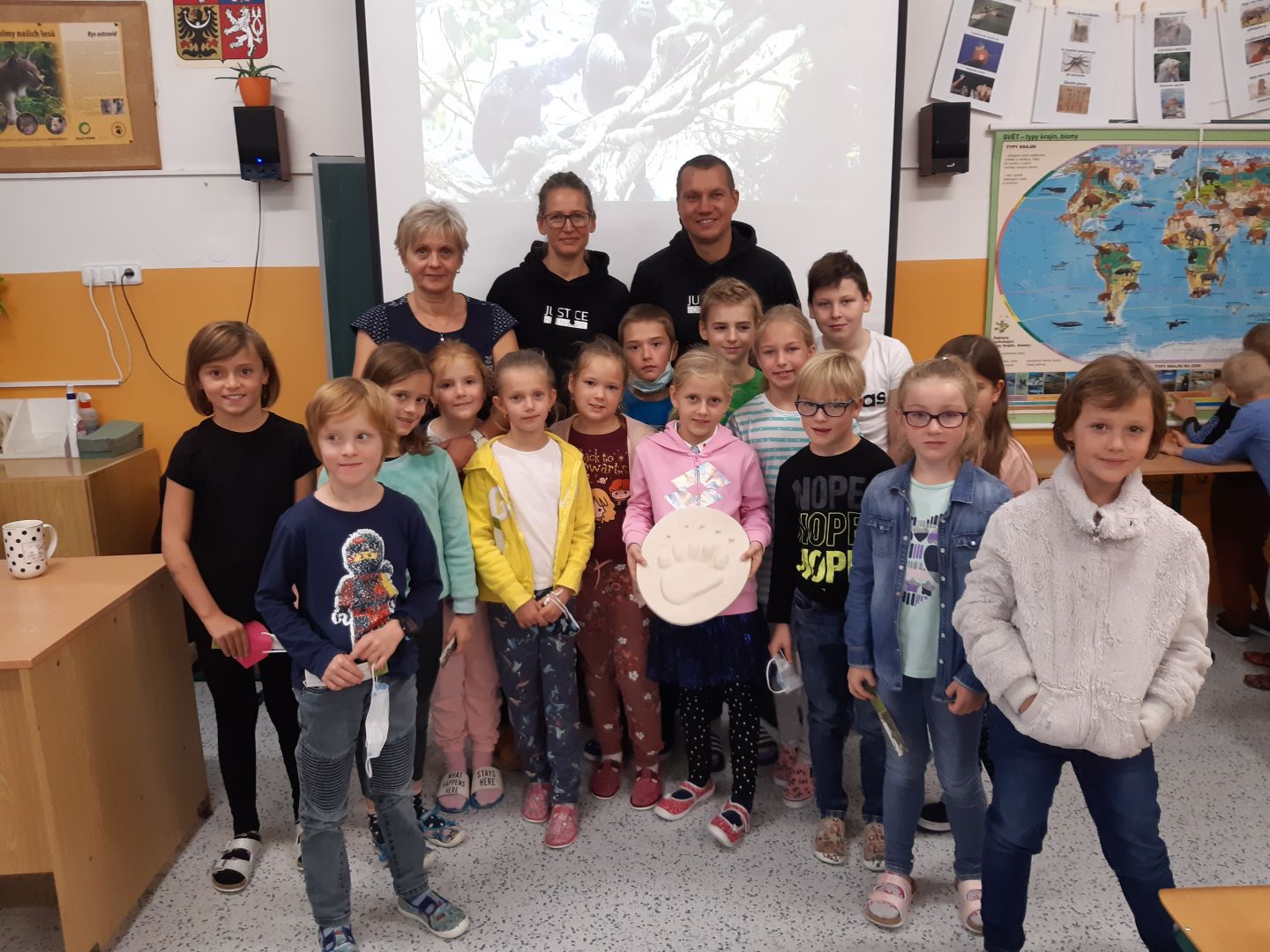 Po dvouleté přestávce k nám do školy opět dorazili naši kamarádi Zuzka Koloušková a Milan Jeglík ze spolku Prales dětem, jehož hlavní náplní je ochrana světového přírodního dědictví na mezinárodní úrovni, podpora protipytláckých aktivit, vykupování deštného pralesa, vzdělávání a světový monitoring zvířat za účelem jejich ochrany a tvorby vzdělávacích programů pro děti na pěti kontinentech. Děti se seznámily s novými aktivitami spolku, především s programem Oko Země, který zahrnuje monitoring divokých zvířat na Sumatře, Slovensku, v Demokratické republice Kongo a na Kostarice. Besedy byly jak vždy velmi zajímavé, všem se moc líbily a zároveň byly velkým podnětem k zamyšlení. Jak dárek jsme dostali odlitek tlapy medvěda hnědého ze Slovenska.