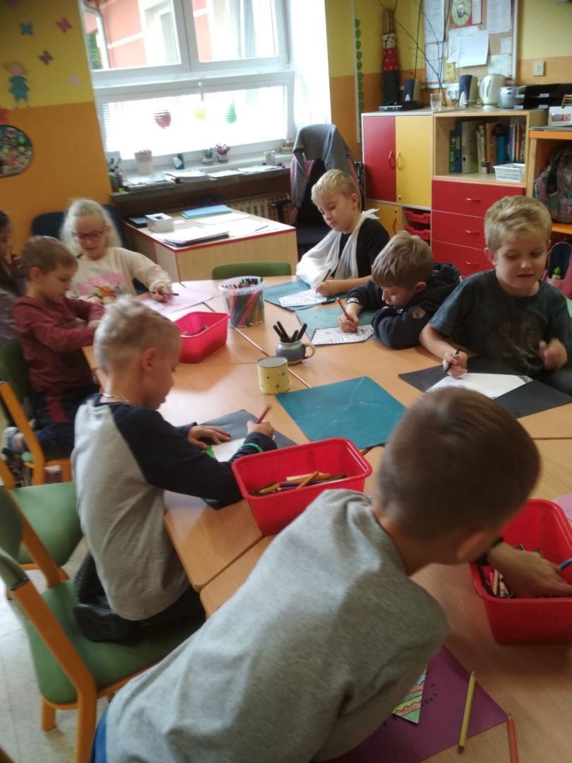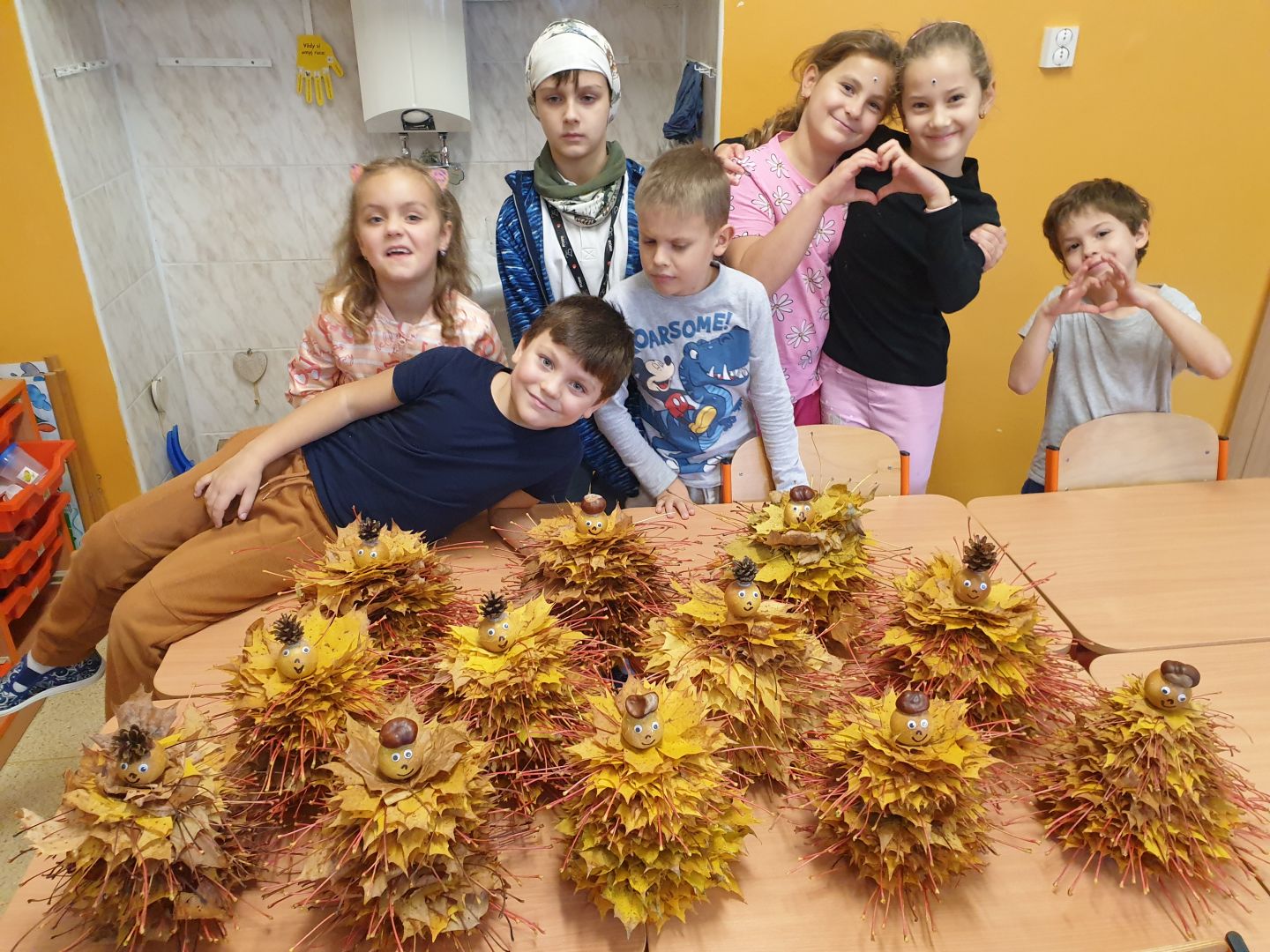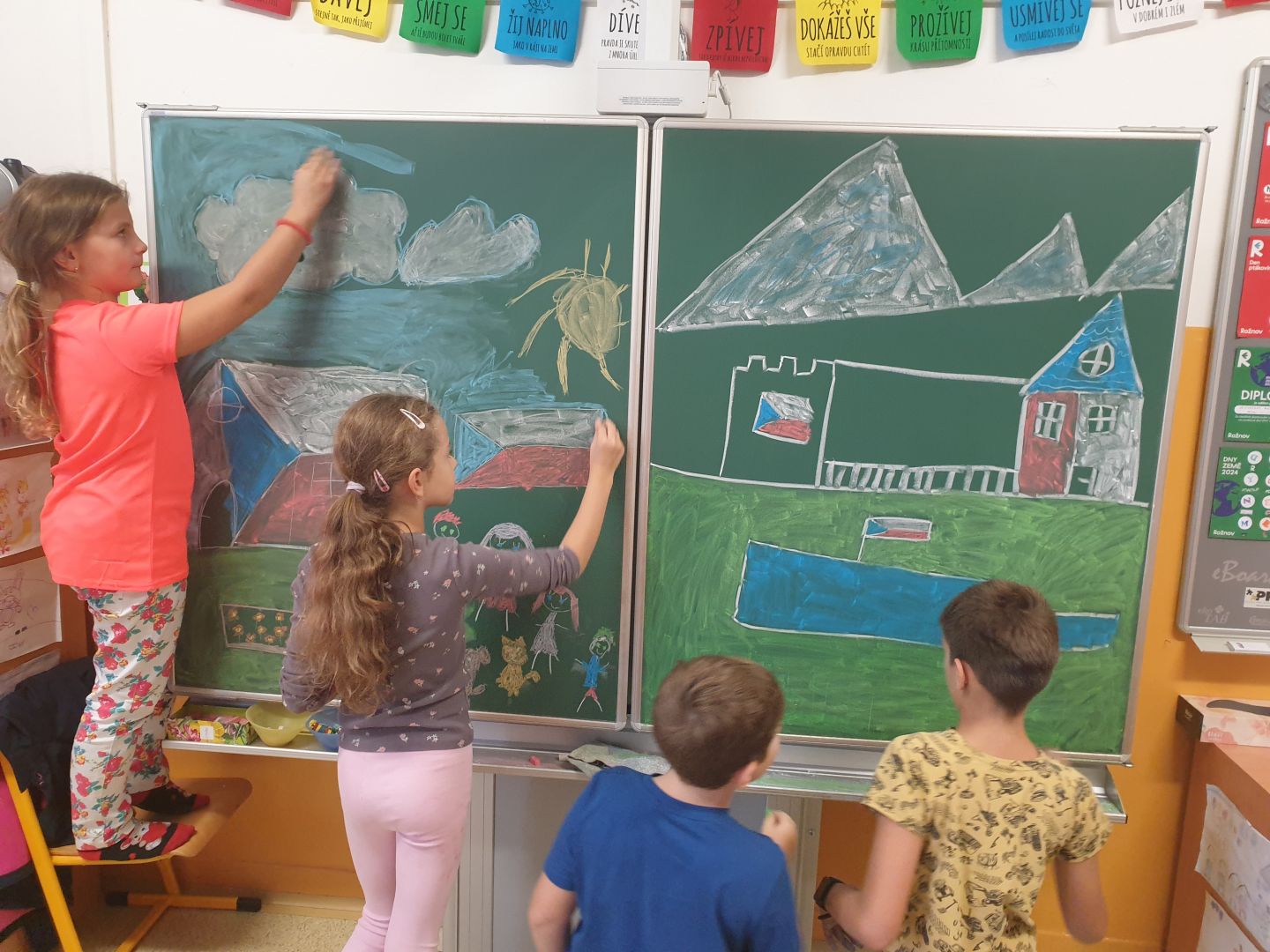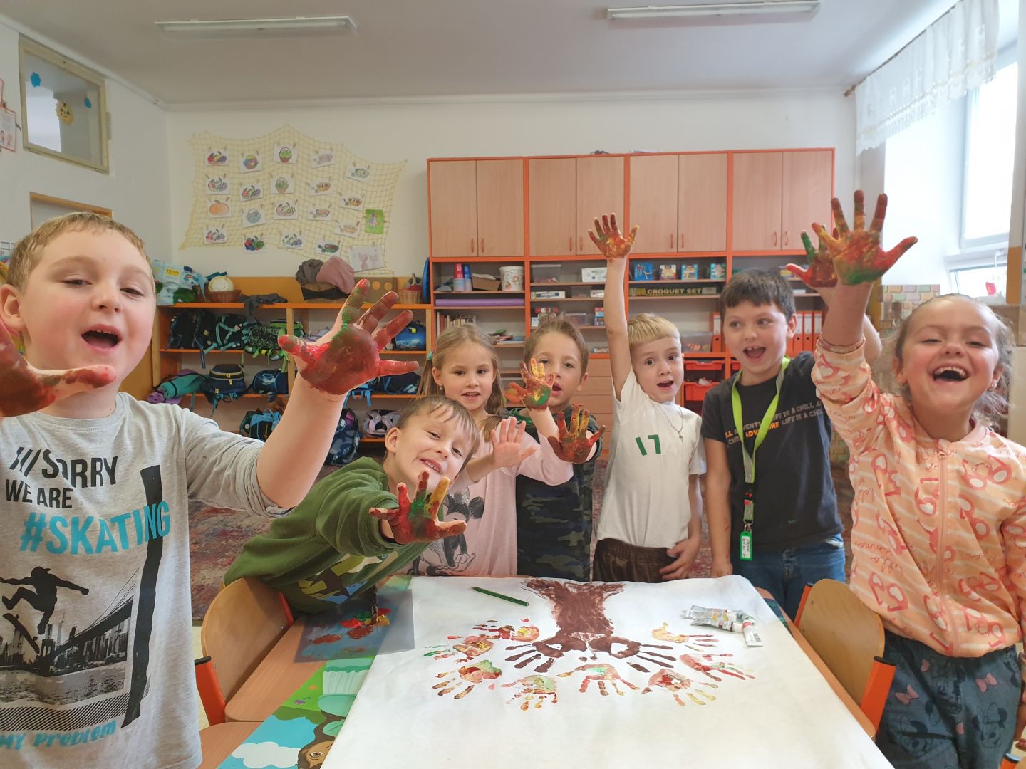 Měsíc říjen byl pro děti ve školní družině hodně aktivní. Letošní krásné babí léto bylo ve ŠD spojeno s častým pobytem venku. I přesto nám zbylo času na tvoření v podzimním duchu. Děti I. a II. oddělení ŠD se zabývaly vytvářením krásně barevných a veselých draků a děti III. oddělení vyráběly individuálně i ve skupinách podzimní skřítky a podzimní dekoraci. Za připomenutí stojí i mezinárodní den bílé hole. Děti si mohly ve školní družině vyzkoušet, jak to mají nevidomí náročné a jaké jiné smysly, krom zraku mohou používat. Den stromů děti ztvárnily kresbou nebo otisky rukou a taky četbou z knihy "Slyšíš jak stromy mluví". Nechybělo ani vytváření z plastových vršků nebo skládání z kostek či lega. A na závěr měsíce také připomenutí významného výročí vzniku samostatného československého státu.