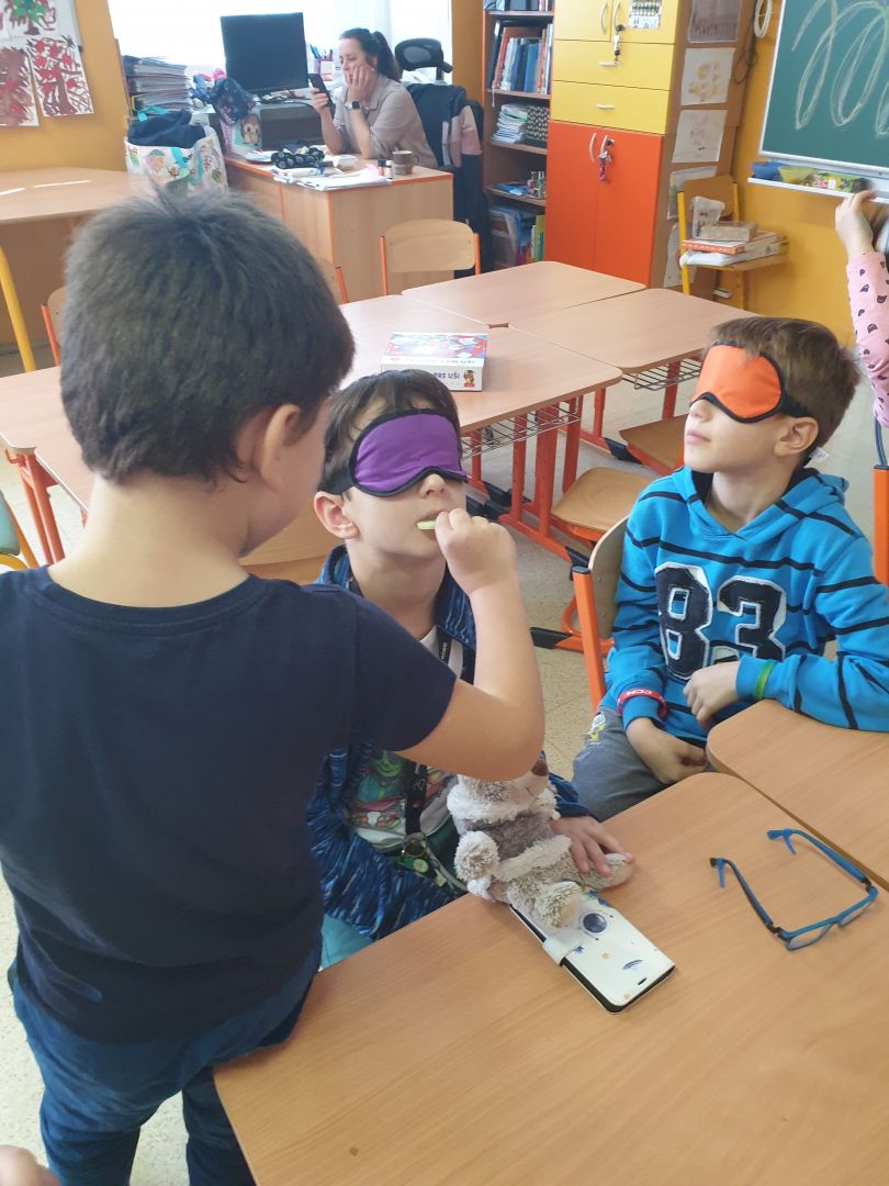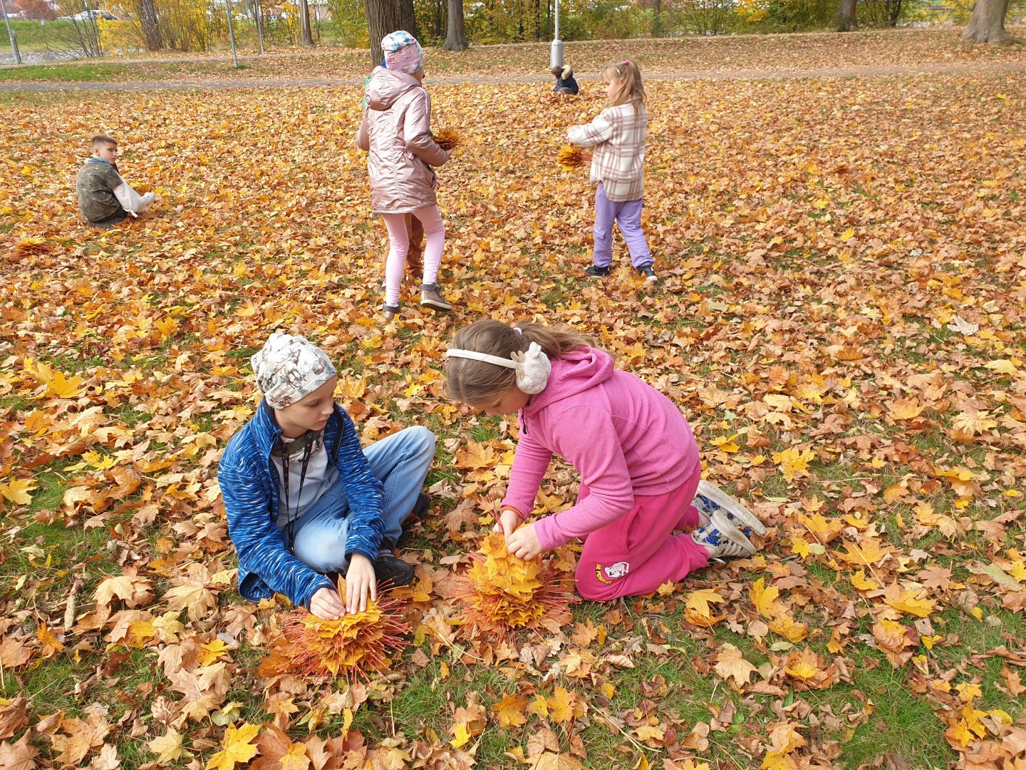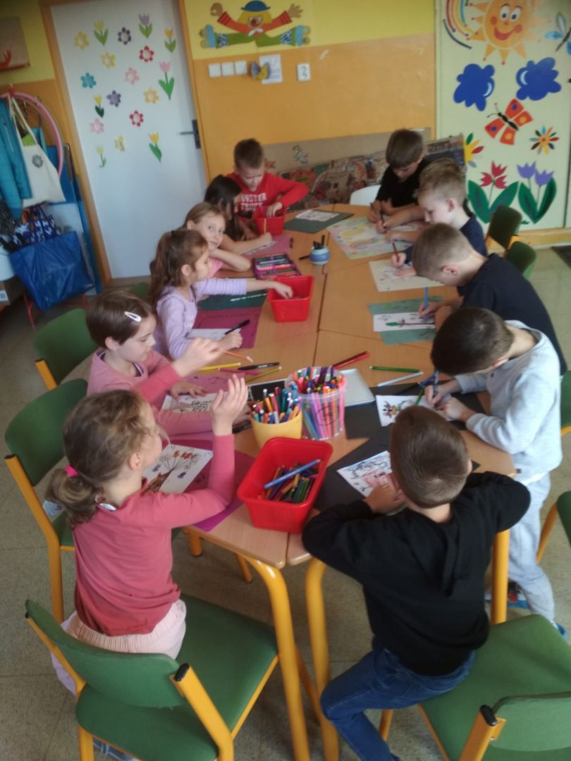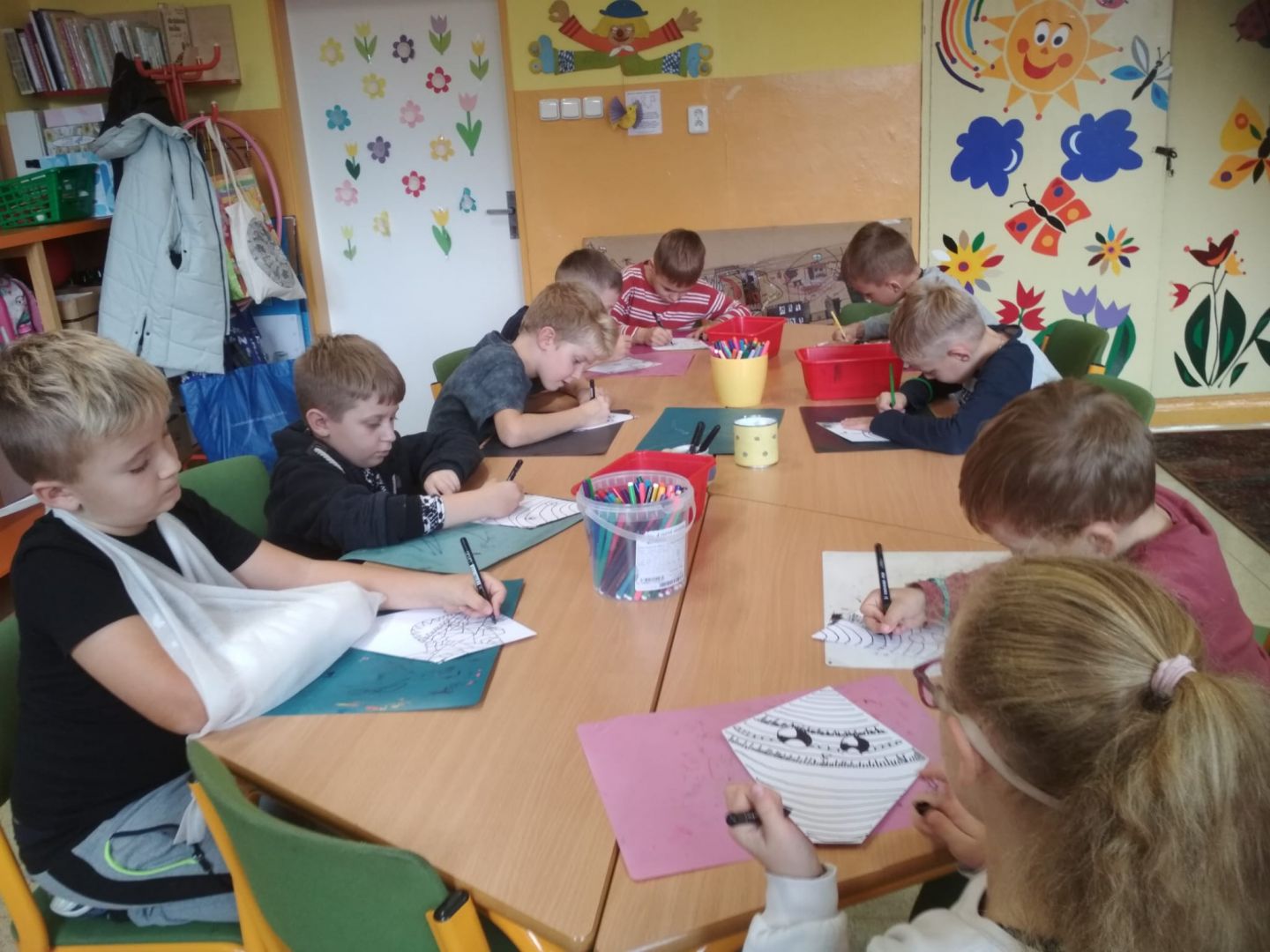 Měsíc říjen byl pro děti ve školní družině hodně aktivní. Letošní krásné babí léto bylo ve ŠD spojeno s častým pobytem venku. I přesto nám zbylo času na tvoření v podzimním duchu. Děti I. a II. oddělení ŠD se zabývaly vytvářením krásně barevných a veselých draků a děti III. oddělení vyráběly individuálně i ve skupinách podzimní skřítky a podzimní dekoraci. Za připomenutí stojí i mezinárodní den bílé hole. Děti si mohly ve školní družině vyzkoušet, jak to mají nevidomí náročné a jaké jiné smysly, krom zraku mohou používat. Den stromů děti ztvárnily kresbou nebo otisky rukou a taky četbou z knihy "Slyšíš jak stromy mluví". Nechybělo ani vytváření z plastových vršků nebo skládání z kostek či lega. A na závěr měsíce také připomenutí významného výročí vzniku samostatného československého státu.
