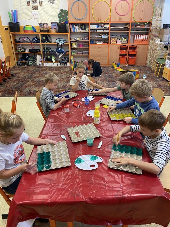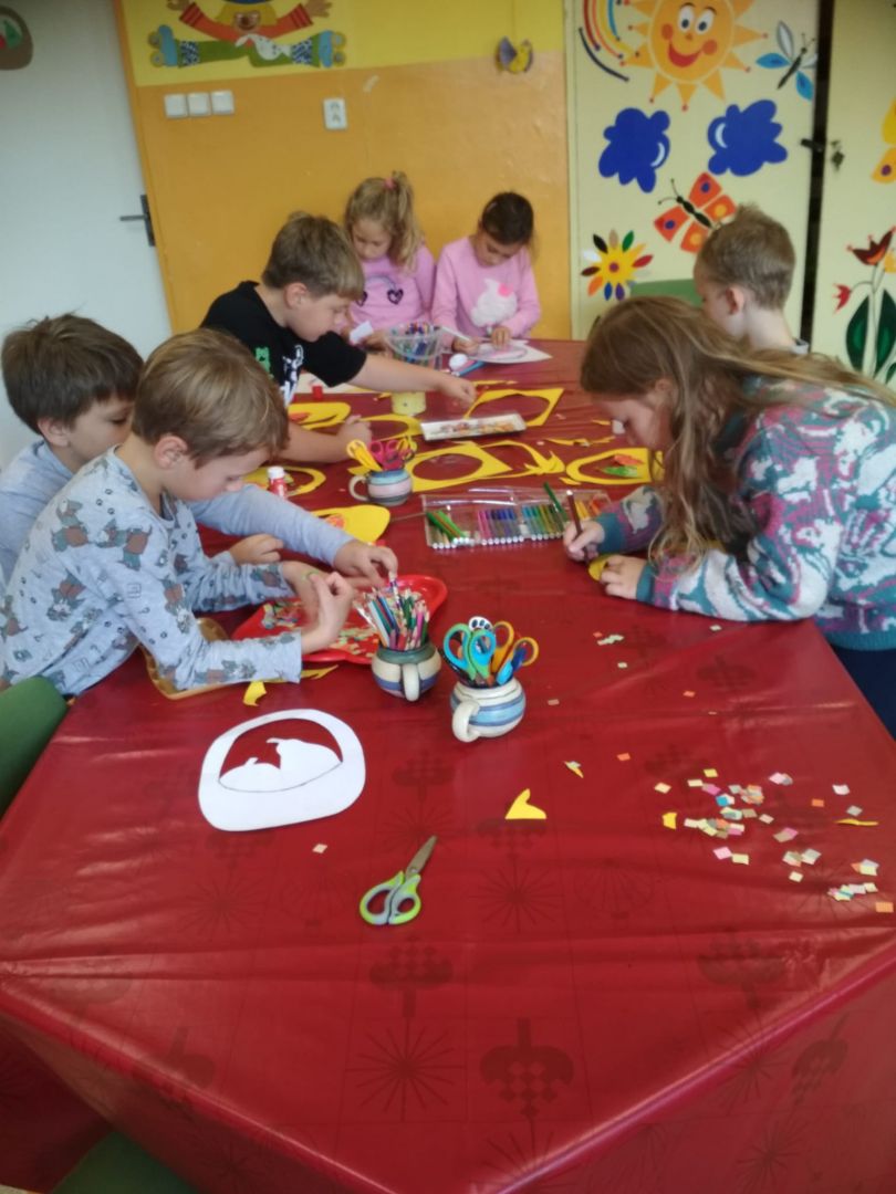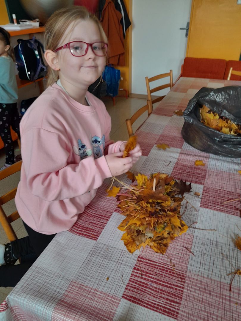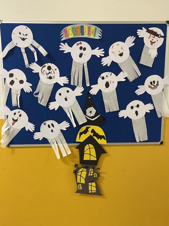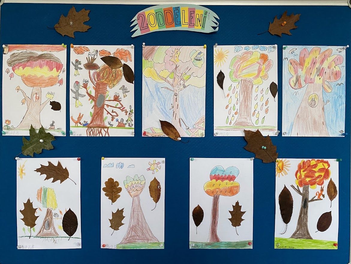 Říjen v odděleních školních družin probíhal v podzimním duchu. Když nám počasí dovolilo, děti venku prožívaly radostné listohraní a sbíraly přírodniny. Za deštivého počasí se zabývaly podzimní výrobou (ovoce, ježečci, dráčci, podzimní stromy,skřítci) a také tvorbou s halloweenskou tématikou. Oslavili jsme mezinárodní den stromů formou "poznávací stezky stromů!, kde děti plnily kvíz a kreslily.