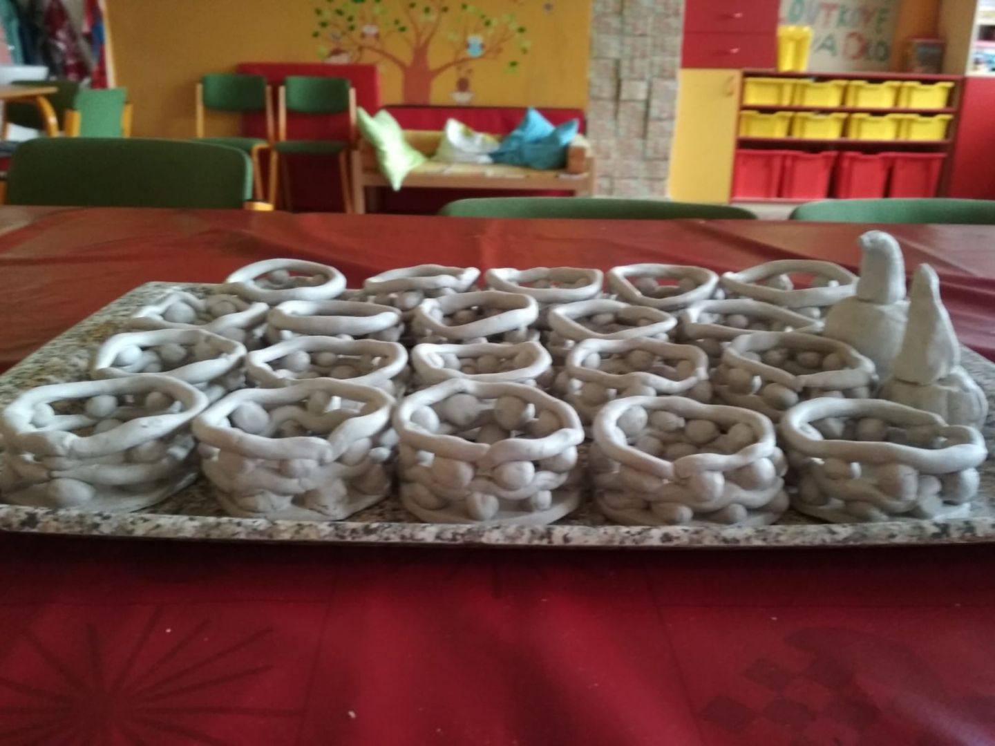 Nechyběla ani práce s hlínou. Pod vedením paní vychovatelky Šindlerové, některé děti projevily talent a vytvořily celou řadu pěkných misek a ozdob.