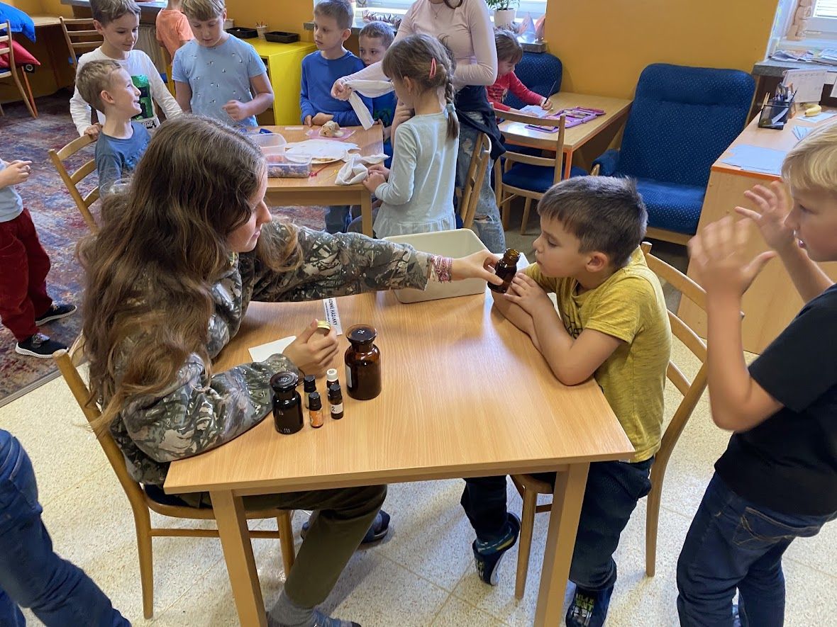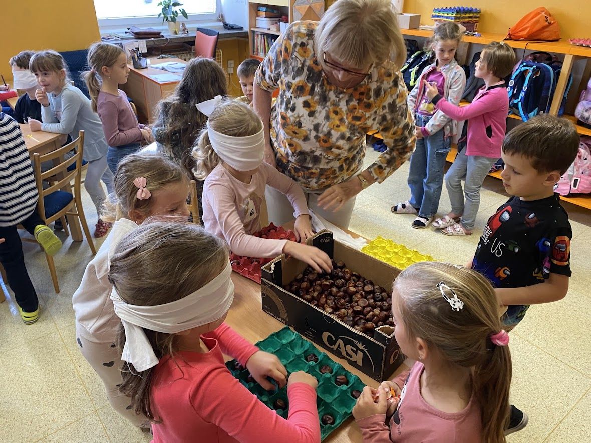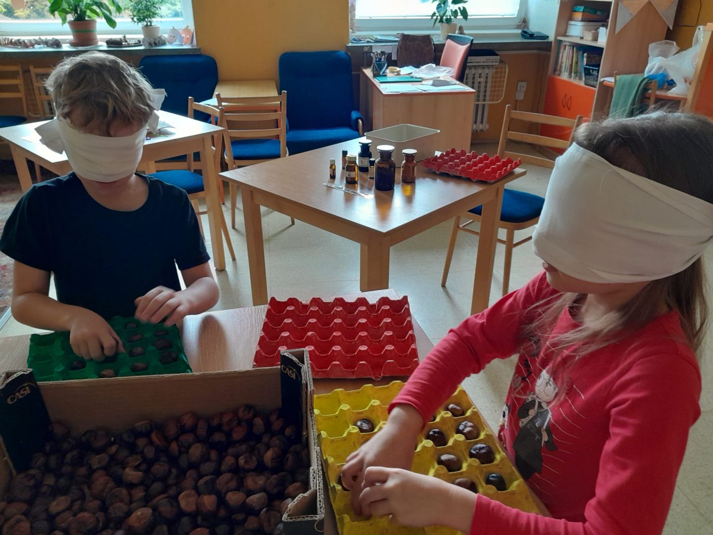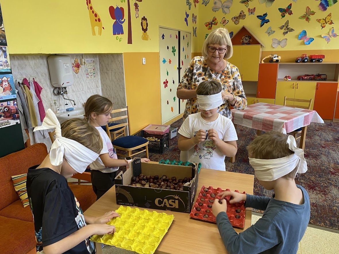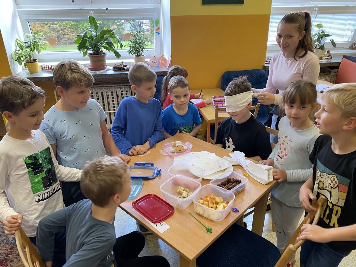 Děti se s nadšením pustily do řady aktivit, kde musely spoléhat pouze na své ostatní smysly - hmat, čich, sluch a chuť.