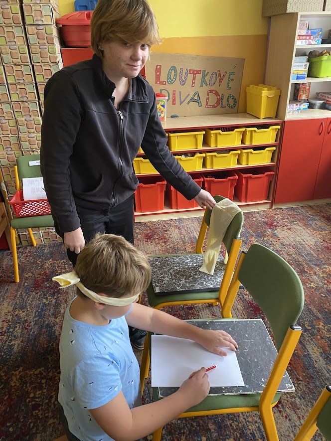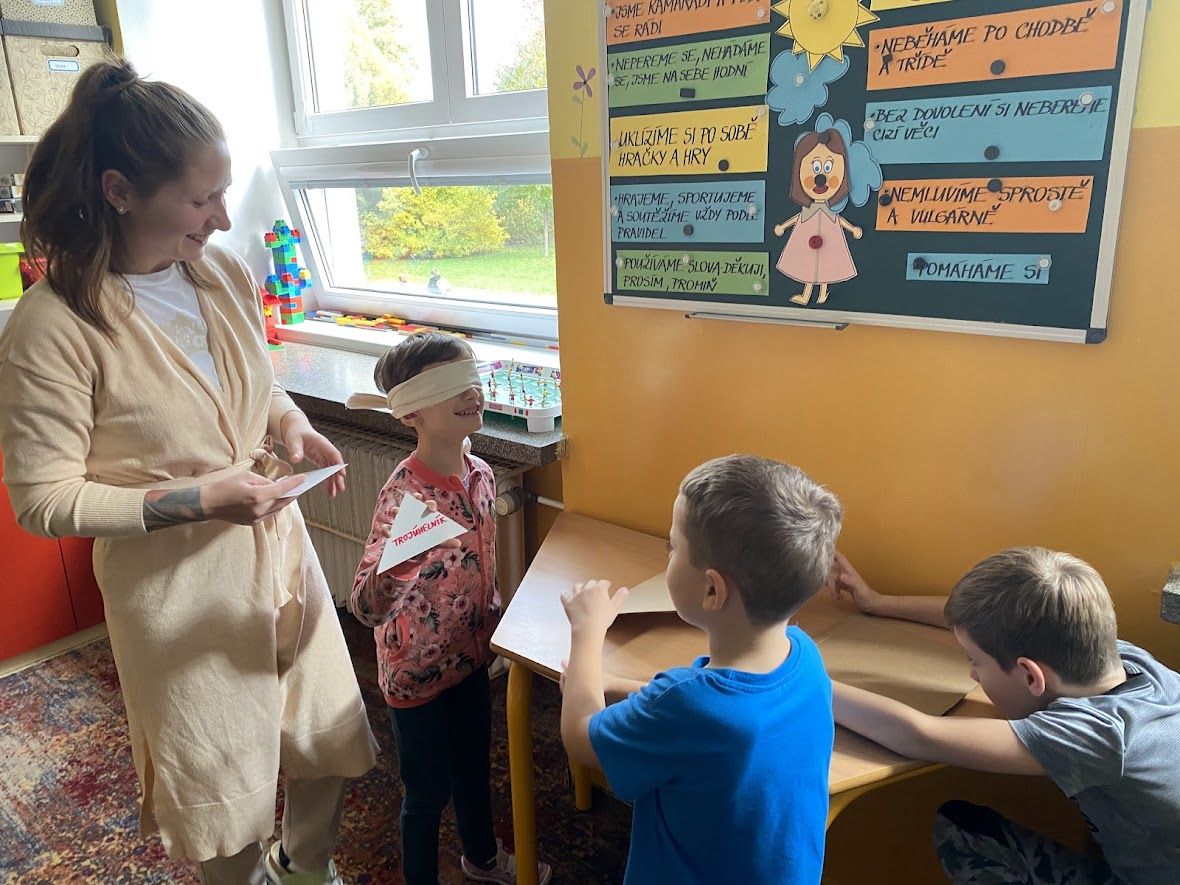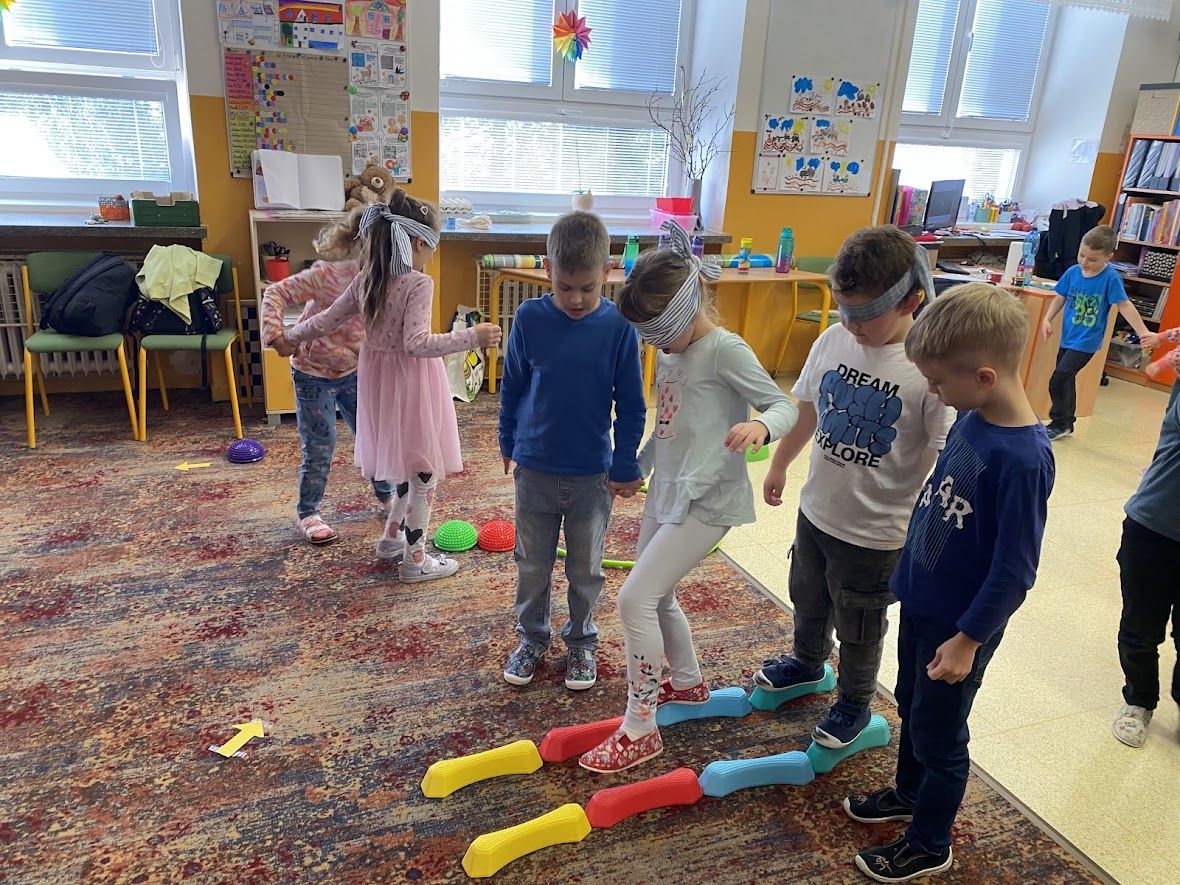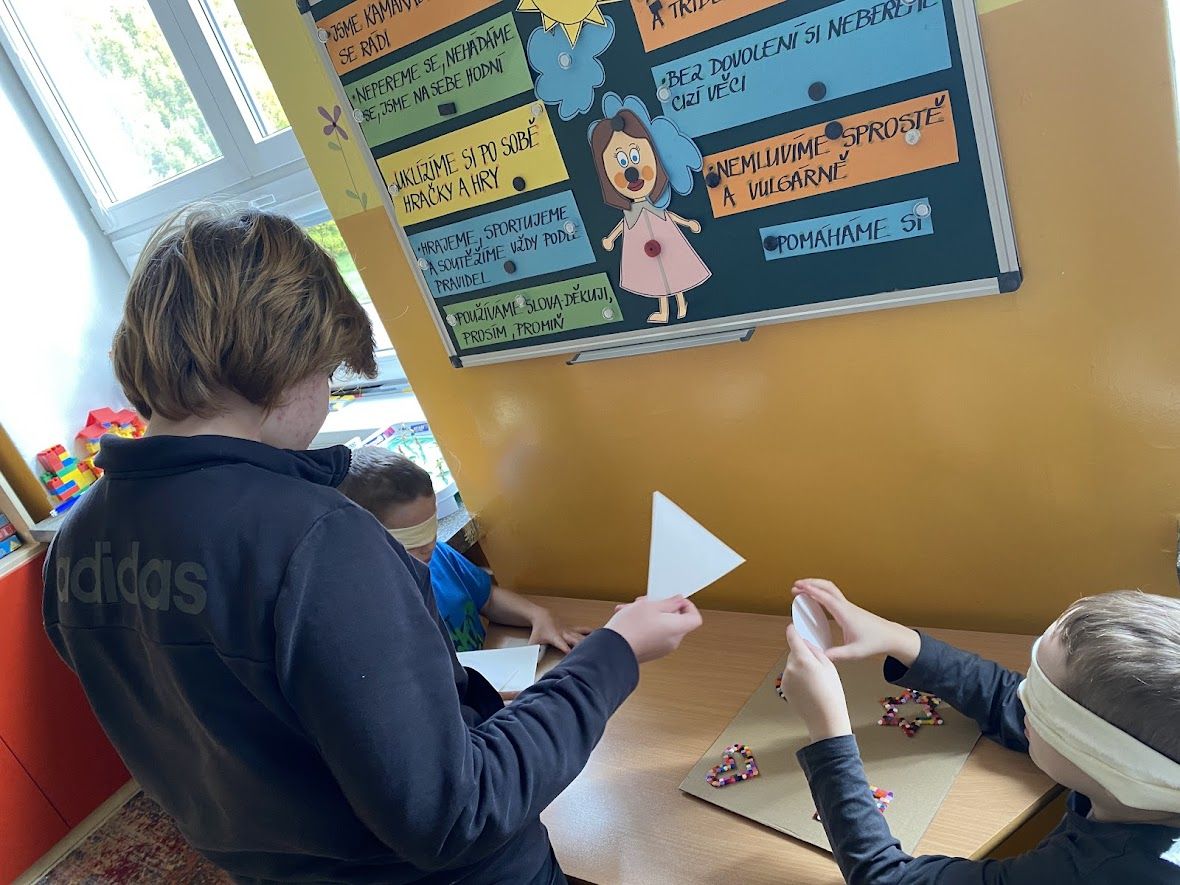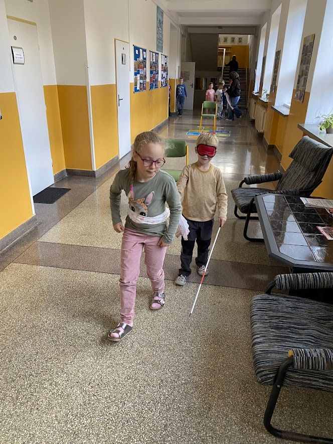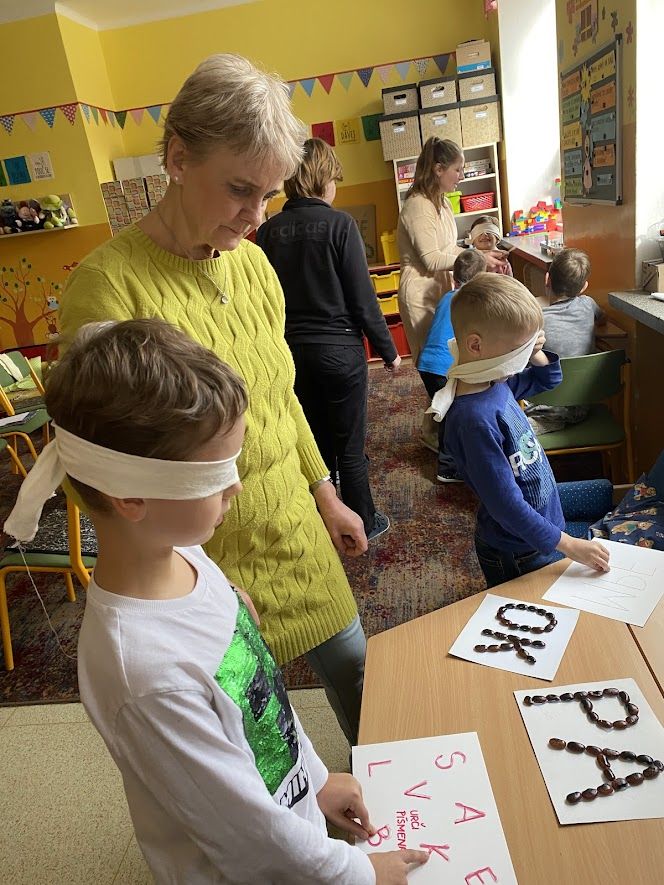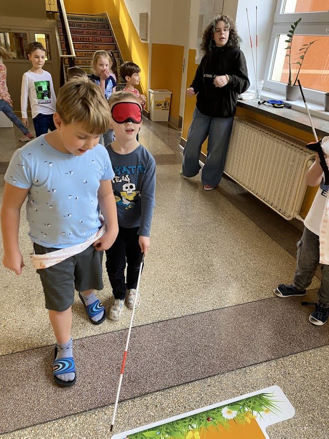 Poznávaly předměty, potraviny a vůně se zavázanýma očima, četly a kreslily poslepu, procvičovaly vzájemnou důvěru ve dvojicích a nacvičovaly pohyb s bílou holí a "vodícím psem".