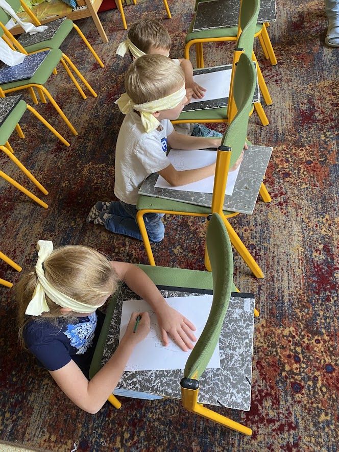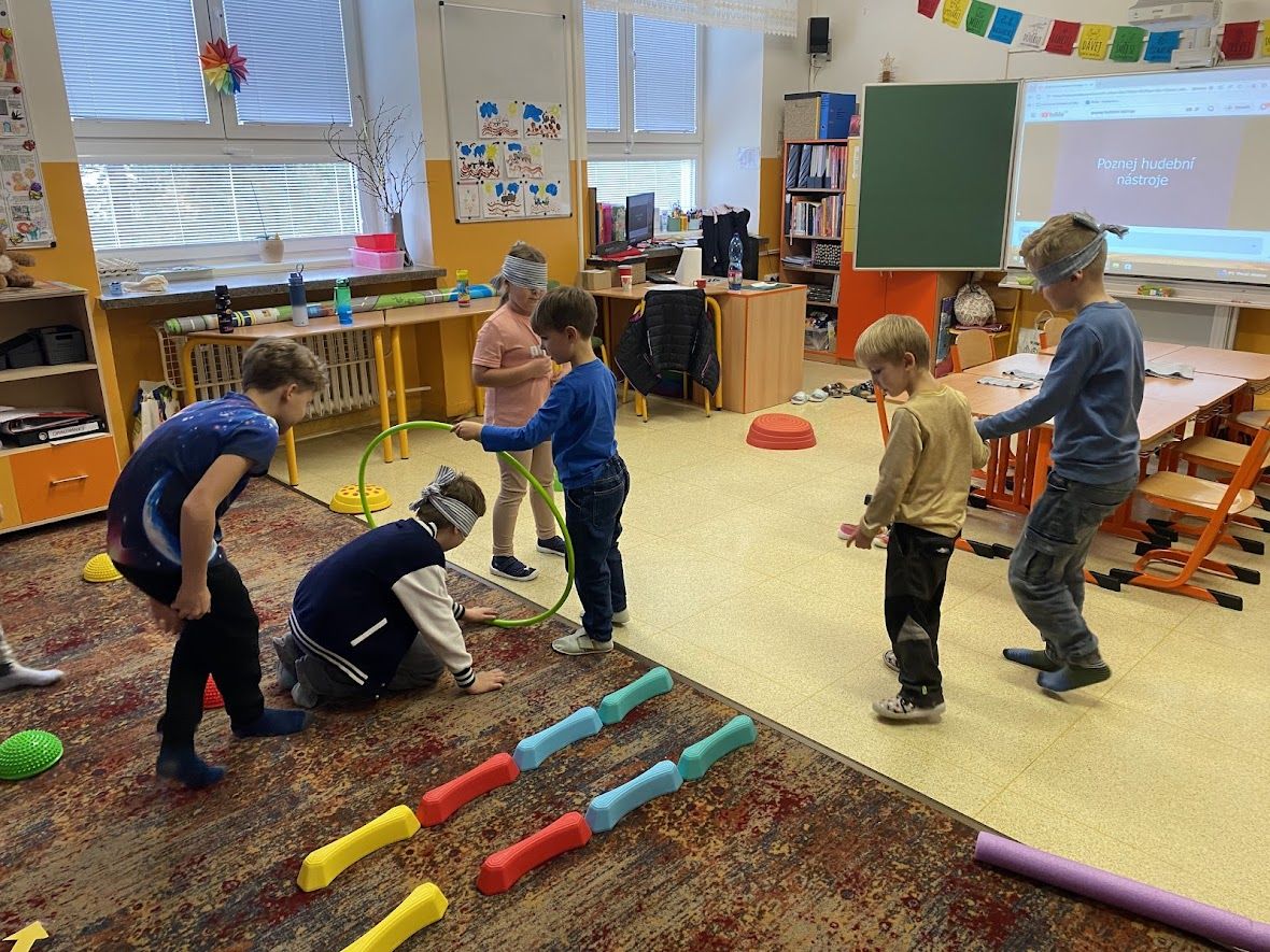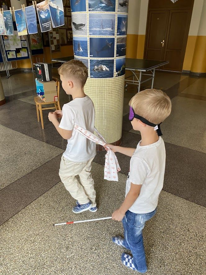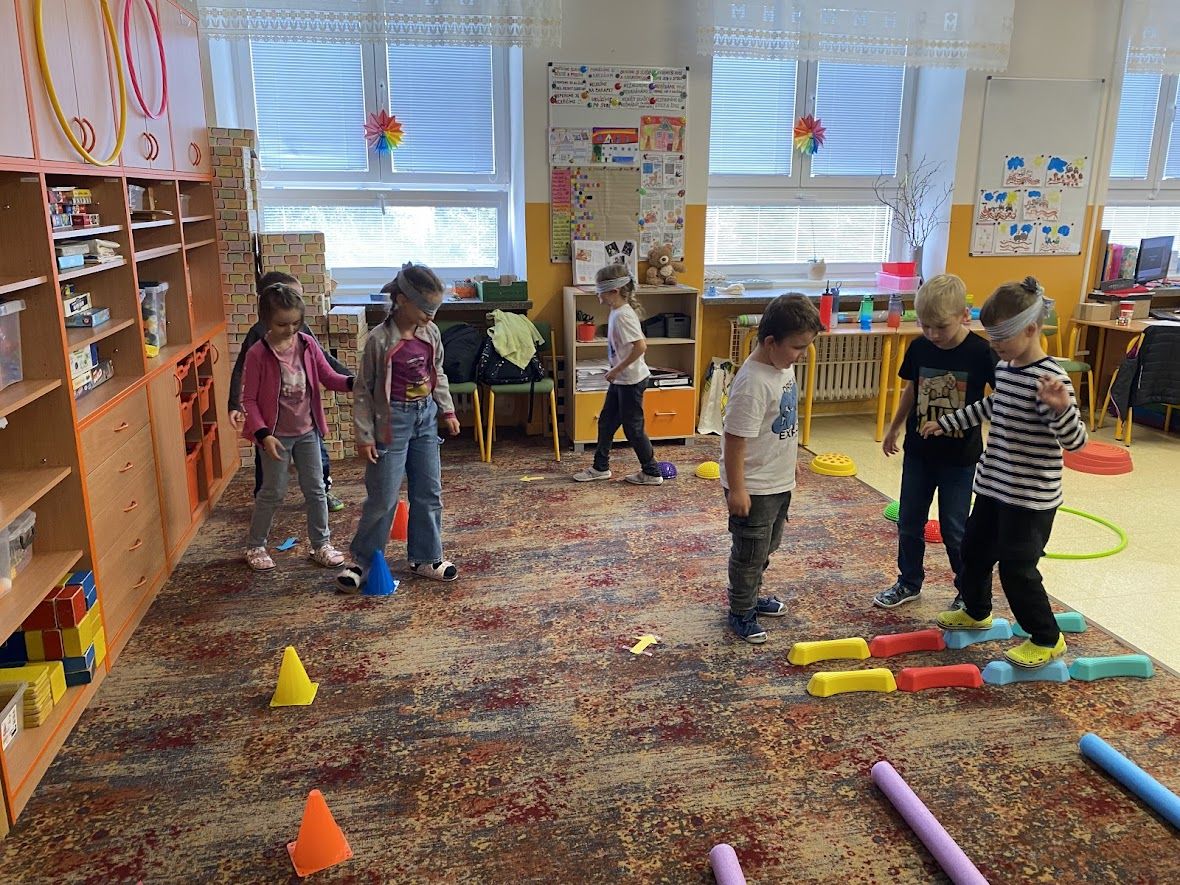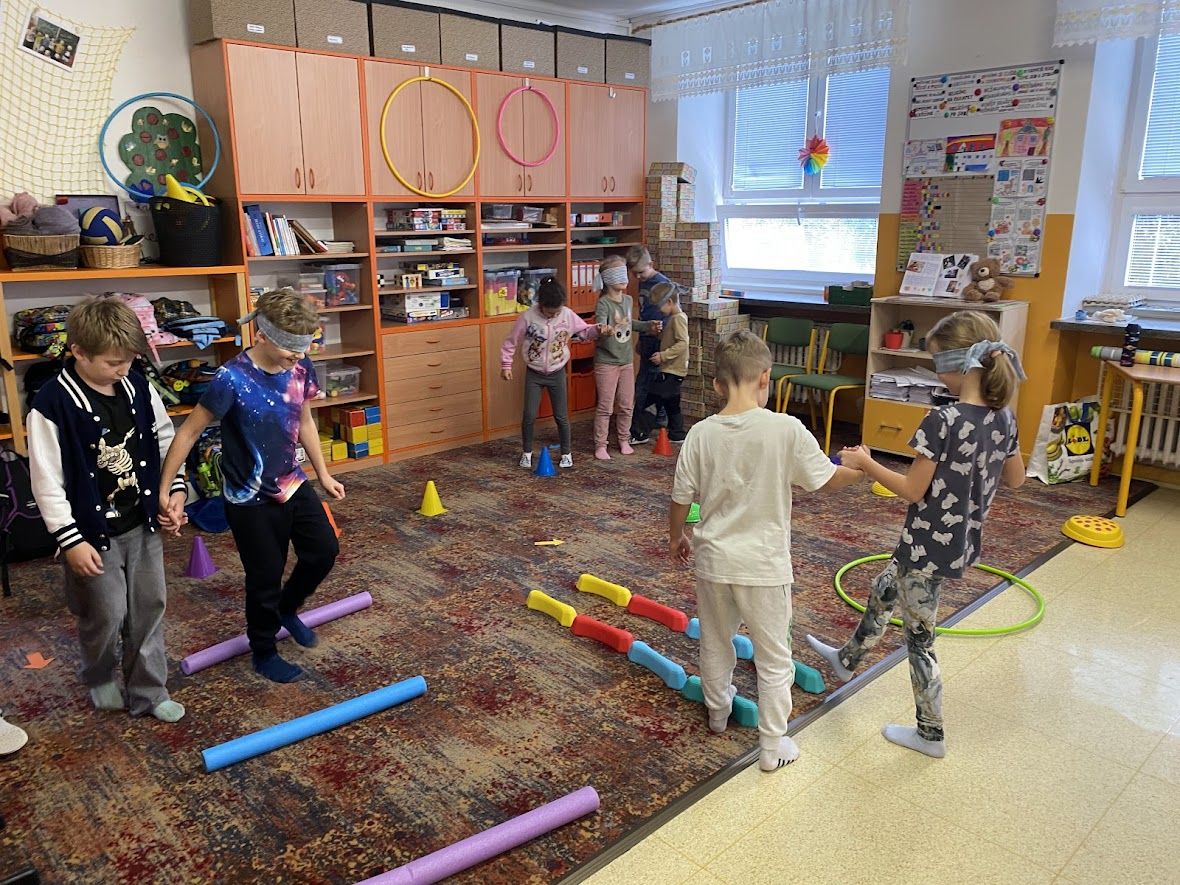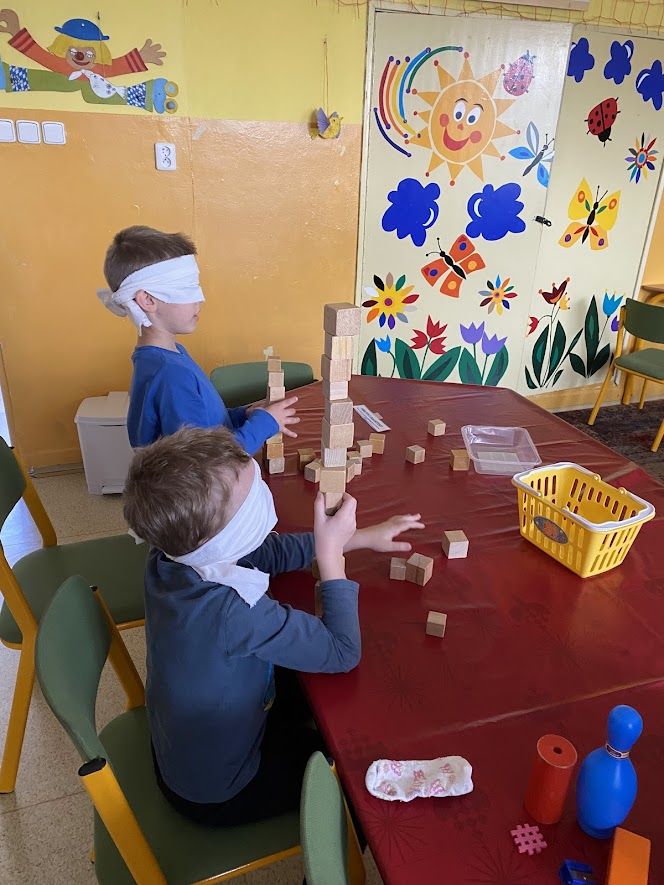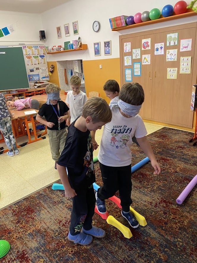 Poznávaly předměty, potraviny a vůně se zavázanýma očima, četly a kreslily poslepu, procvičovaly vzájemnou důvěru ve dvojicích a nacvičovaly pohyb s bílou holí a "vodícím psem".