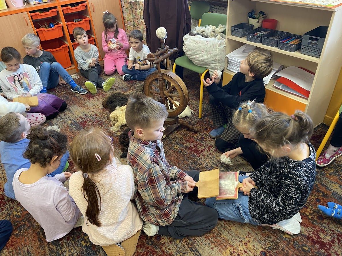 Ukázala nám jak probíhá předení vlny, při kterém jsme si společně zazpívali písničky o ovečkách.