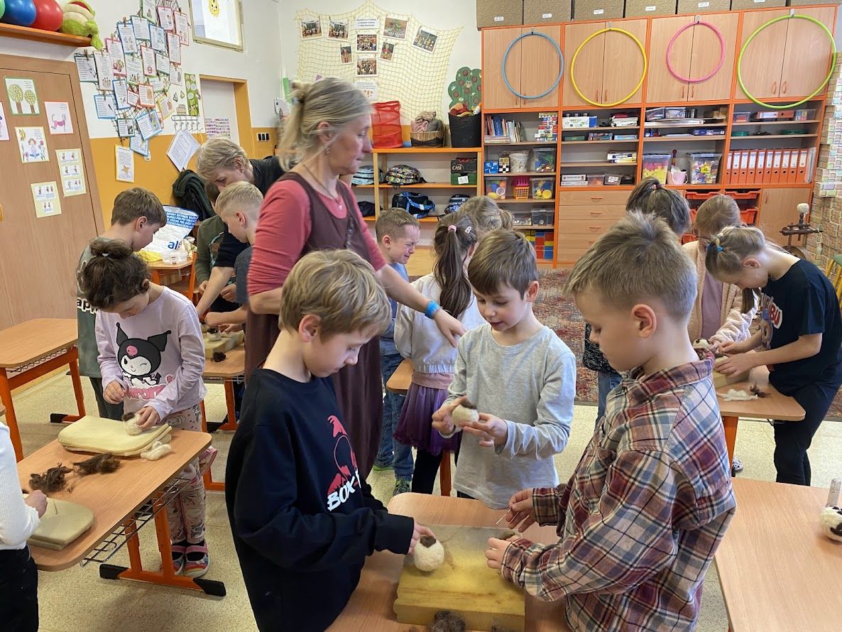 Naše oddělení školních družin navštívila milá paní Simona Bukáčková, která děti zasvětila do tajů zpracování ovčí vlny.