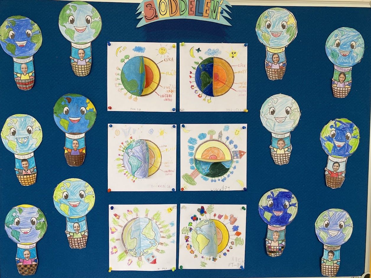 Děkujeme dětem za jejich nadšení a aktivní zapojení a také rodičům za spolupráci při barevném sladění v barvách naší planety (modré a zelené).