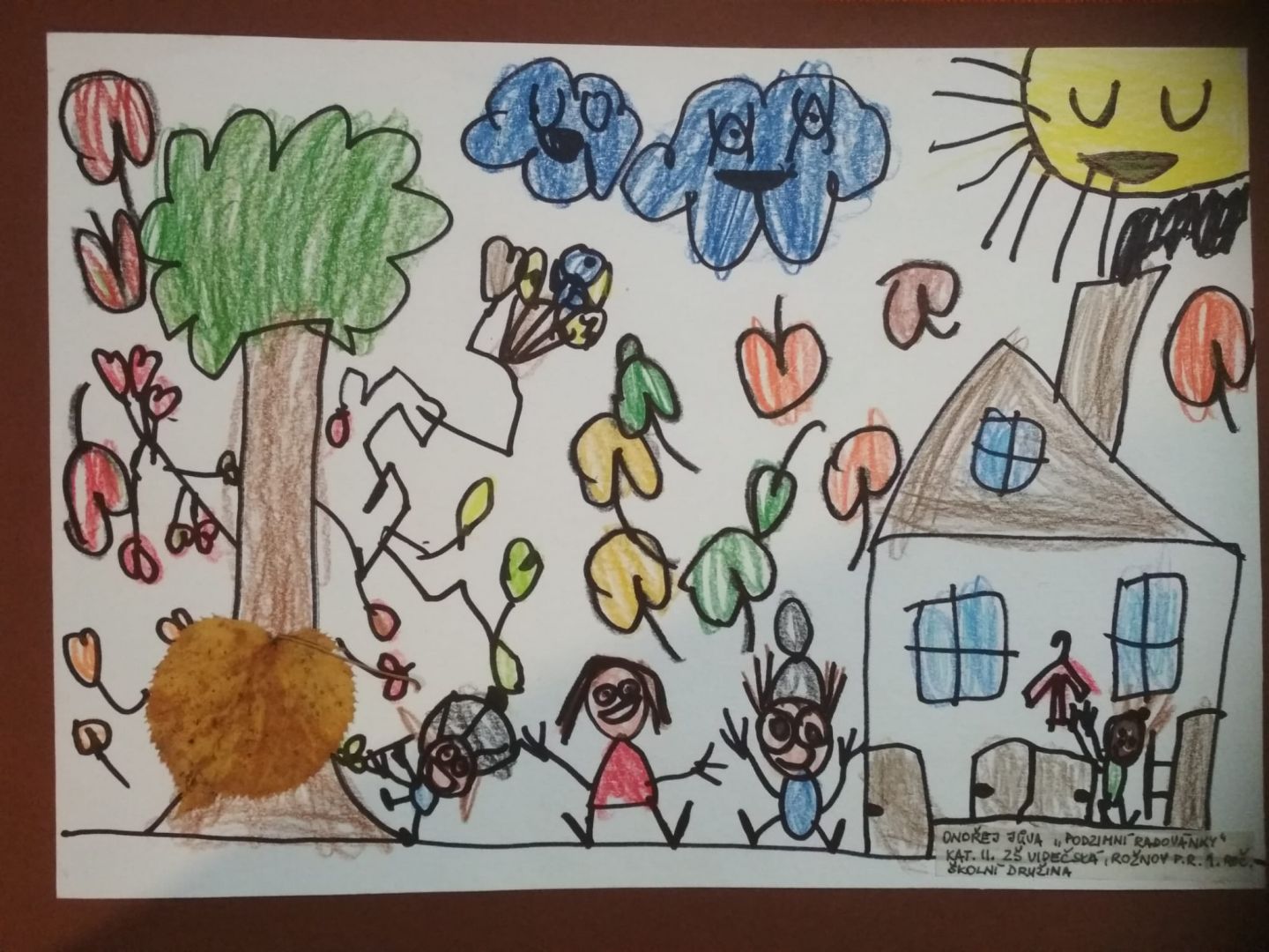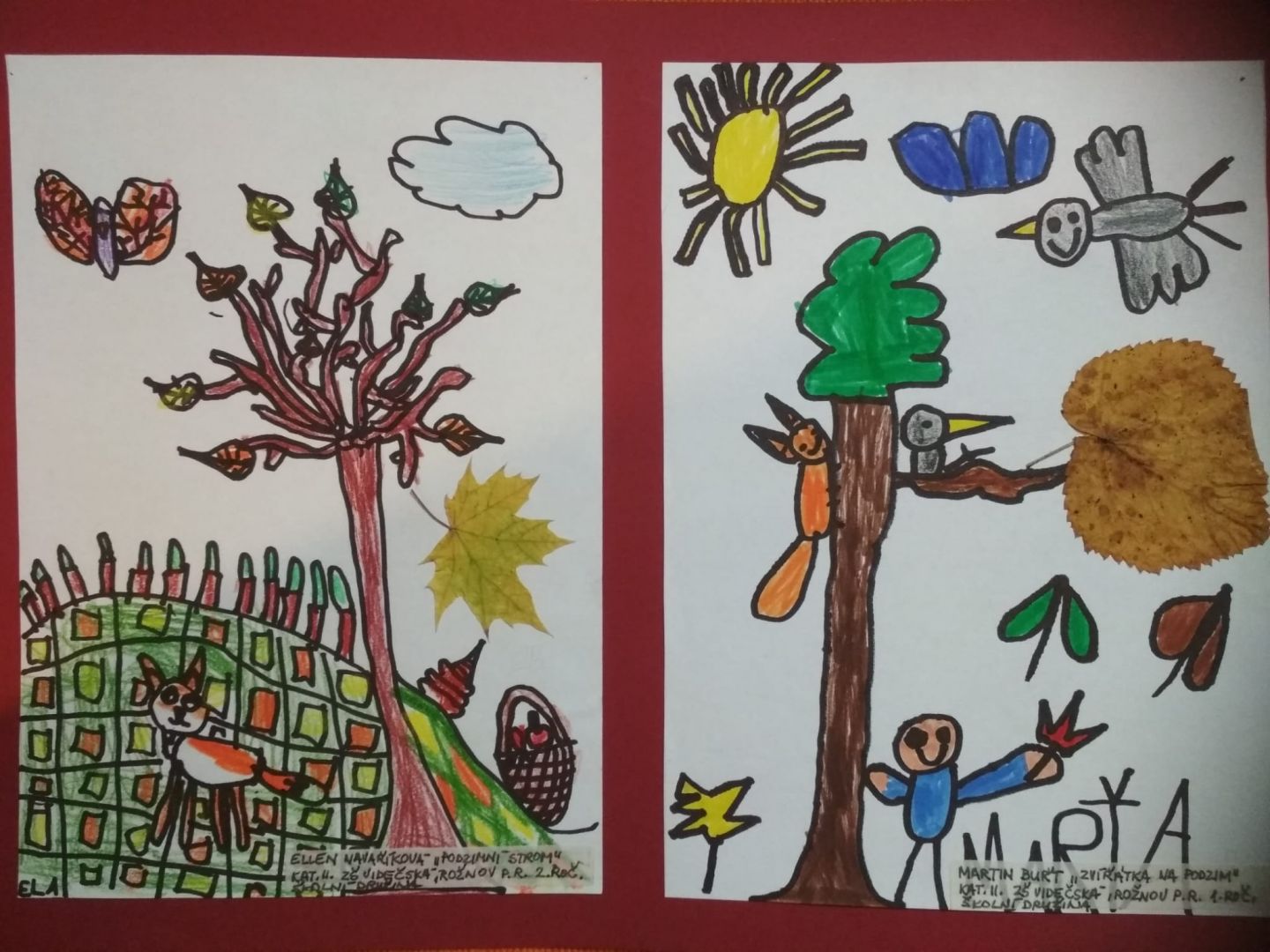 Žáci II. oddělení ŠD pod vedením p. vychovatelky Jany Šindlerové se zapojili do výtvarné soutěže na téma "podzim", pořádané SVČ Rožnov p. R. Mezi oceněnými byla Nela Janíčková 2.B viz hlavní foto. Také výtvory ostatních zúčastněných rozhodně stojí za povšimnutí
