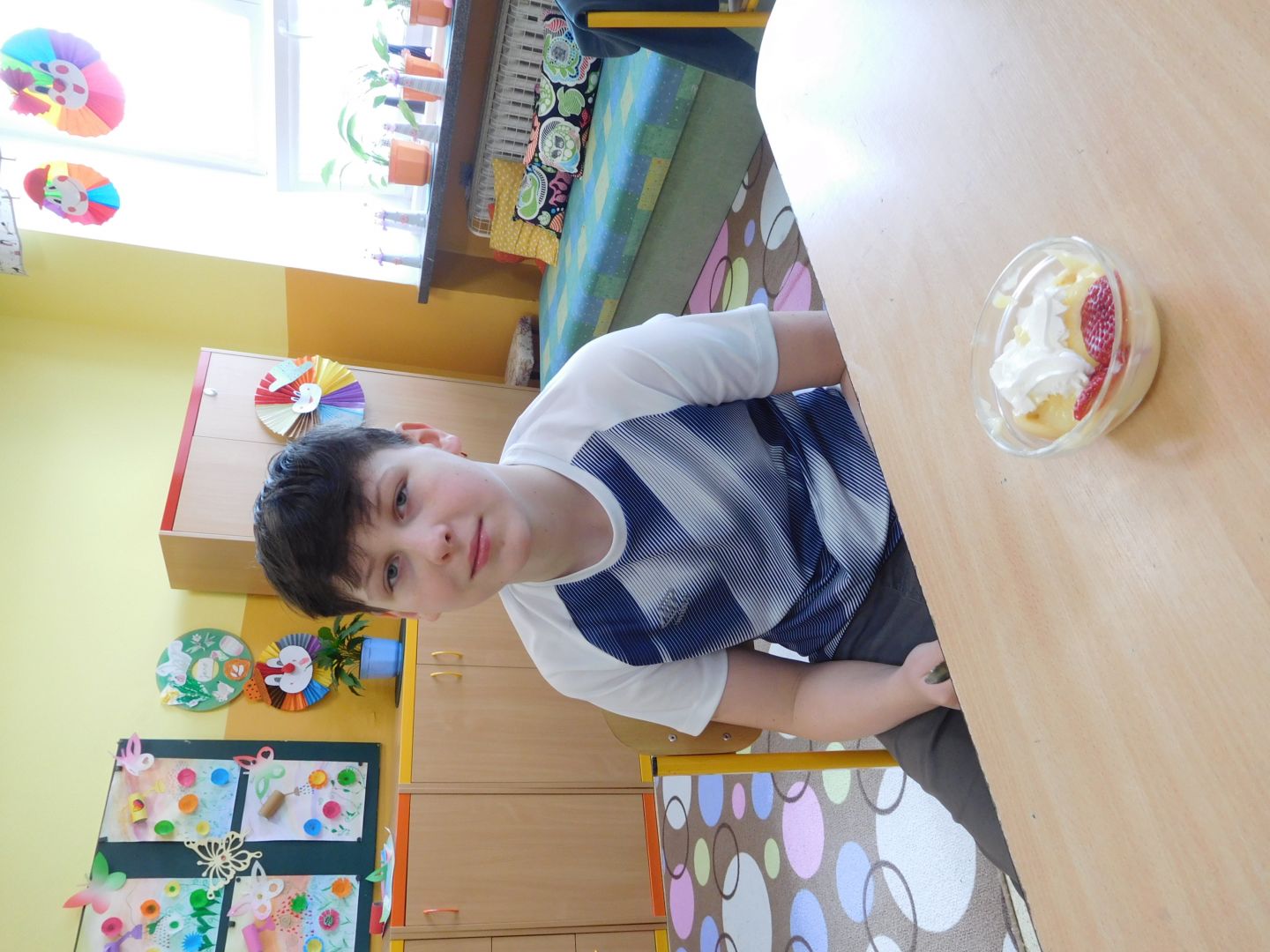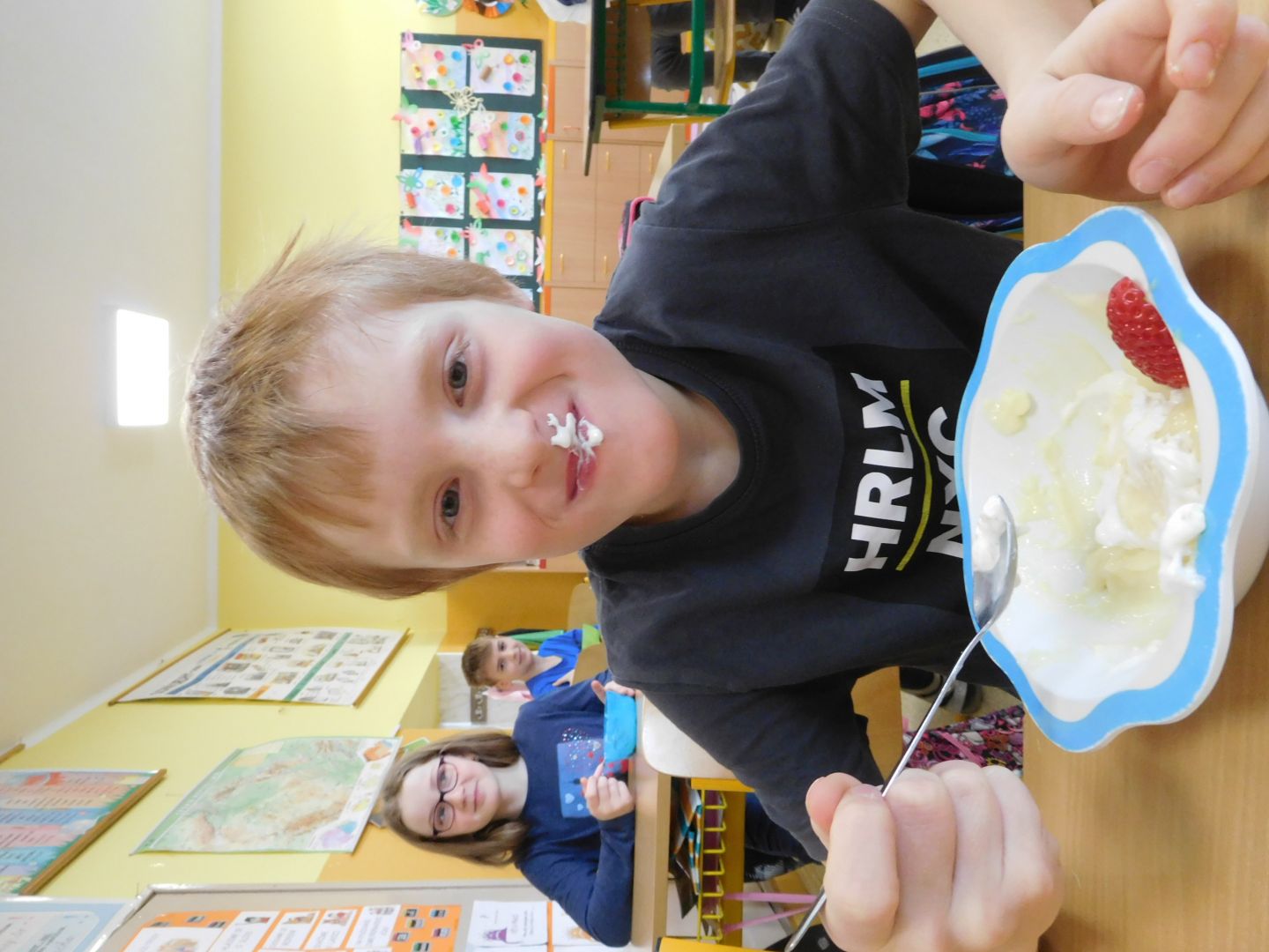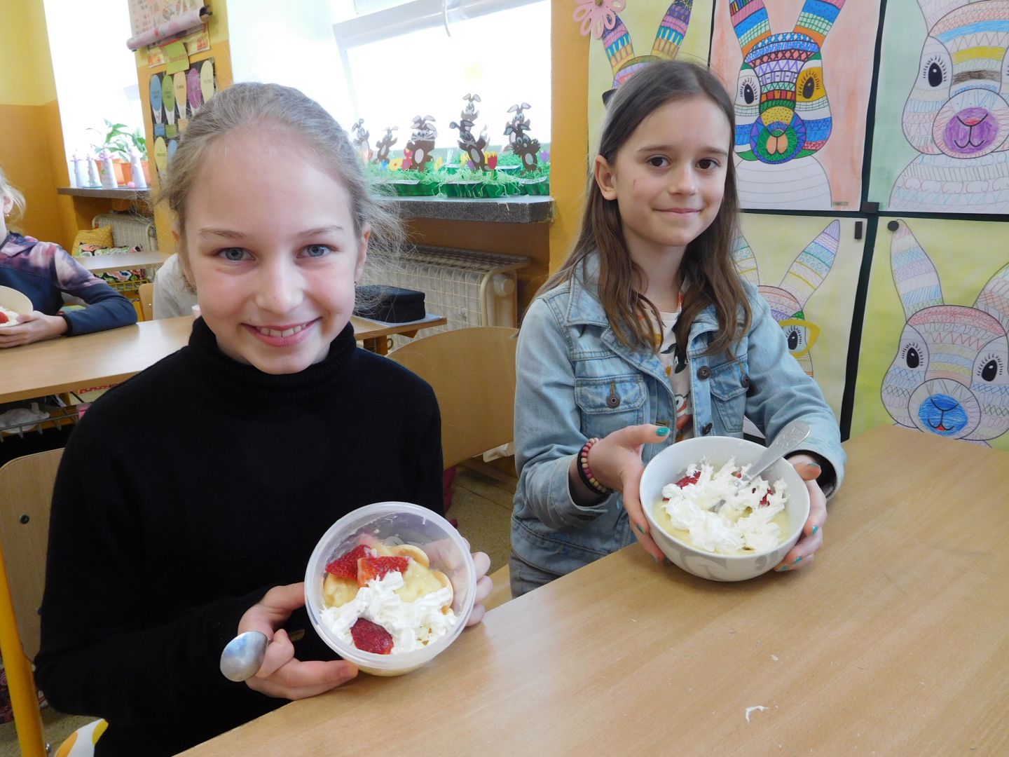 Děti ze třídy 4. A v rámci přírodovědy, kde probíraly učivo - Ekosystém pole - , narazily na otázku : Z čeho se vyrábí puding ? Vyřešit tento úkol nebylo nijak obtížné. Pak už jen stačilo v hodině českého jazyka dát dohromady postup práce a následně sladký pokrm připravit. Všechny děti měly plné ruce práce - uvařit puding, přichystat misky, vložit piškoty a čerstvé jahody, puding naservírovat a po vychlazení ozdobit šlehačkou. Sladká svačinka byla na světě a dětem moc chutnala.