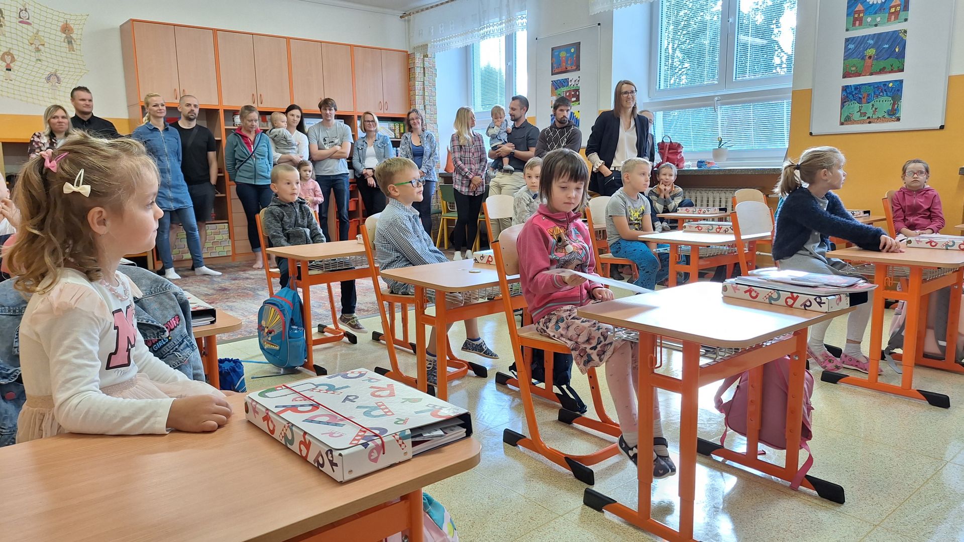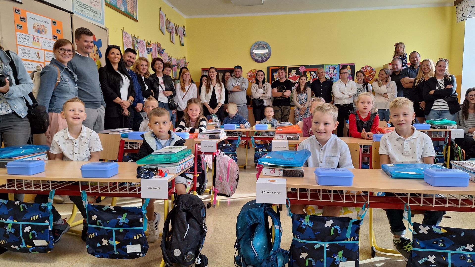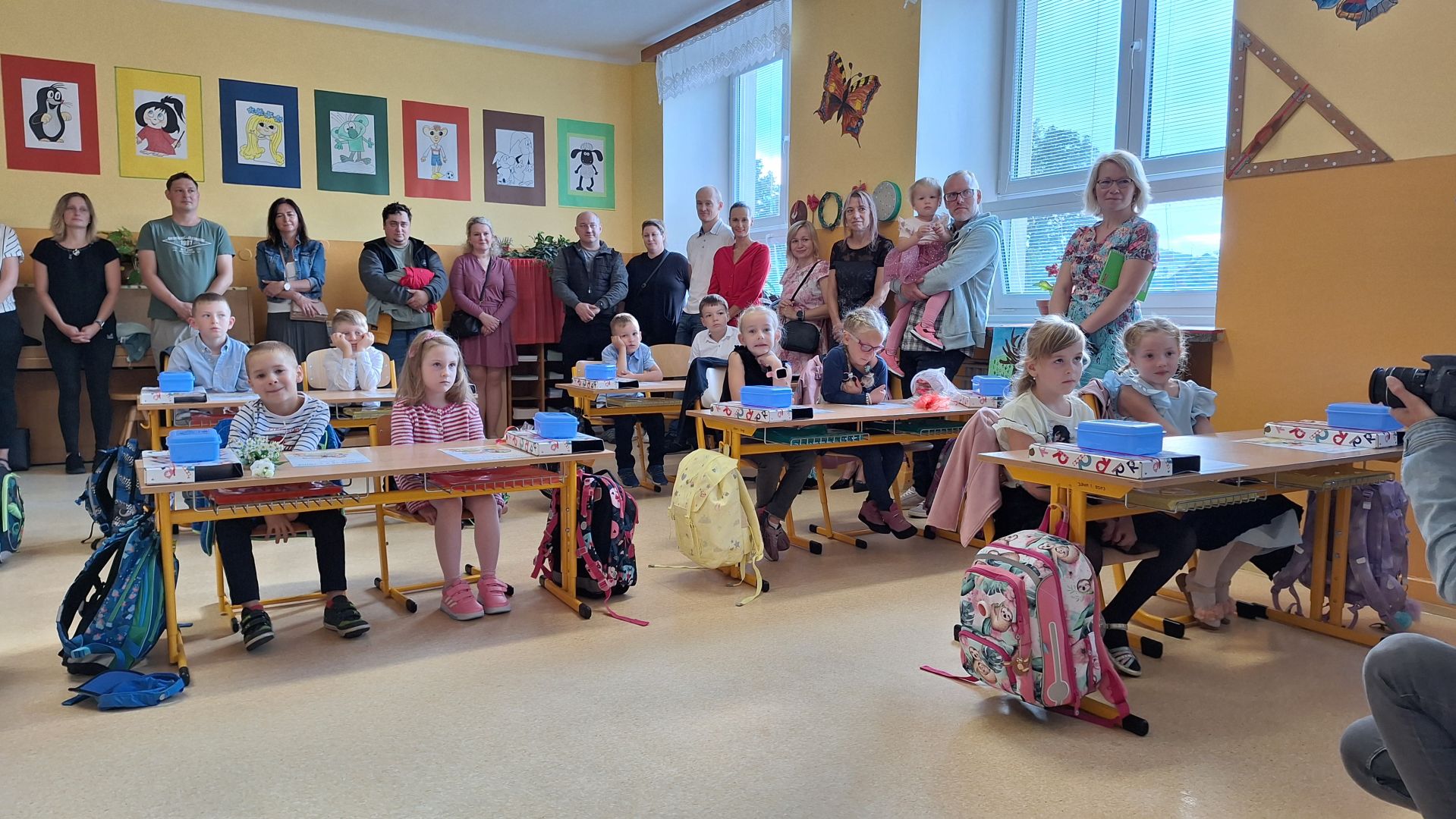 Po prodloužených prázdninách nám opět začal školní rok, ve kterém jsme letos přivítali dvě třídy prvňáčků a taky předškoláky v nově otevřené přípravné třídě. Dětem to ve slavnostních šatech a s novými aktovkami moc slušelo. Paní učitelky je v doprovodu rodičů uvítaly ve vyzdobených třídách, kde si každý našel své místo s dárečkem na lavici. K dobrému startu jim popřál pan starosta, paní ředitelka a další zaměstnanci školy.