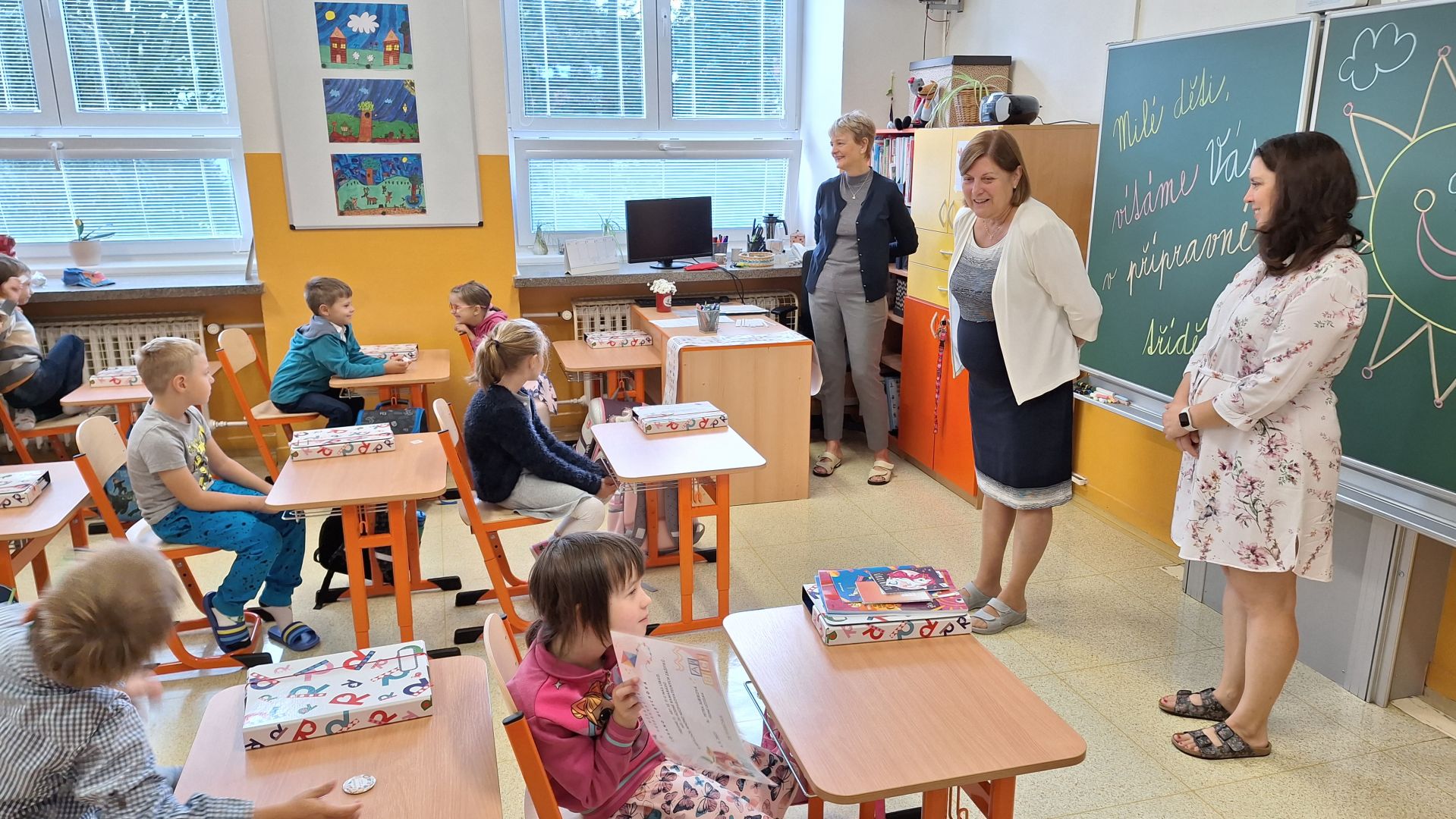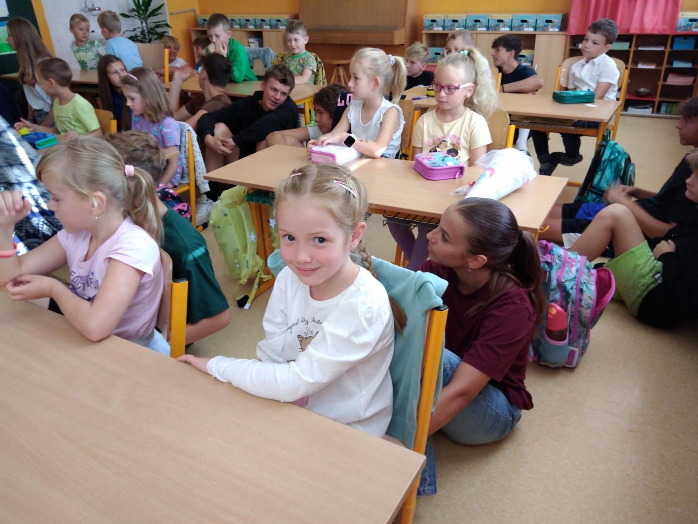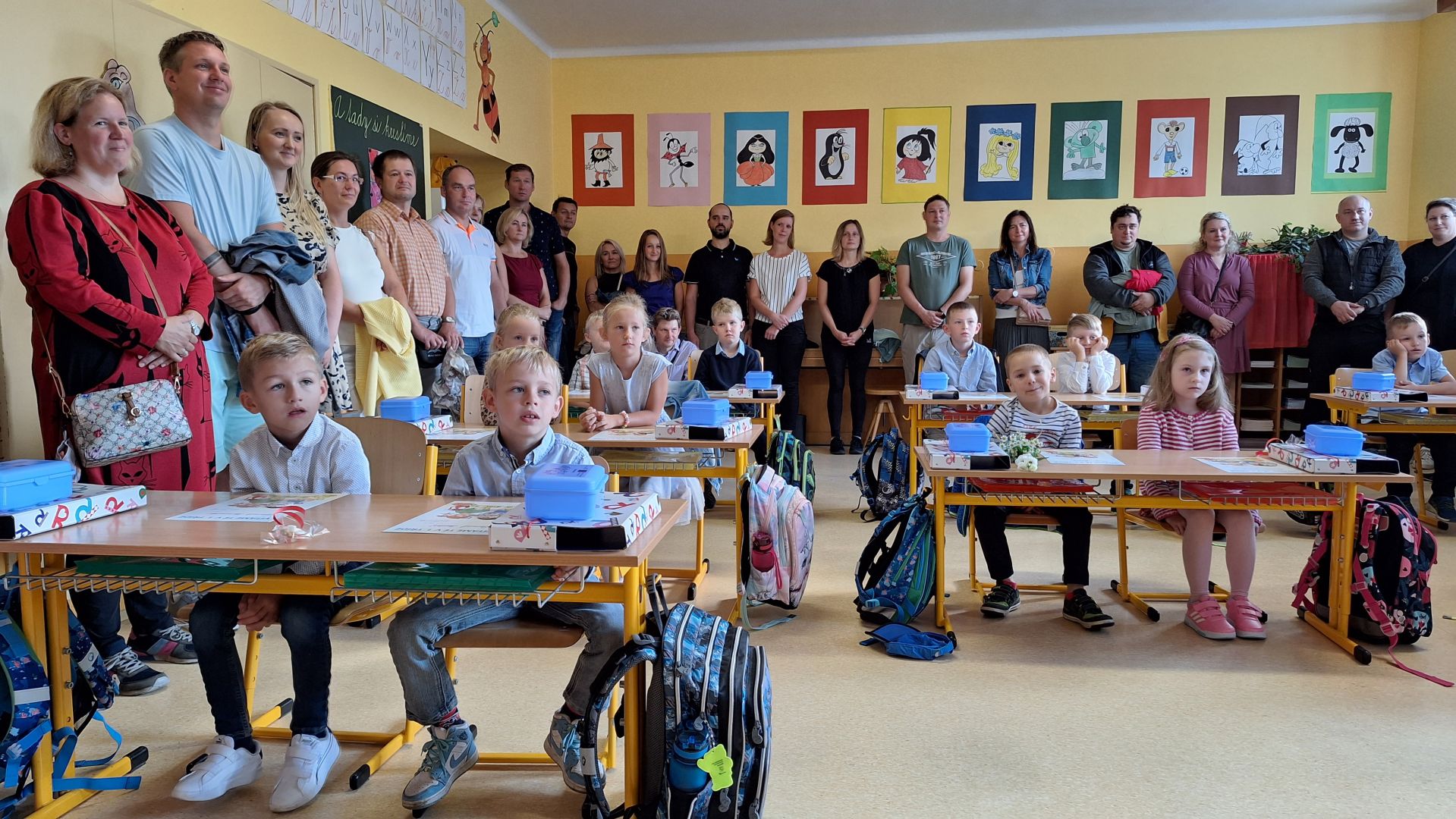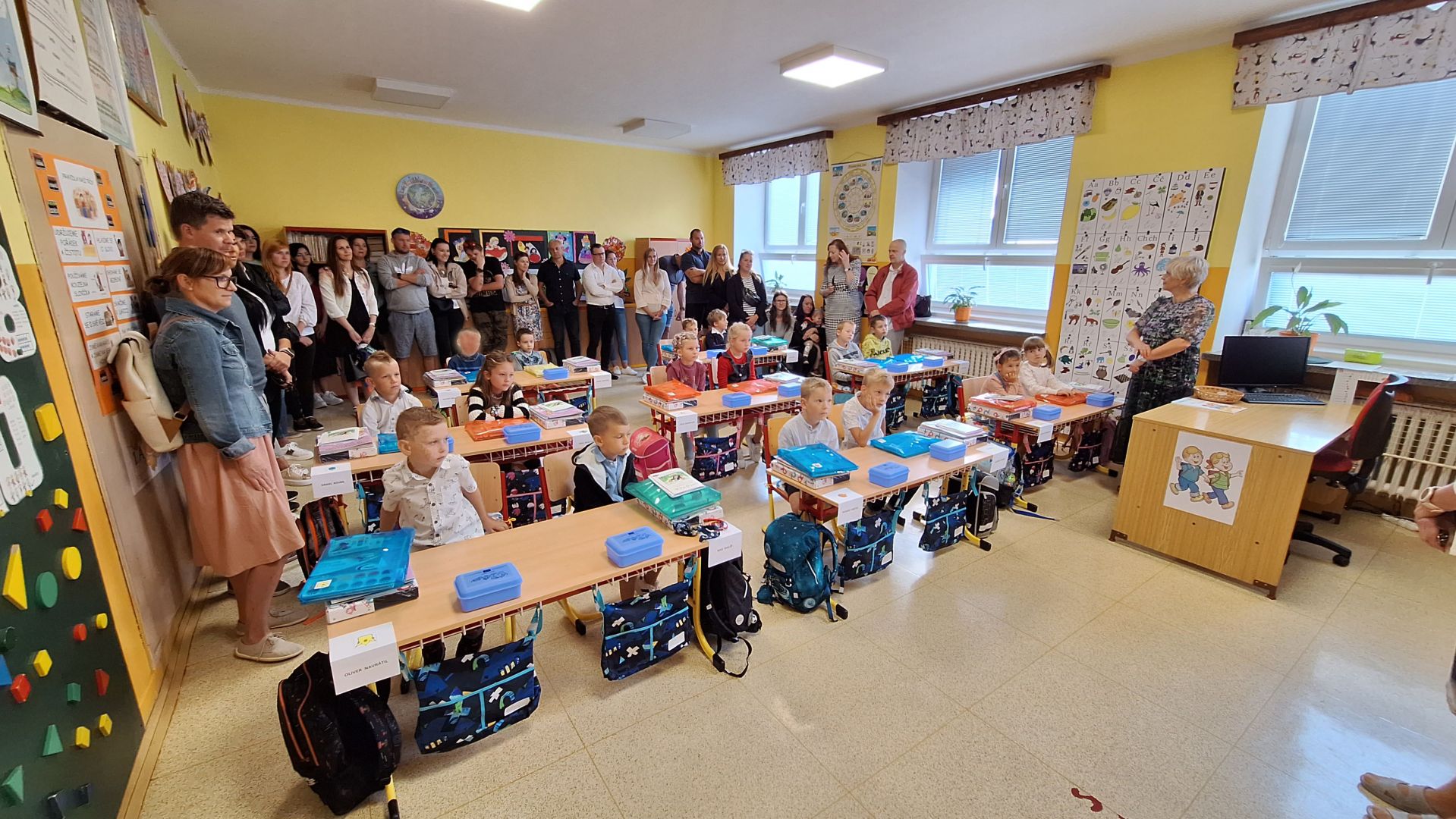 Po prodloužených prázdninách nám opět začal školní rok, ve kterém jsme letos přivítali dvě třídy prvňáčků a taky předškoláky v nově otevřené přípravné třídě. Dětem to ve slavnostních šatech a s novými aktovkami moc slušelo. Paní učitelky je v doprovodu rodičů uvítaly ve vyzdobených třídách, kde si každý našel své místo s dárečkem na lavici. K dobrému startu jim popřál pan starosta, paní ředitelka a další zaměstnanci školy.
