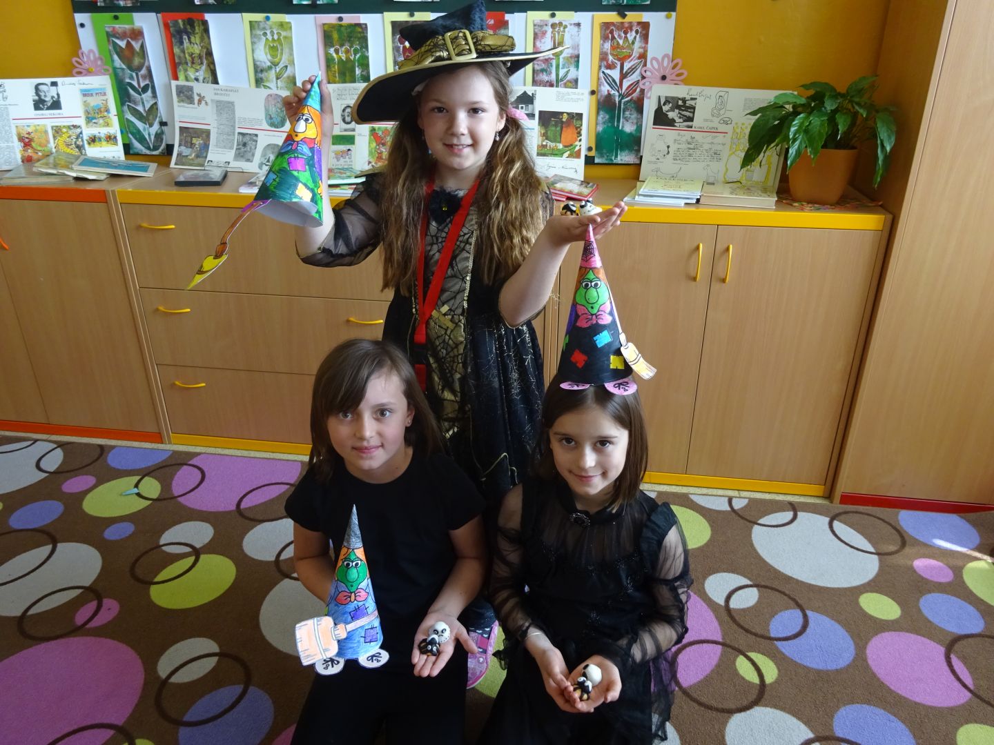 Tento den si připomněly i děti ze třídy 3.A. V pátek 29. dubna přišly děti do školy převlečeny za čarodějnice. Po módní přehlídce si přečetly pohádku O čarodějnici Bertě a jejím koštěti, poslechly si klasickou českou pohádku O perníkové chaloupce, vyrobily si papírové čarodějnice, ,,napekly´´ si z marcipánu pavouky a duchy a na závěr si pořádně zatancovaly. Byl to super pátek.