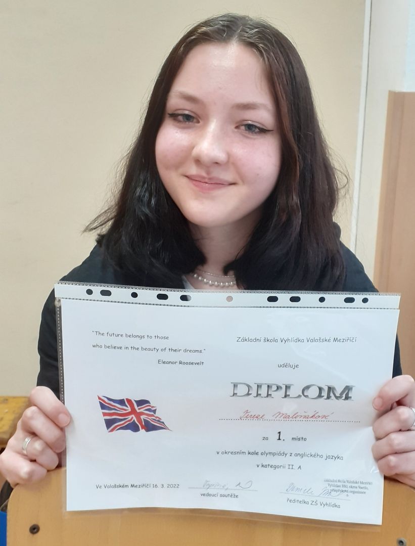 Tereza Maliňáková vítězkou Okresního kola olympiády v anglickém jazyce