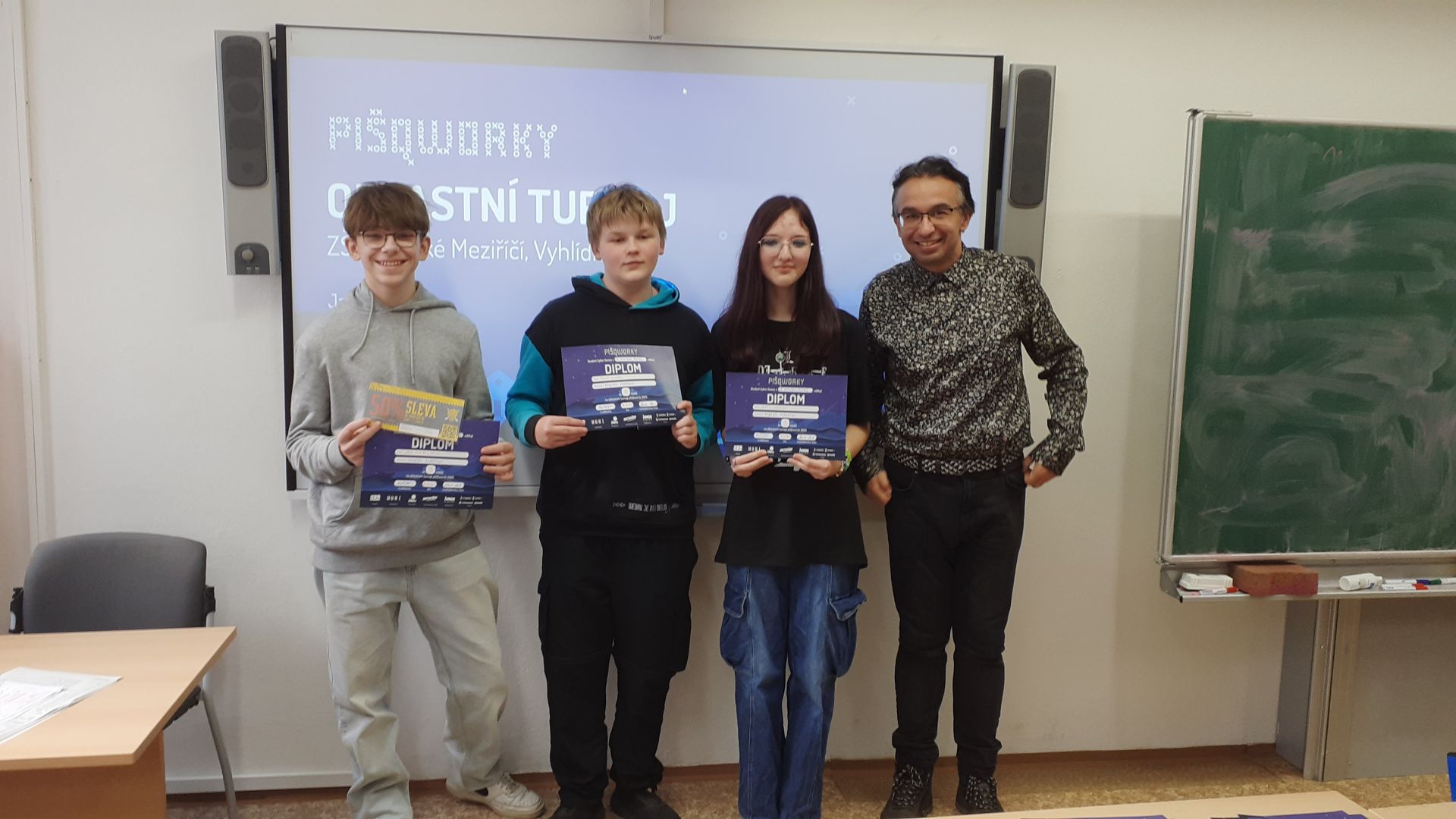 Obě tato družstva postupují do krajského kola, kde budou reprezentovat naši školu i město Rožnov pod Radhoštěm. Třetí tým, Čičinky Videčská, bojoval statečně a získal cenné zkušenosti pro další ročníky.