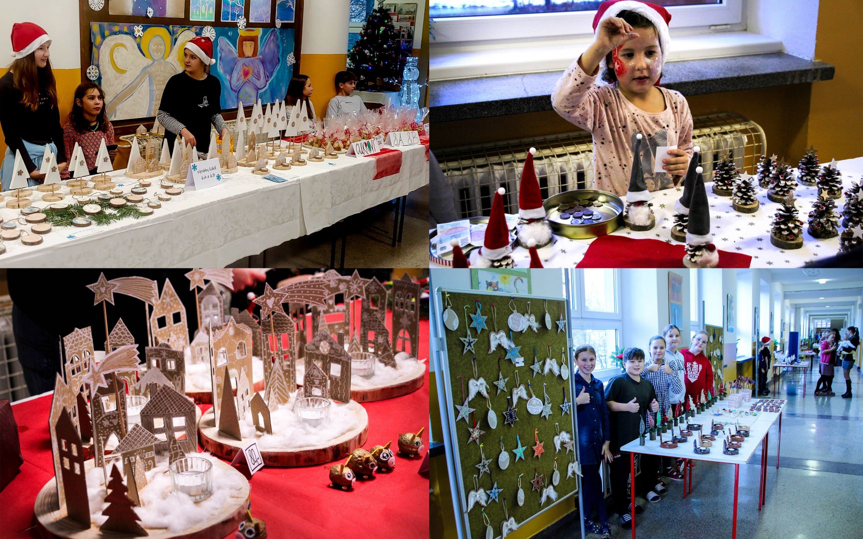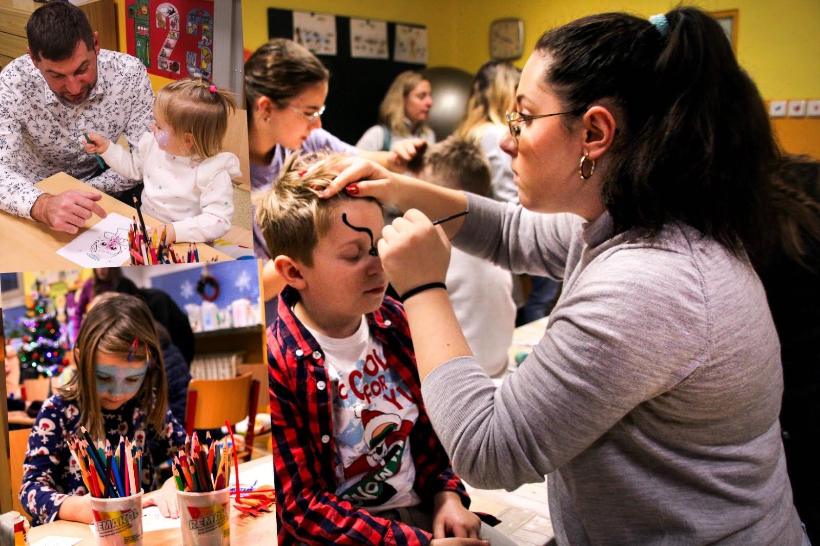 ,,Už zbývá málo, málo dní, nálada vánoční“, prozpěvoval pěvecký sbor na letošním, již druhém, Vánočním jarmarku konaném v úterý 12. prosince 2023 v naší škole. Žáci v doprovodu rodičů či prarodičů k nám přišli nasát atmosféru blížících se Vánoc. Nejenže se návštěvníci mohli zaposlouchat do příjemných dětských hlasů doprovázených mnoha hudebními nástroji, ale také si zakoupit řadu krásných a povedených vánočních dekorací vyrobených žáky všech tří družin, 1. a 2. stupně. Místem odpočinku a shledání se pak stala jídelna vybízející k posezení nad sklenicí punče a sladkého či slaného občerstvení. (Nejen) nejmenší návštěvníci jarmarku zavítali do vánoční dílničky, kde si spolu s žákyněmi devátých tříd vyrobili jednoduché dekorace a mohli odejít ozdobeni krásnými vánočními motivy na tváři. Vždyť malování na obličej mají děti velmi rády.